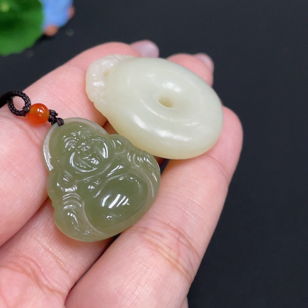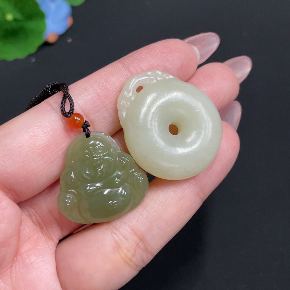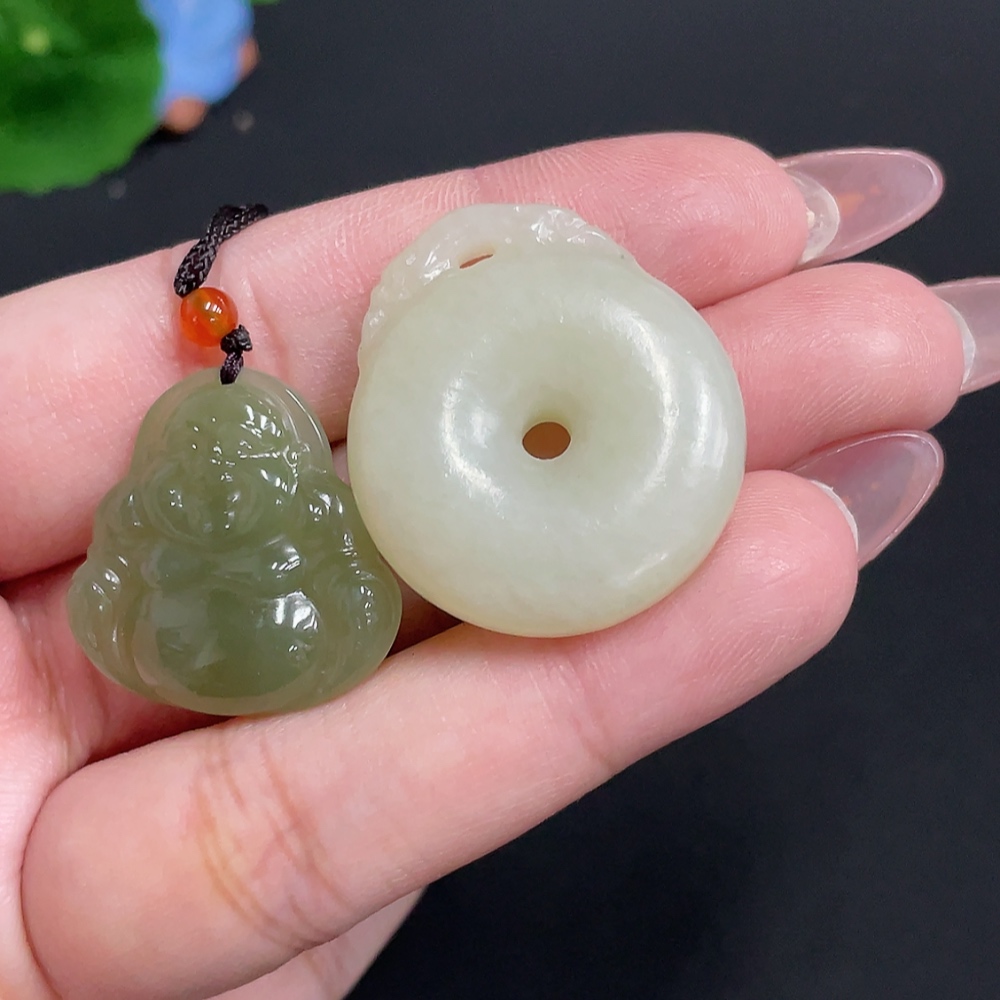 Hetian Jade Pendant, Peace Button, Buddha Figure