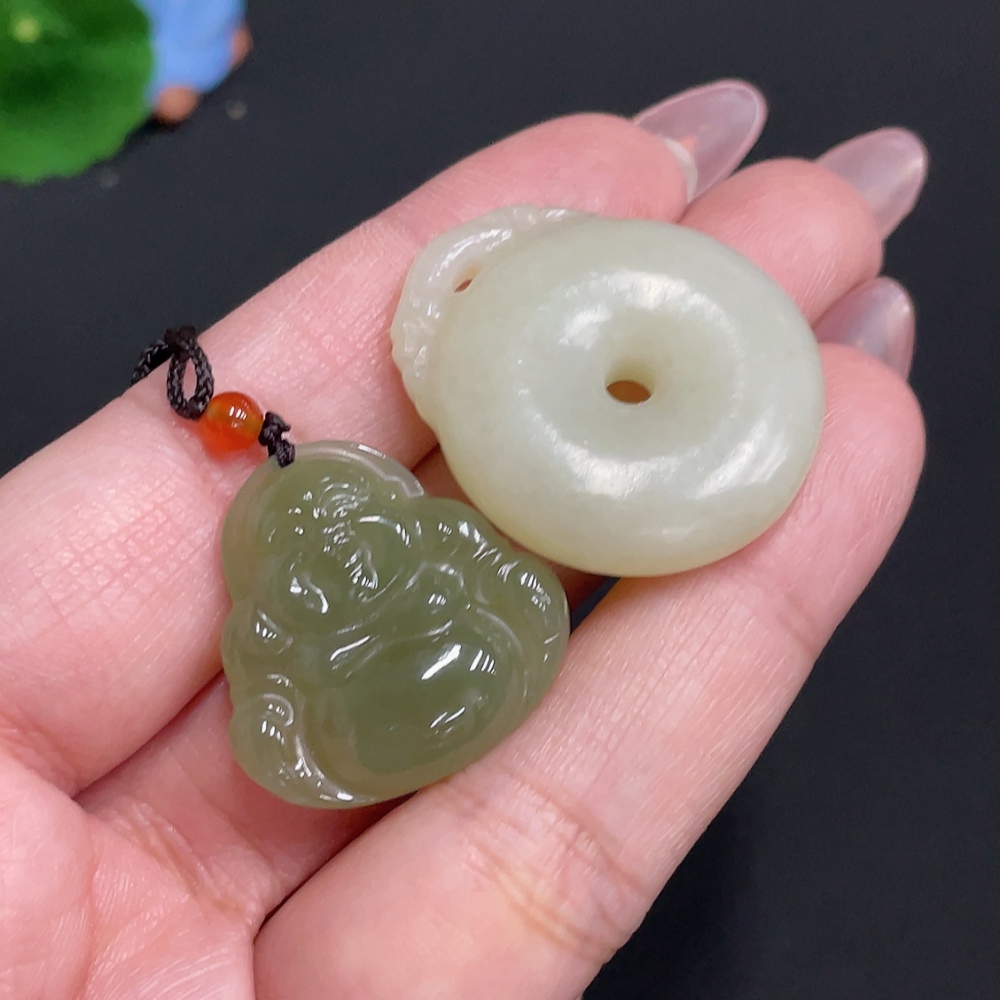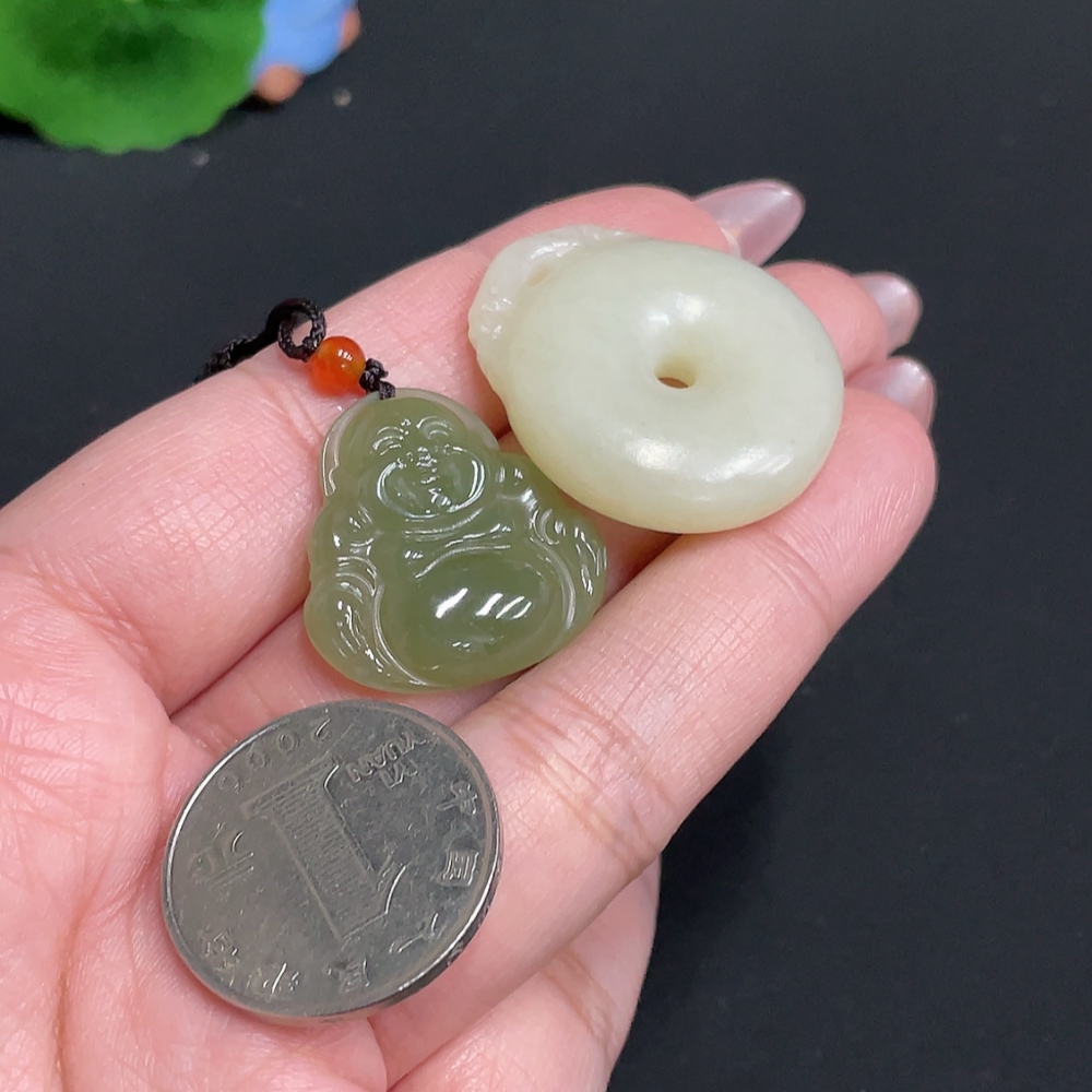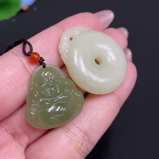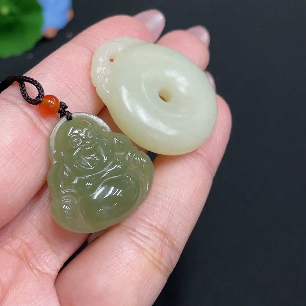 Trezaar - Hetian Jade Pendant, Peace Button, Buddha Figure