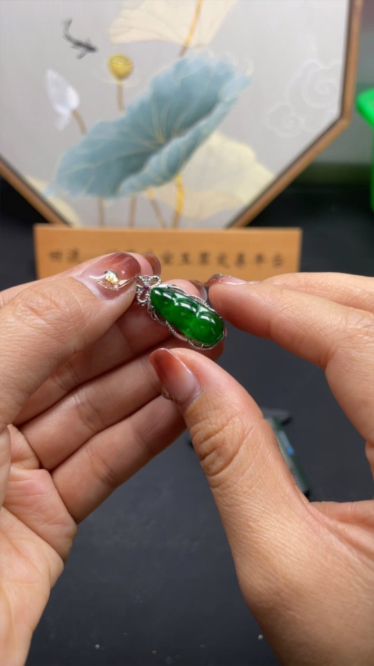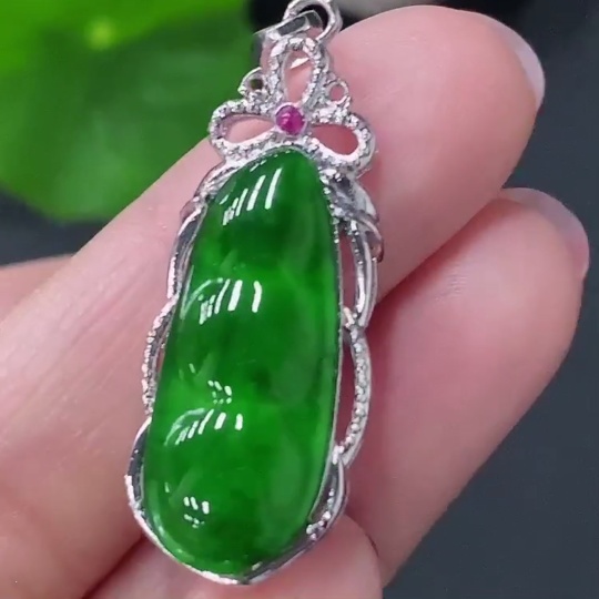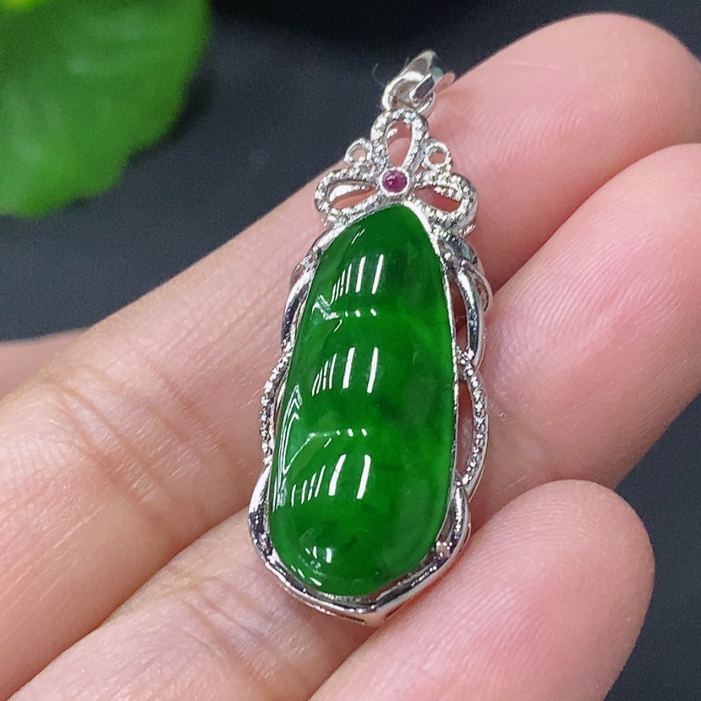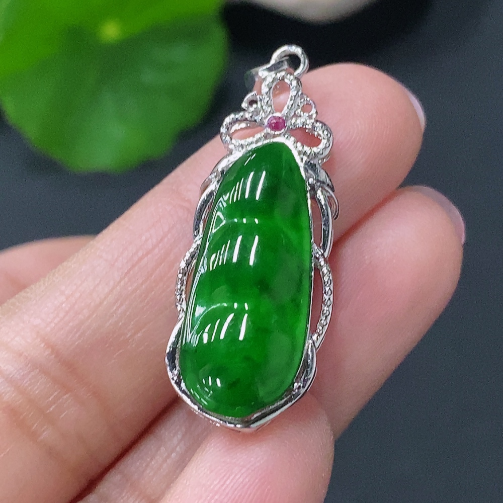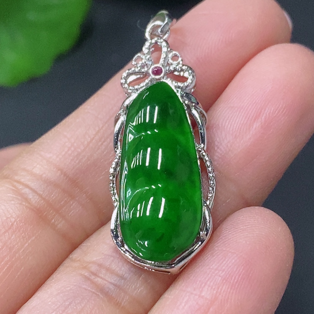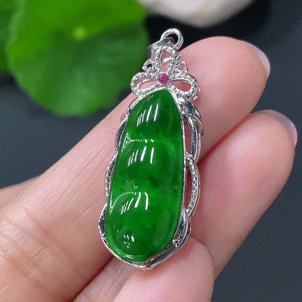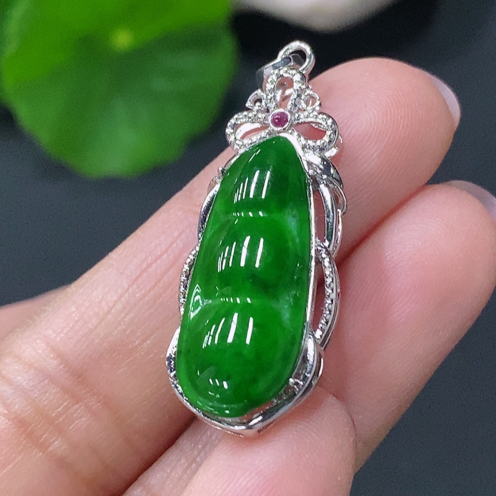 Jadeite Inlaid Lucky Bean Pendant AU44% Total Weight Approx.2.64g
