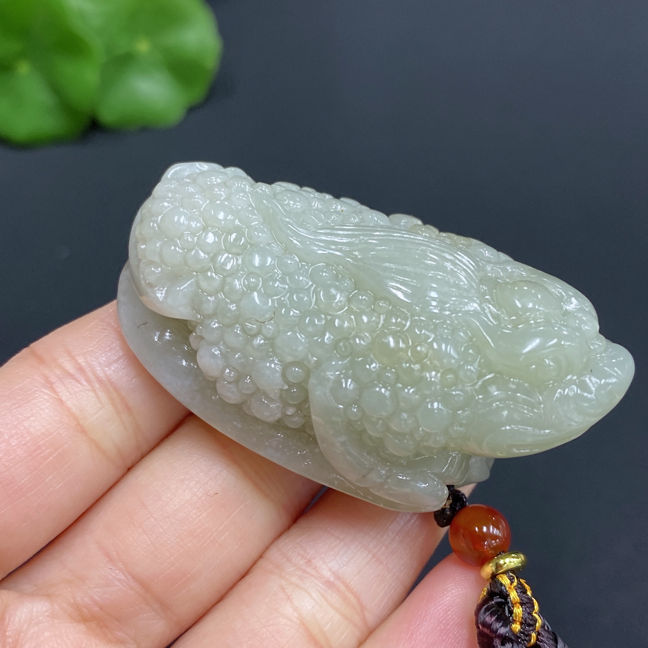 Hetian Jade Seed Material Handheld Piece - Three-Legged Golden Toad