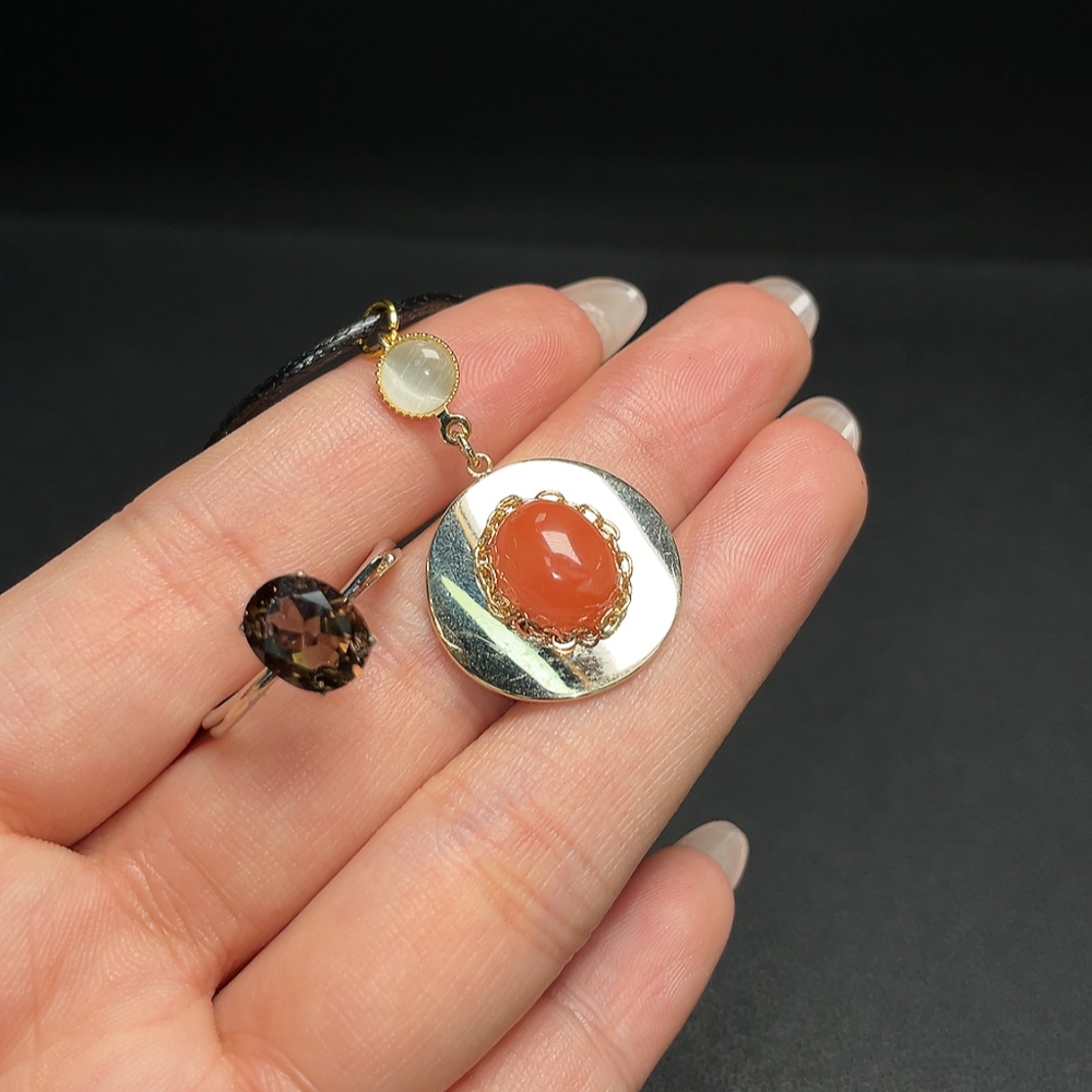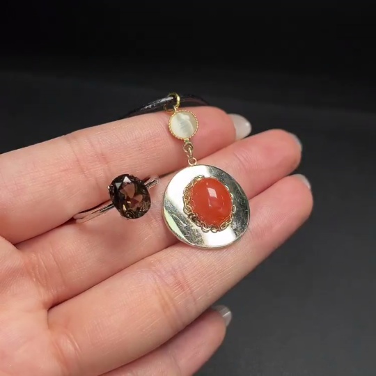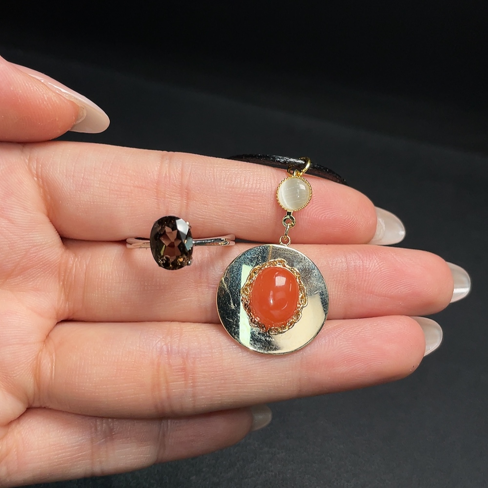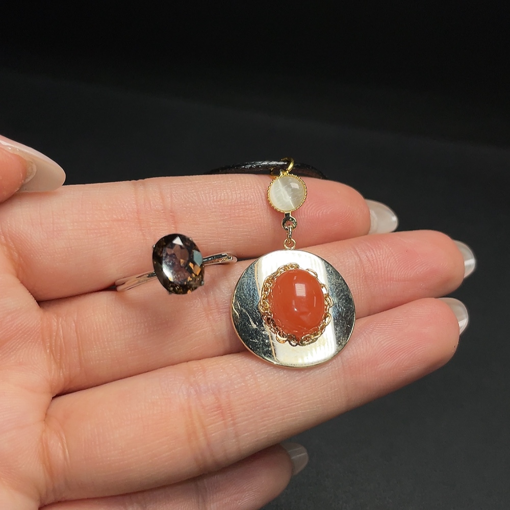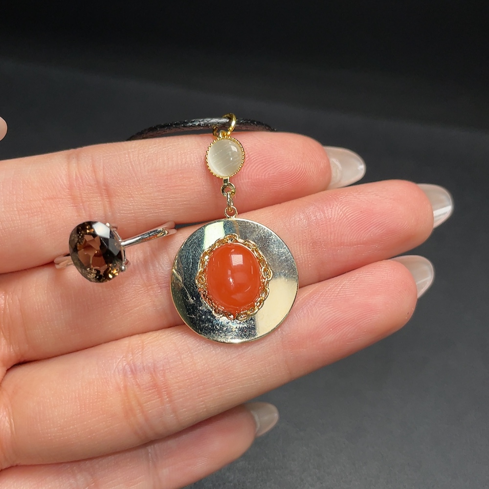 Red Agate Pendant + Crystal Ring (Adjustable, Non-Gold Setting, Total Weight Approx. 7.35g)