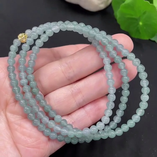 Jadeite Bead Necklace approx. 4.6mm Total Weight about 22.4g (Non-Gold Inlaid)