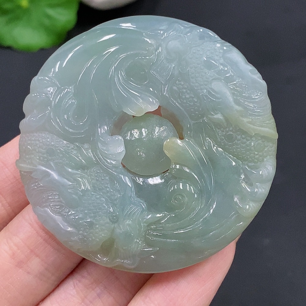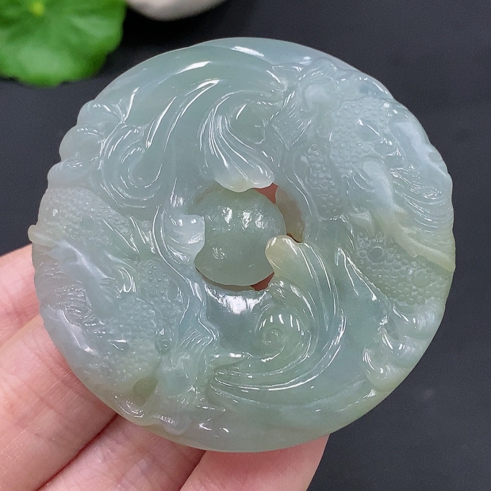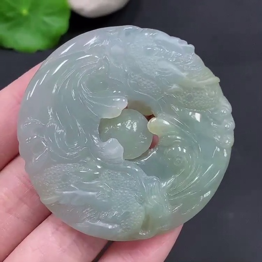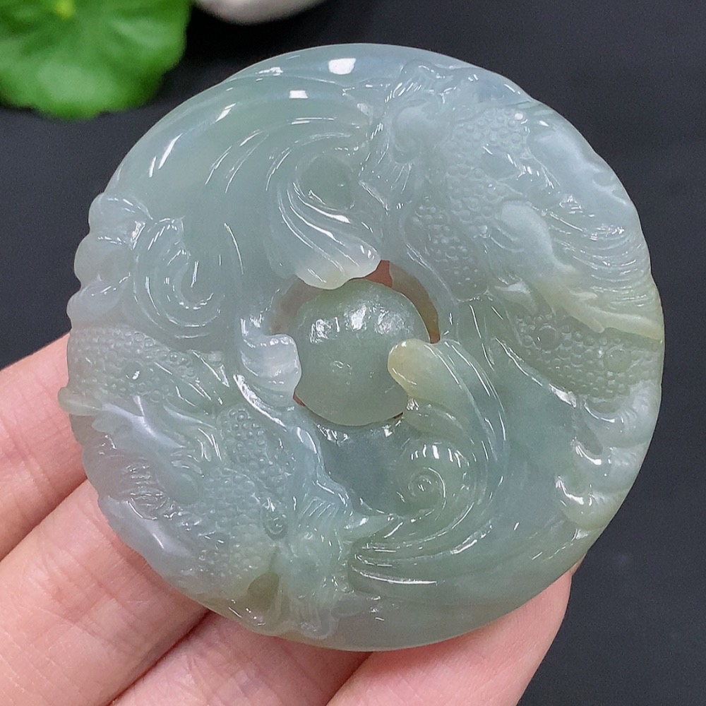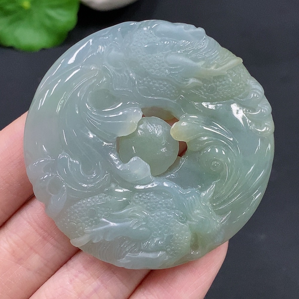 Jadeite Double Dragons Playing with Pearl Pendant