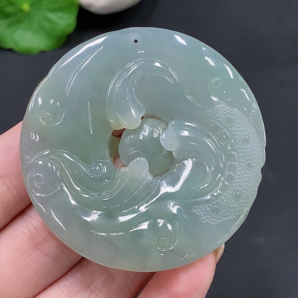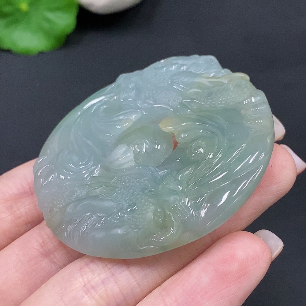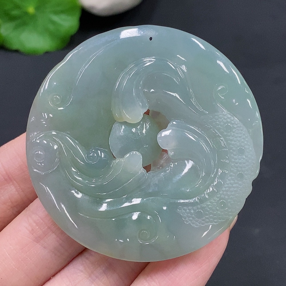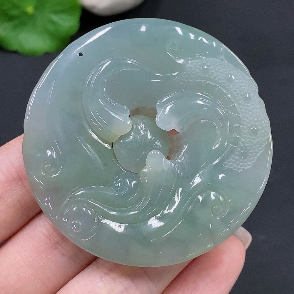 Jadeite Double Dragons Playing with Pearl Pendant