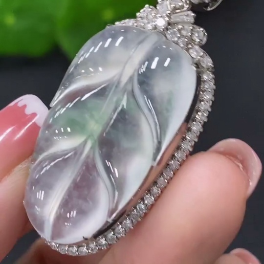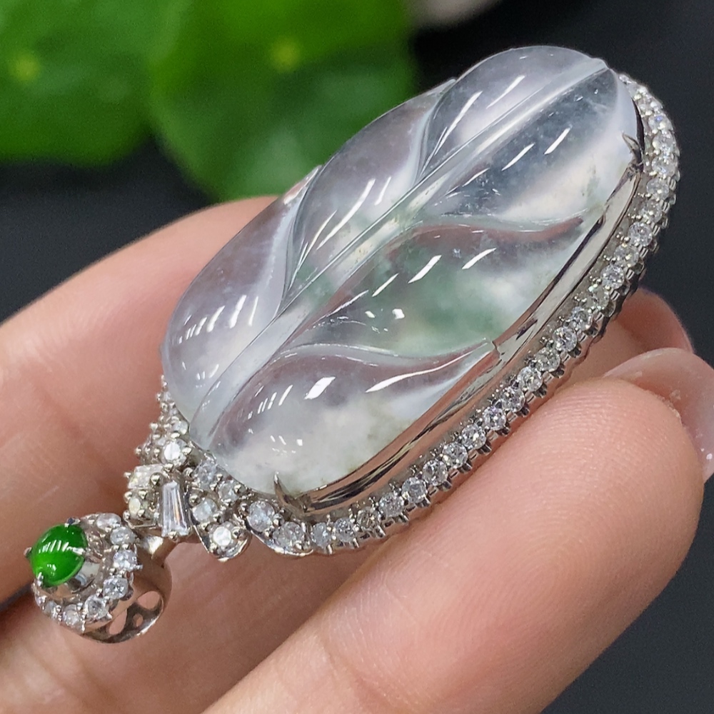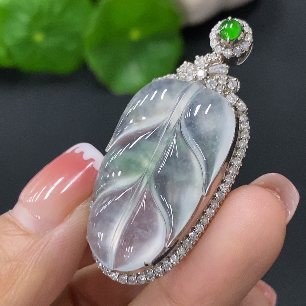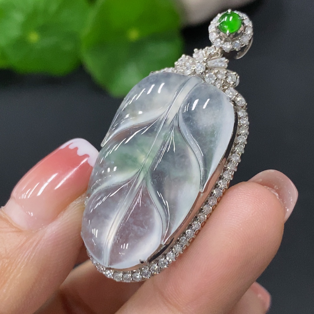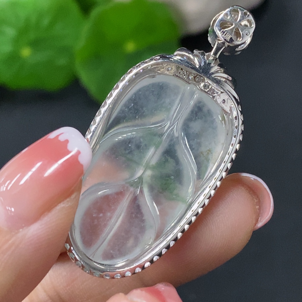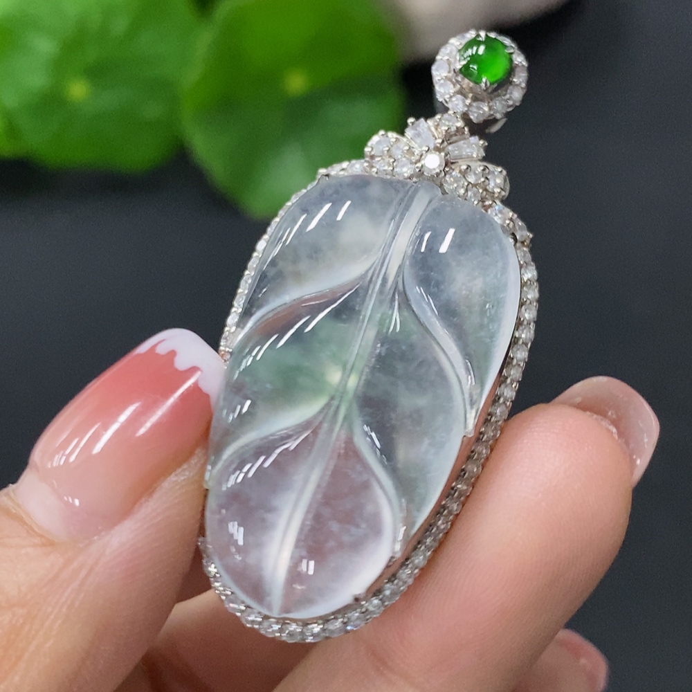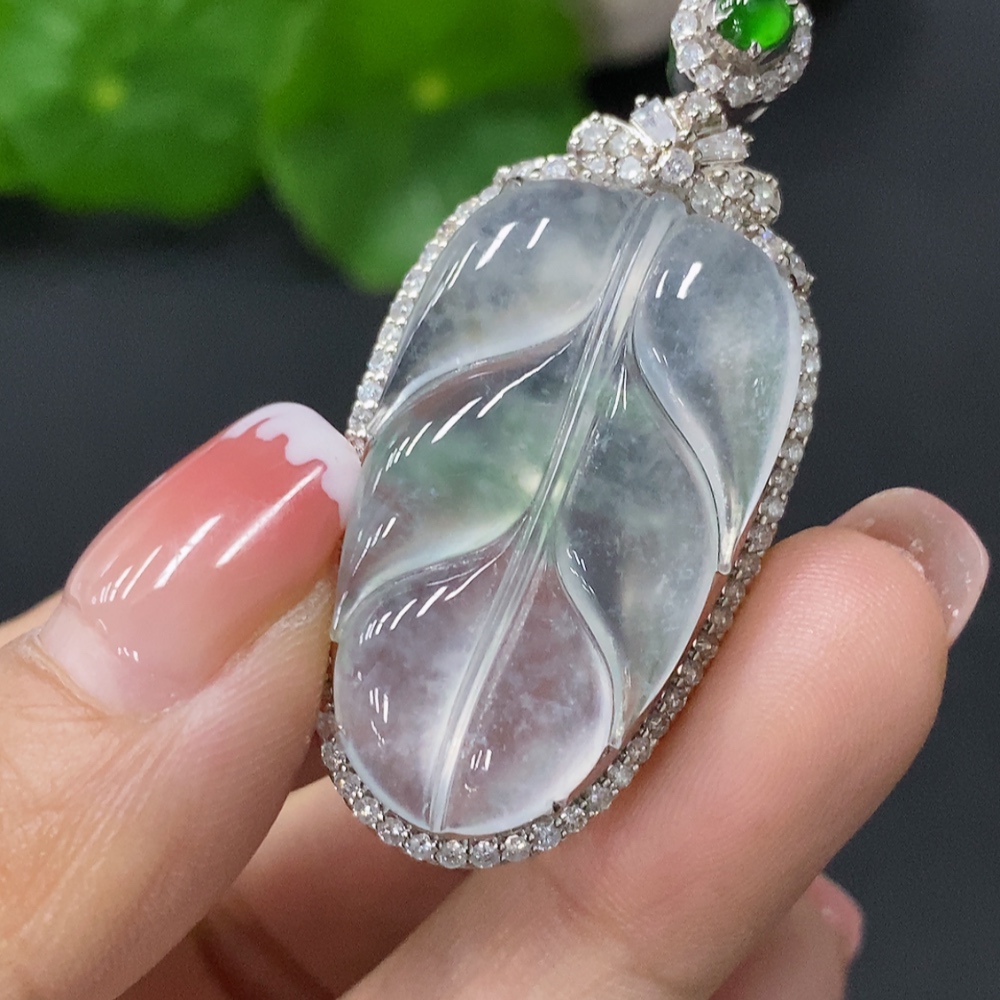 Jadeite Inlaid Leaf Pendant 18k Total Weight Approx.8.84g