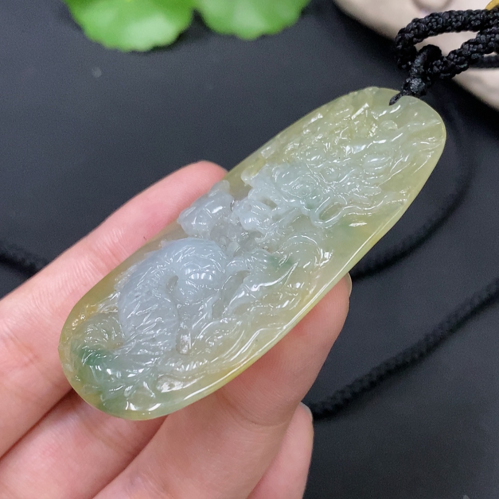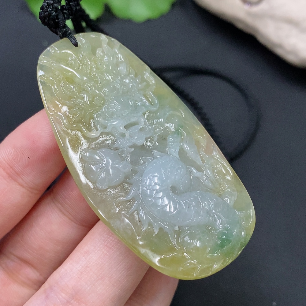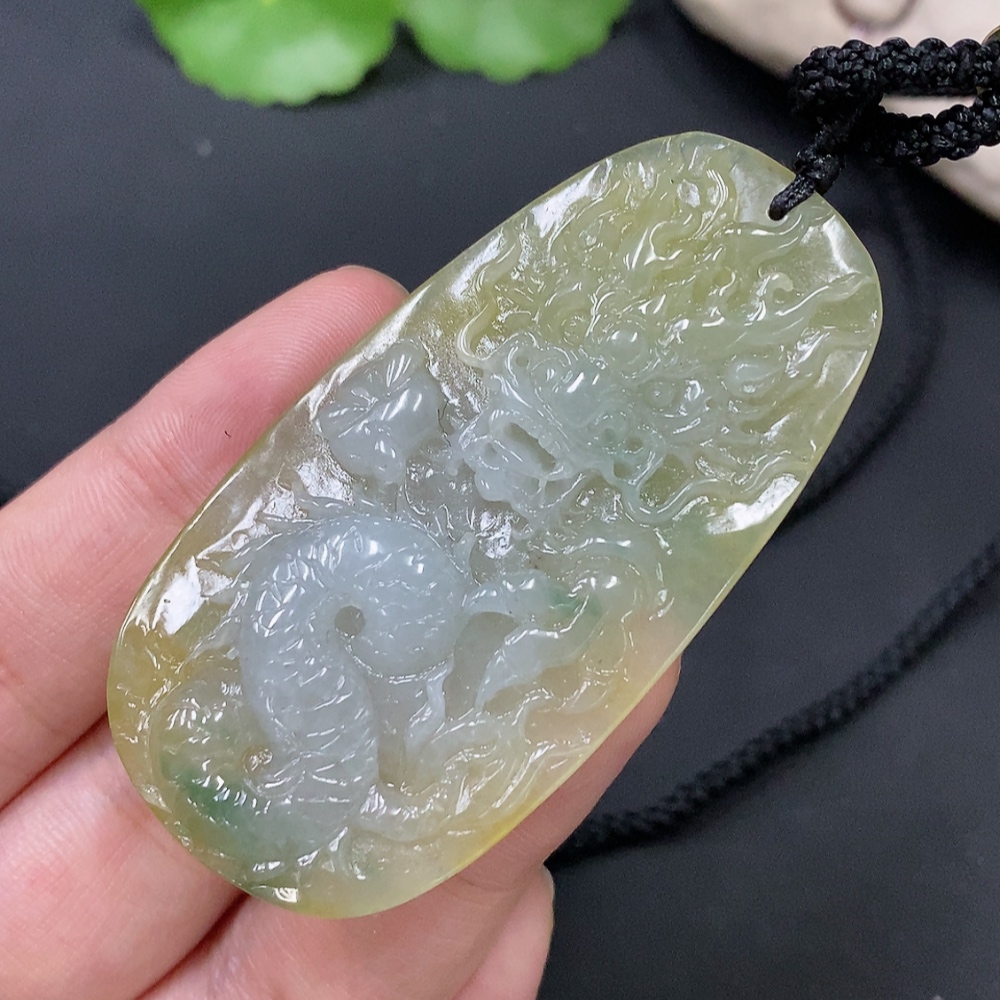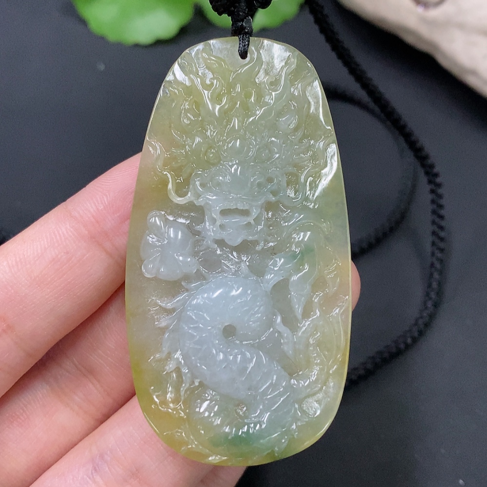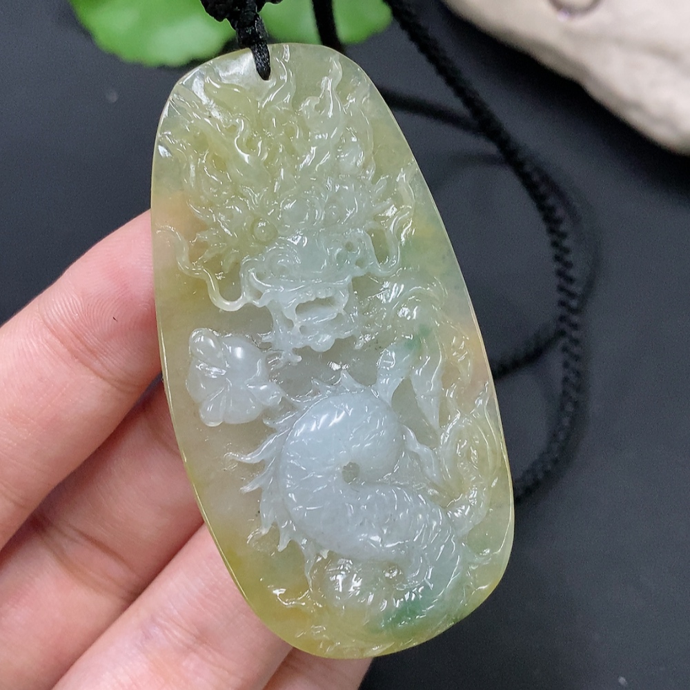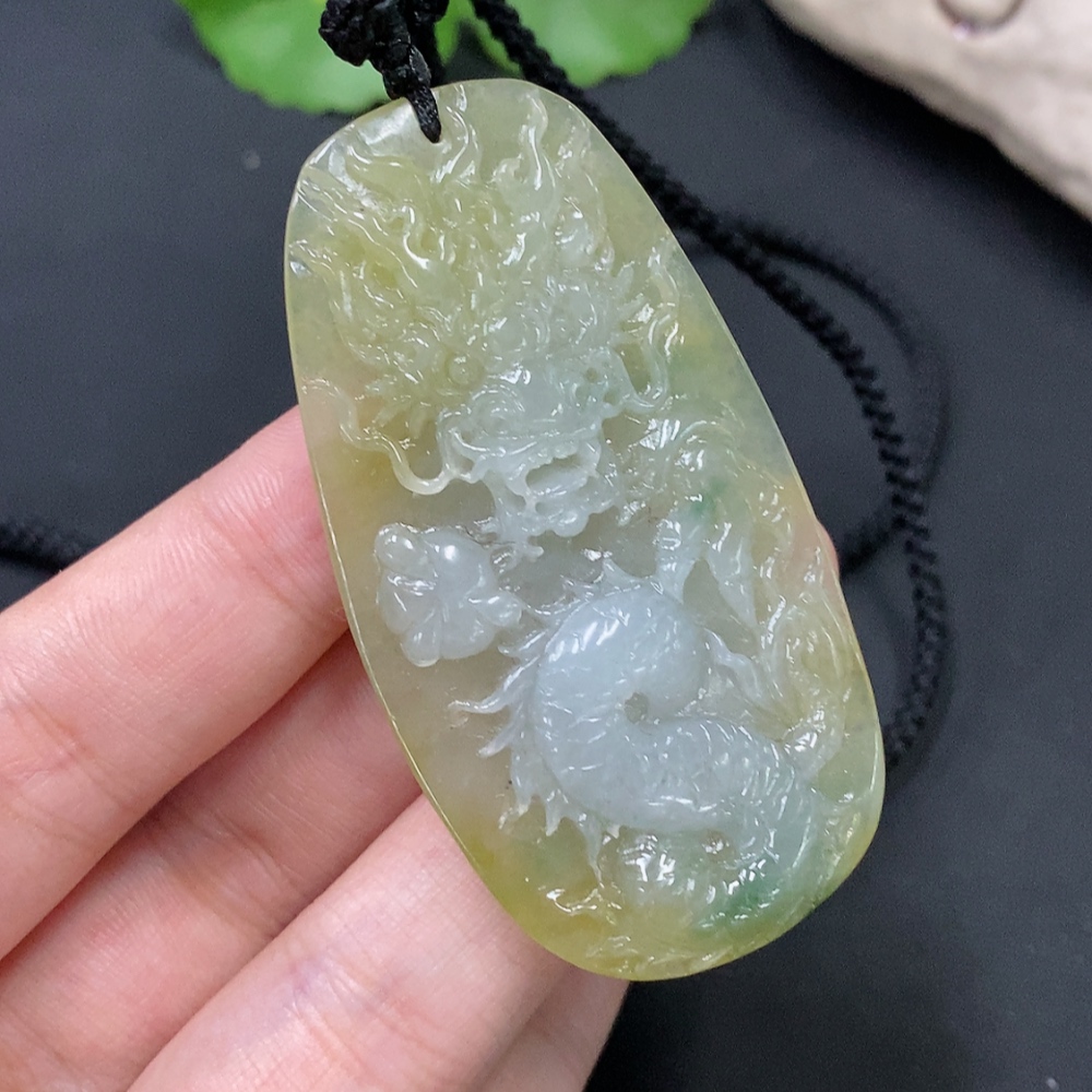 Jadeite Dragon Pendant Total Weight Approx. 31.22g (Including Rope)