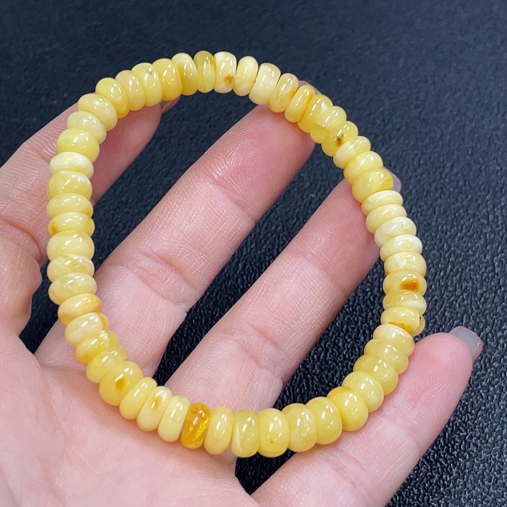 Amber Beeswax Bracelet, Total Weight Approx. 7g, Size About 7.3mm