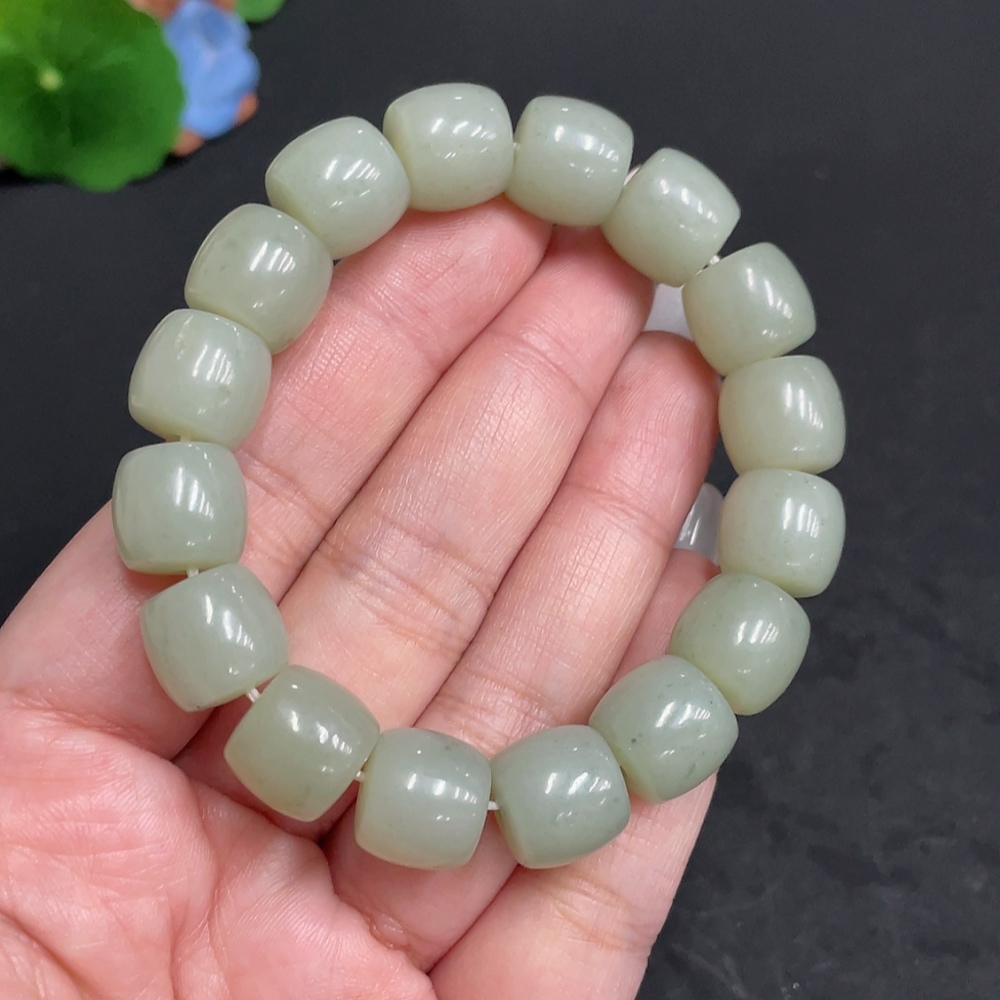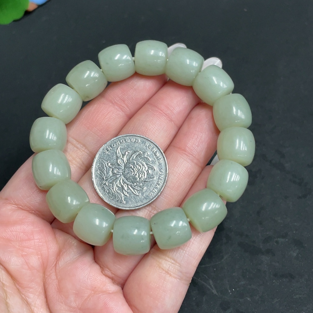 Hetian Jade Bracelet, Approx. 11.7 mm Beads, Total Weight Approx. 48.7g
