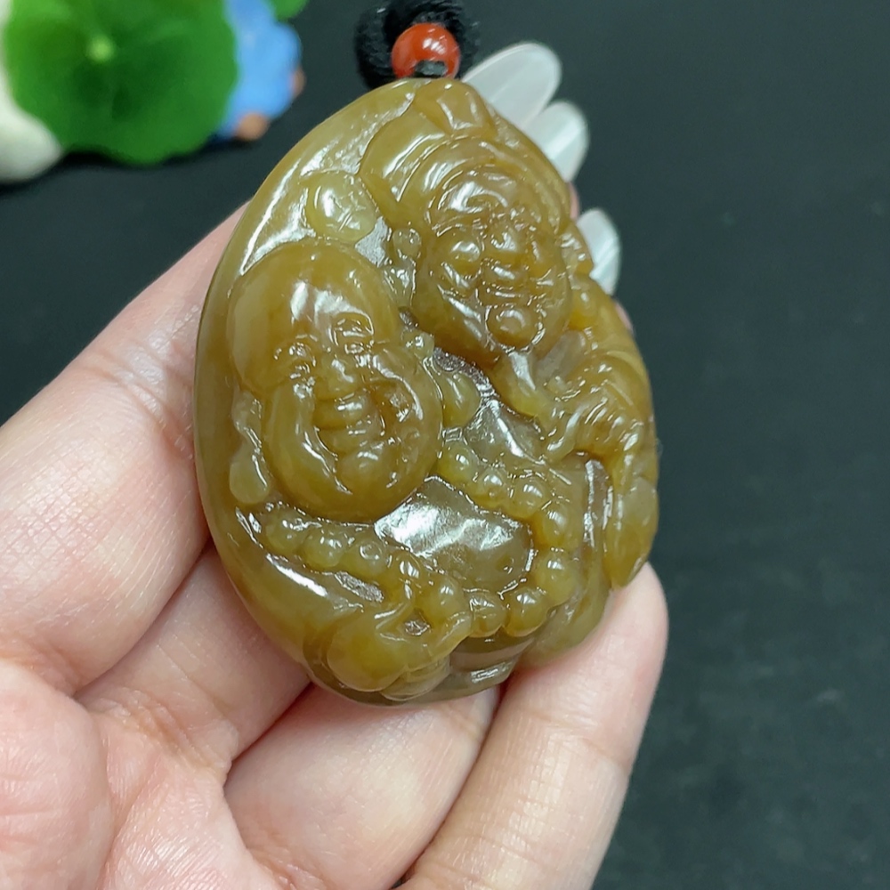 Hetian Jade Pendant - Wealth and Fortune - Non-Hetian Jade Beads - Total Weight Approx. [Including Rope] 60.2g