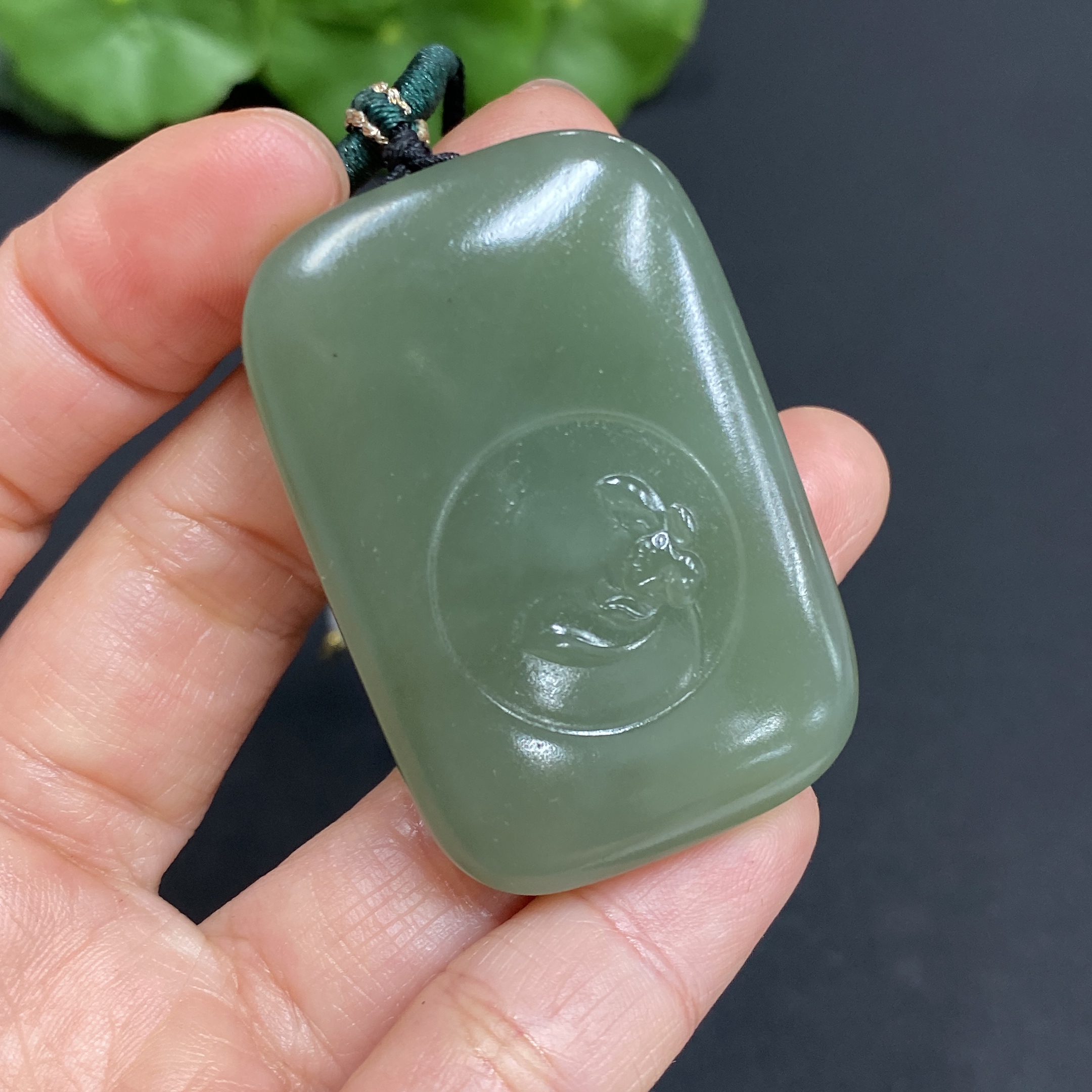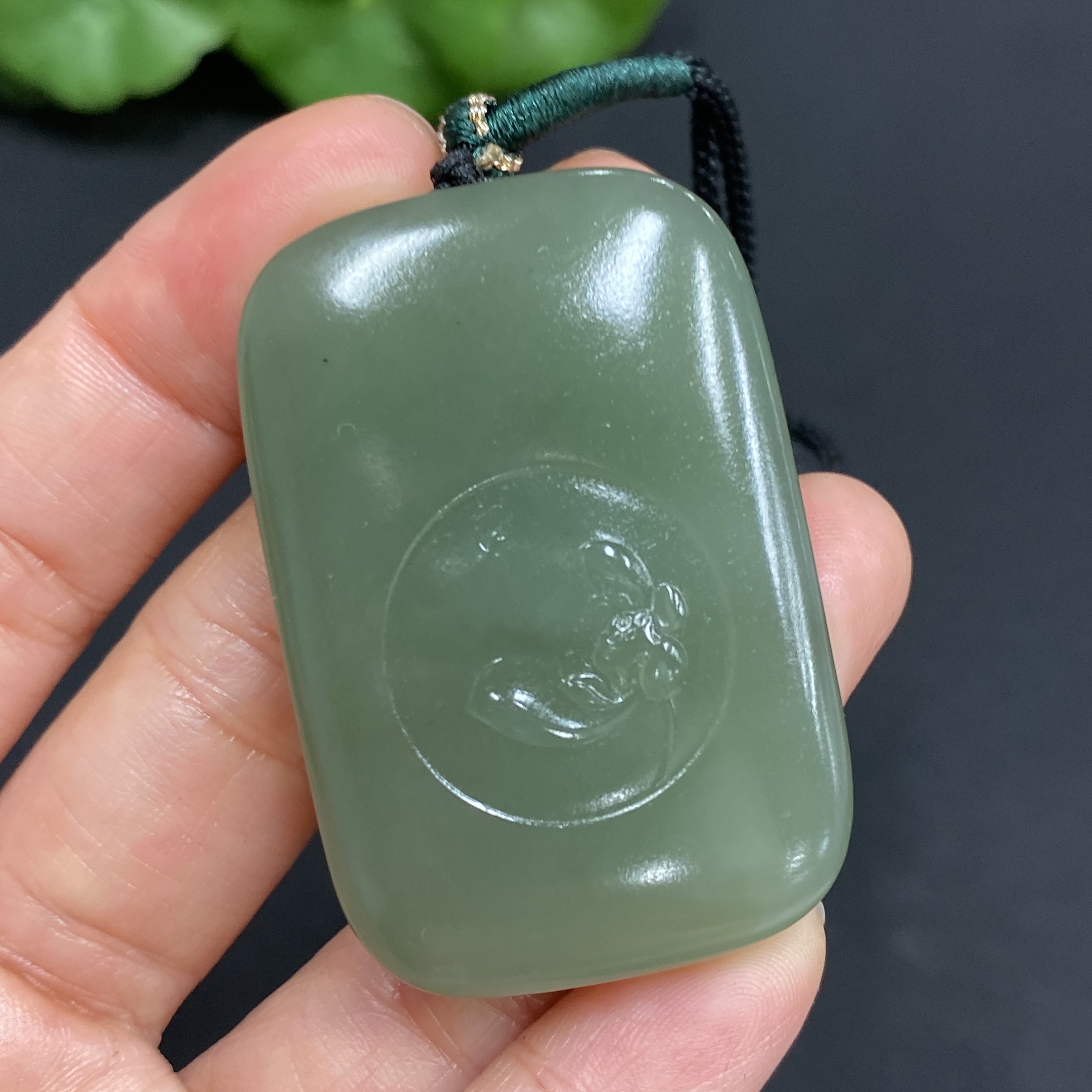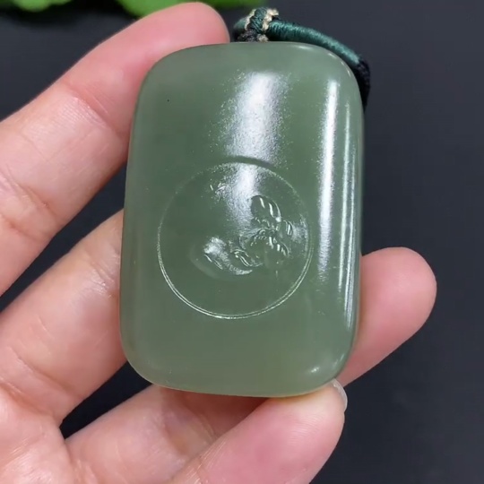 Hetian Jade Pendant Lotus (Total Weight Approx. 37.8g Including Cord)
