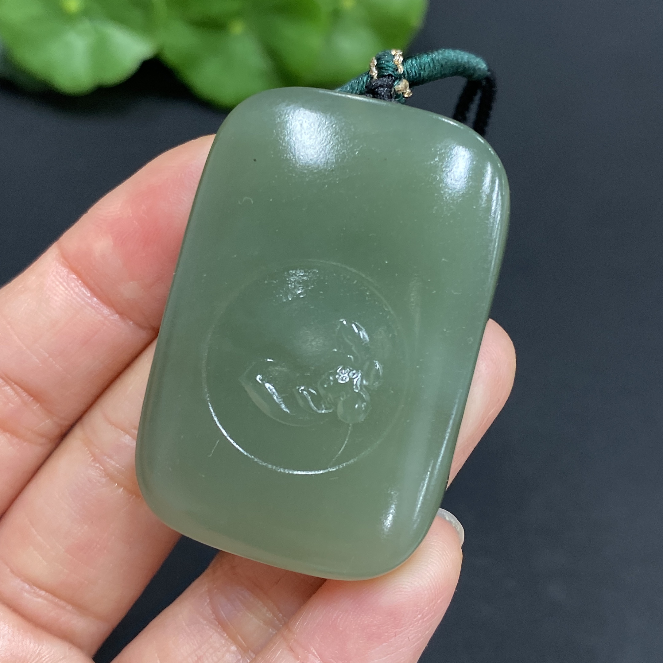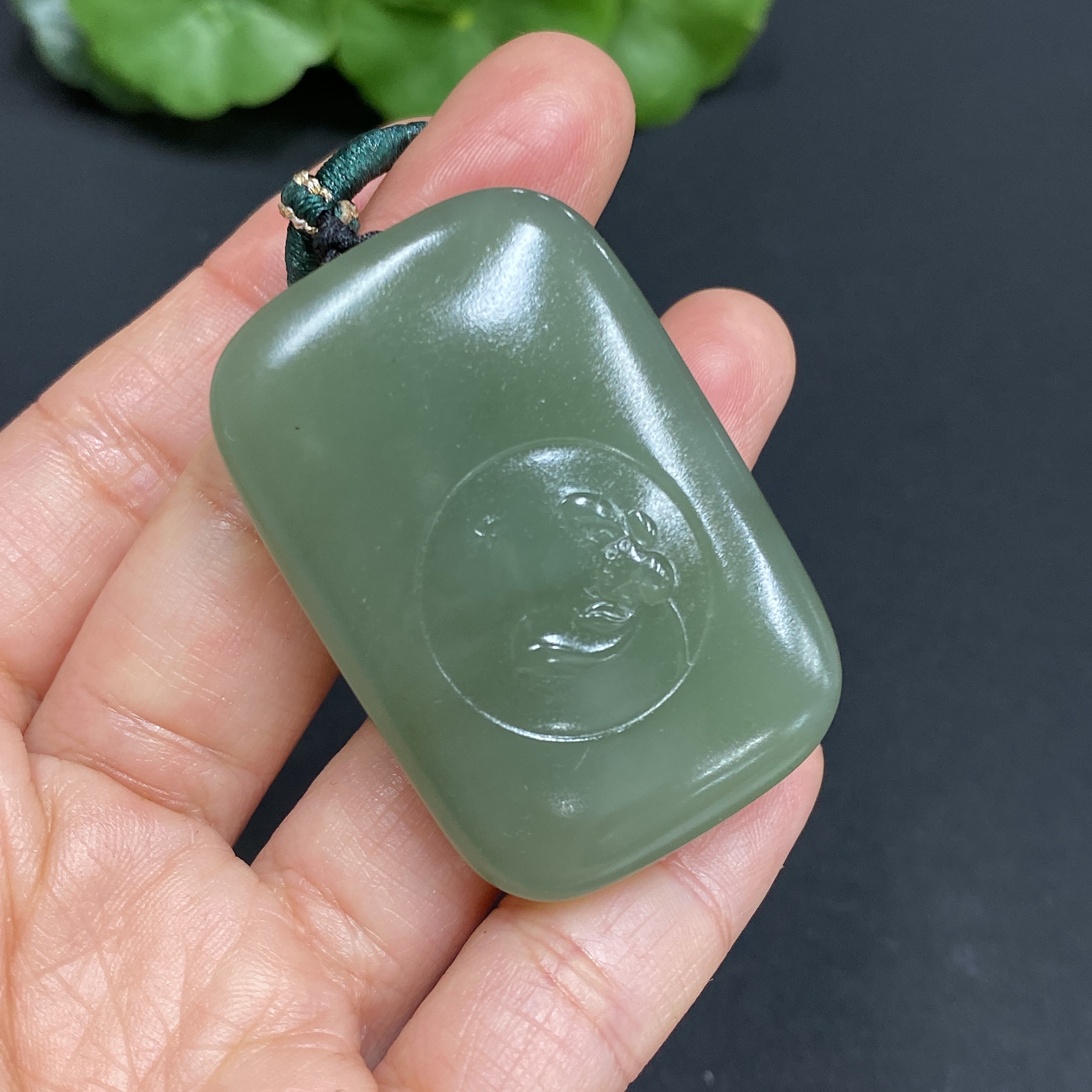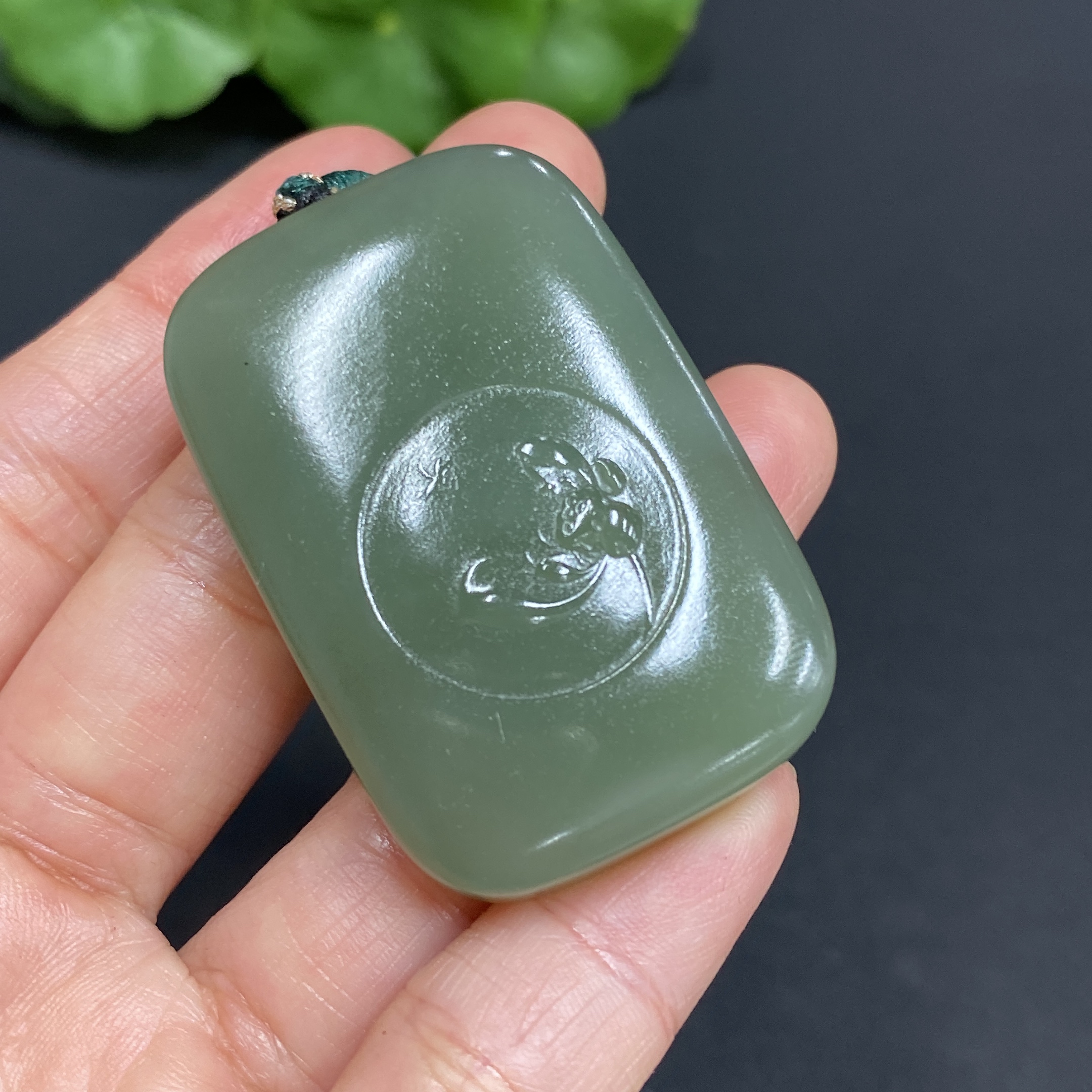 Hetian Jade Pendant Lotus (Total Weight Approx. 37.8g Including Cord)