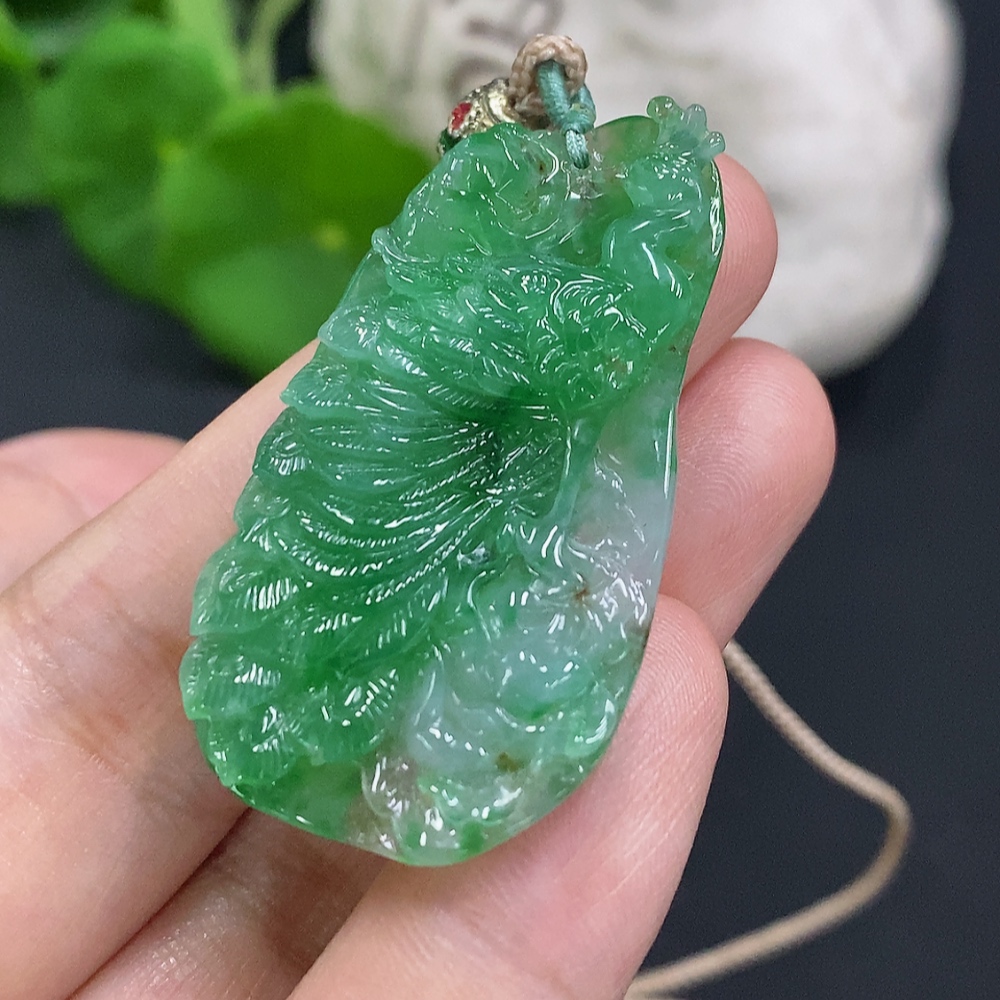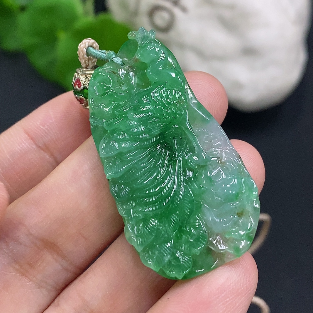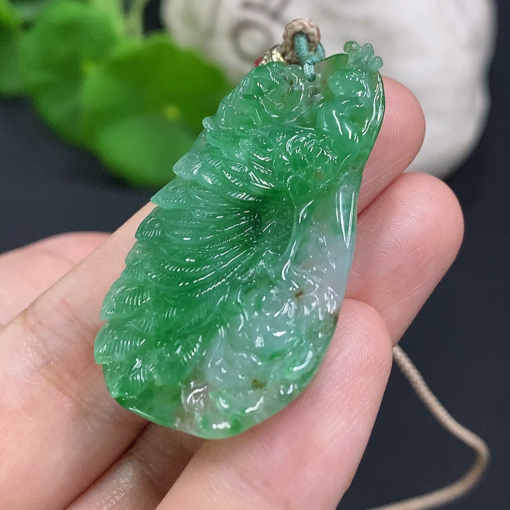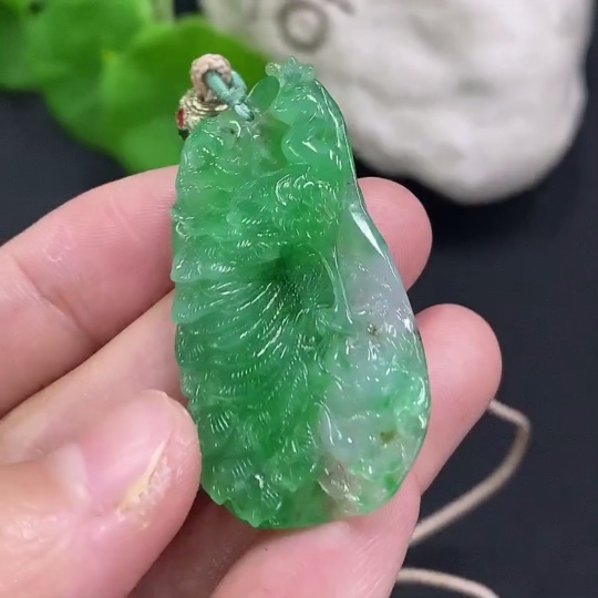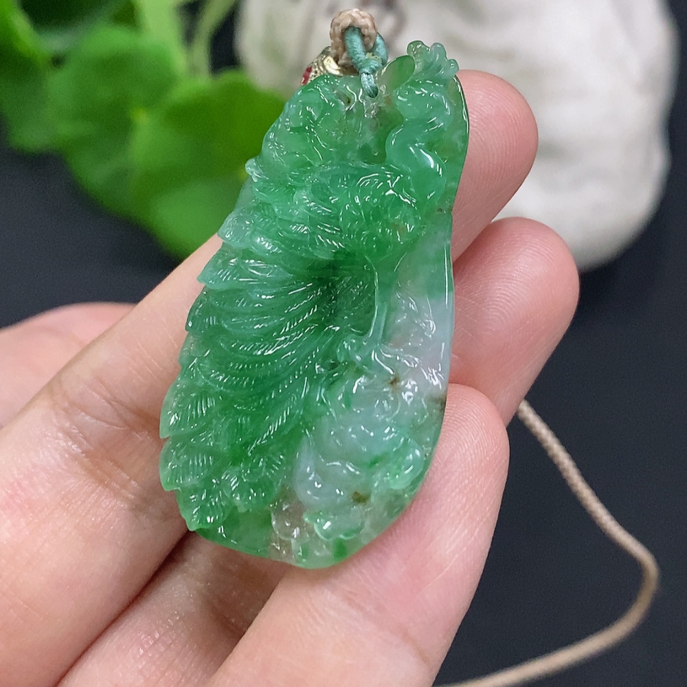 Jadeite Peacock Pendant Total Weight Including Rope Approximately 12g