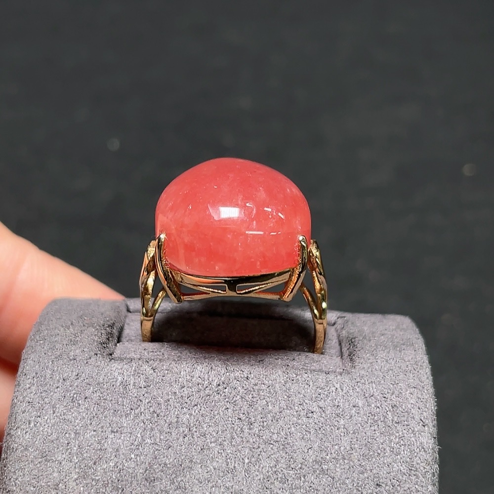 Rhodochrosite ring 18k gold total weight approx. 8.1g size 14