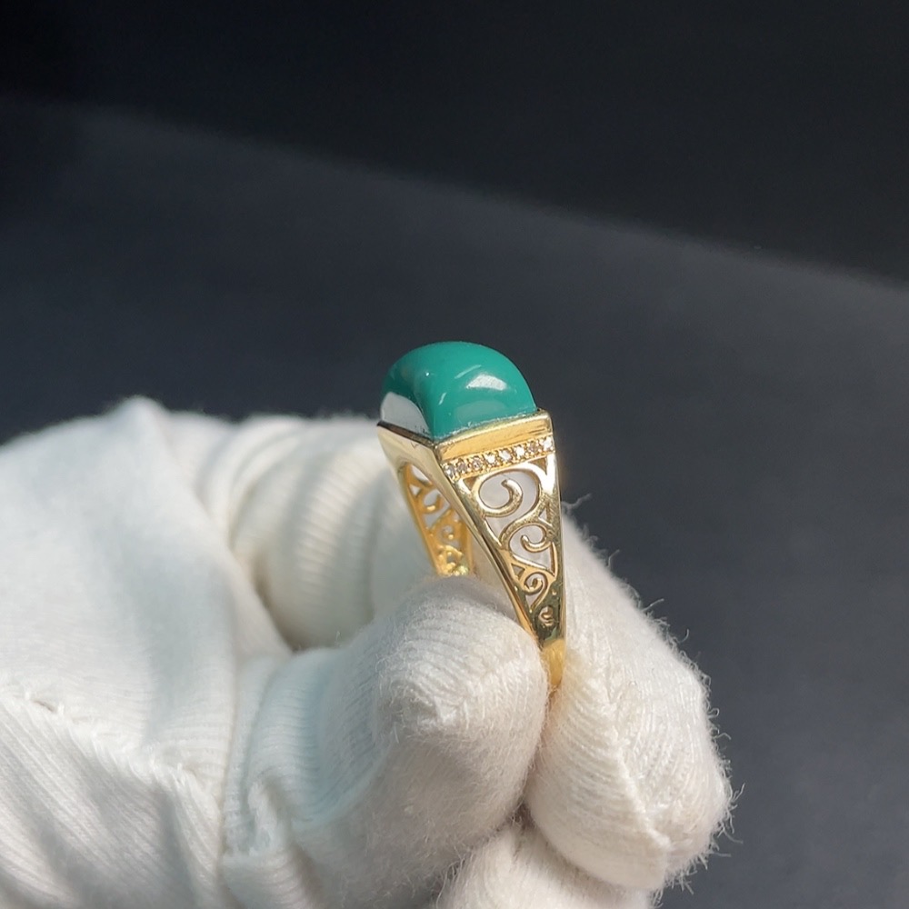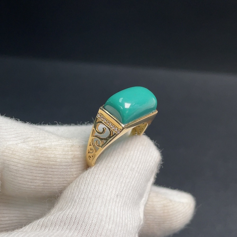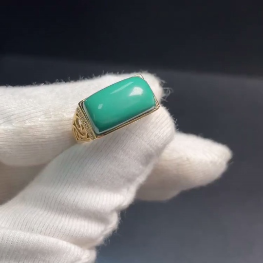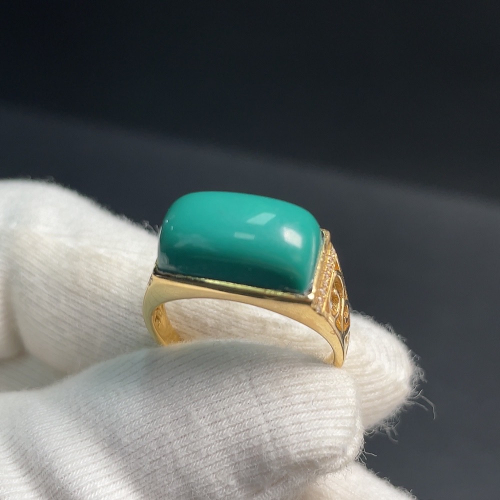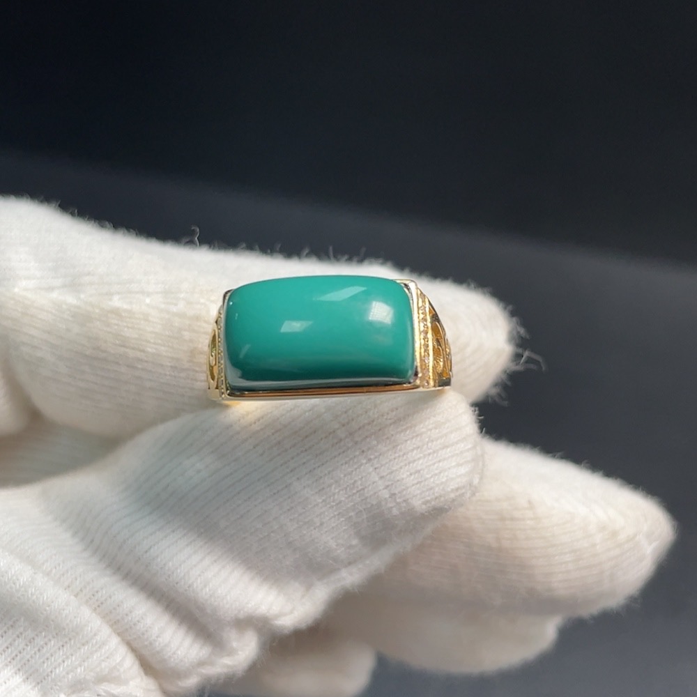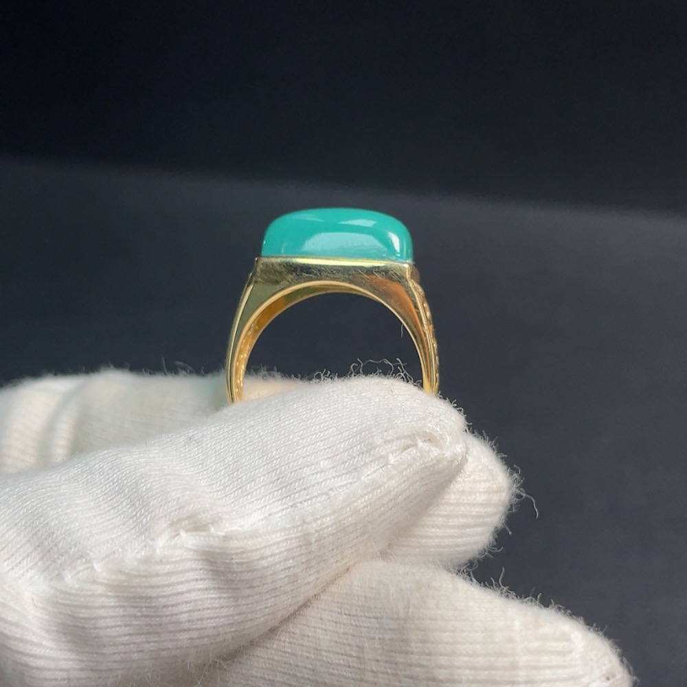 Turquoise Inlaid Ring 18K Gold Size 17 Total Weight Approx. 4.60g