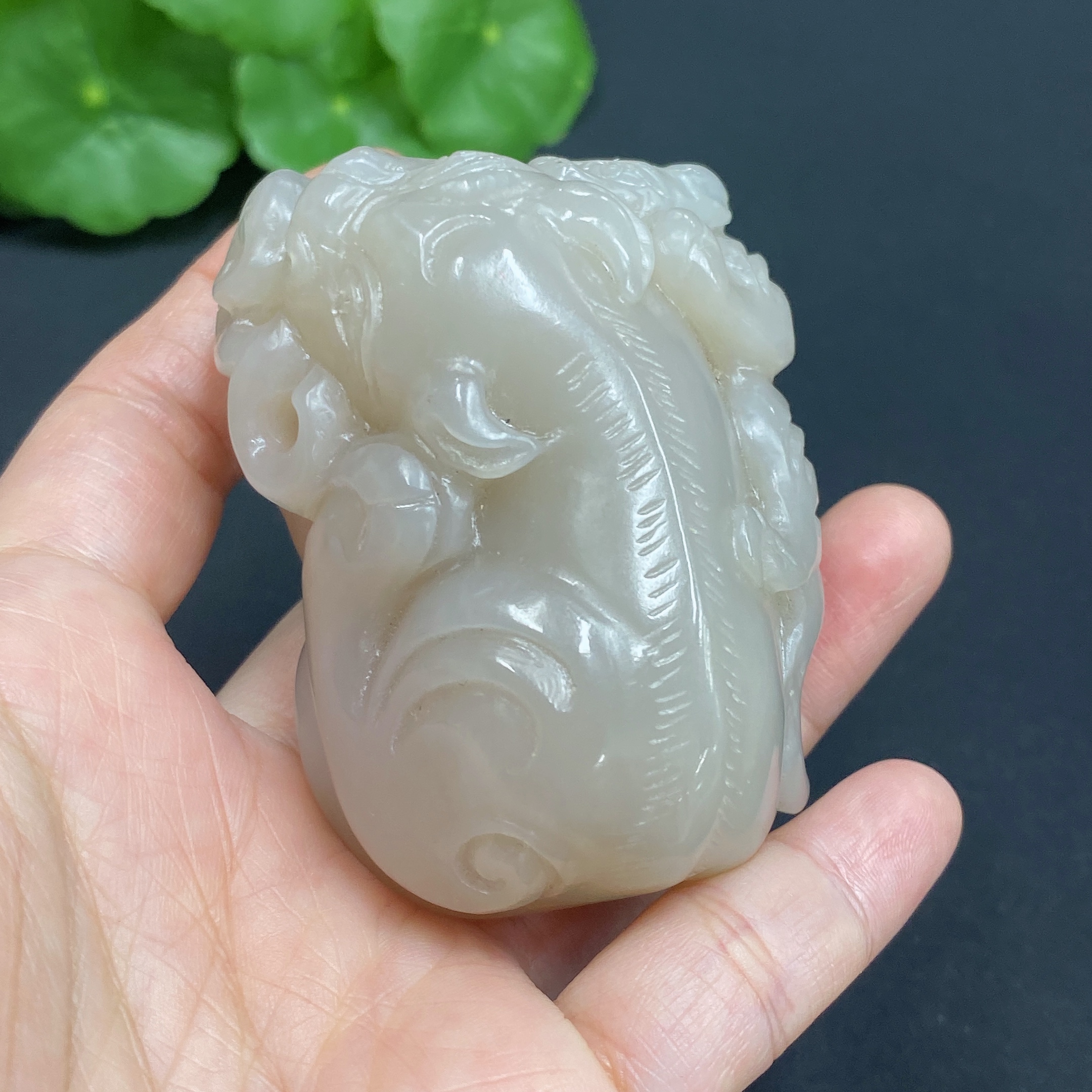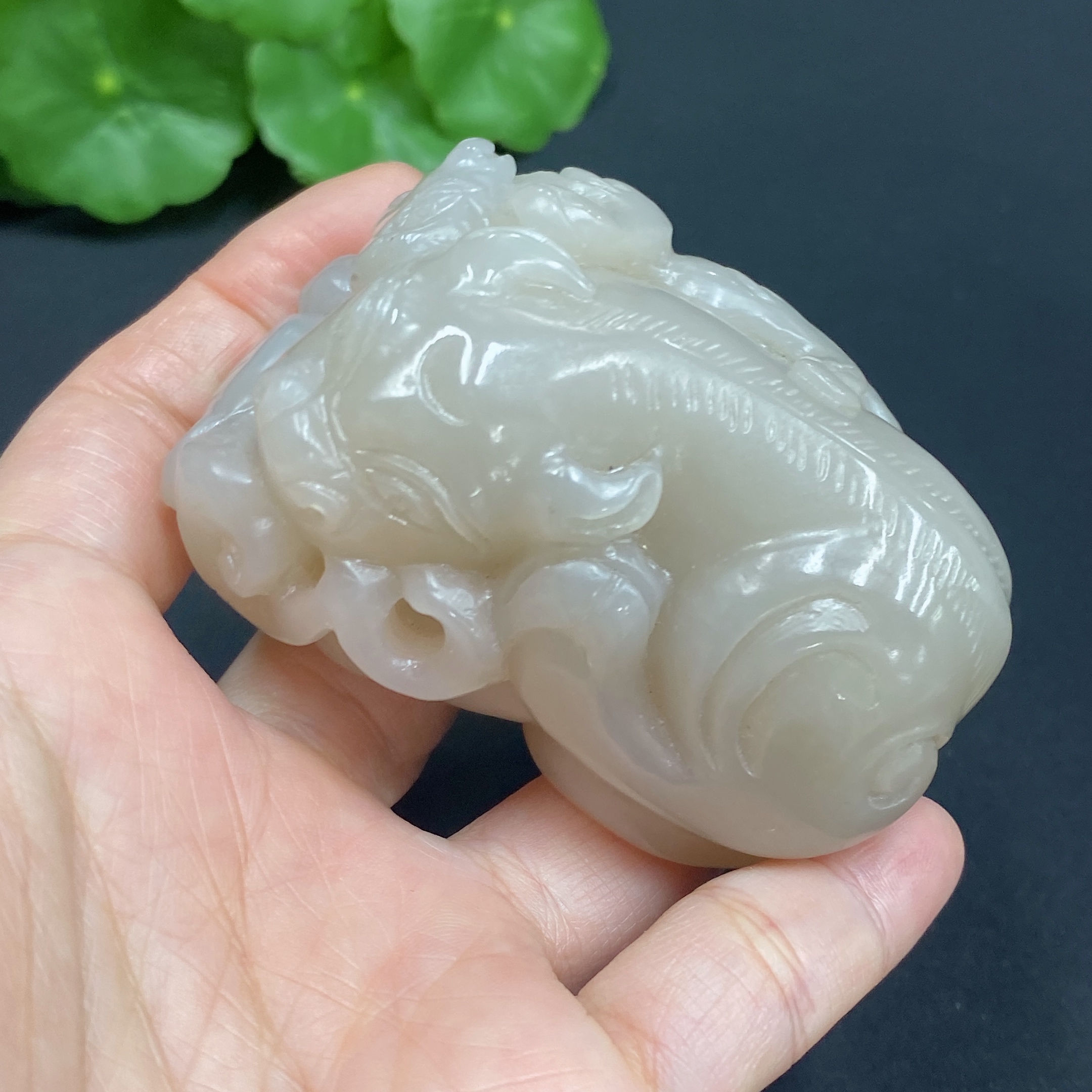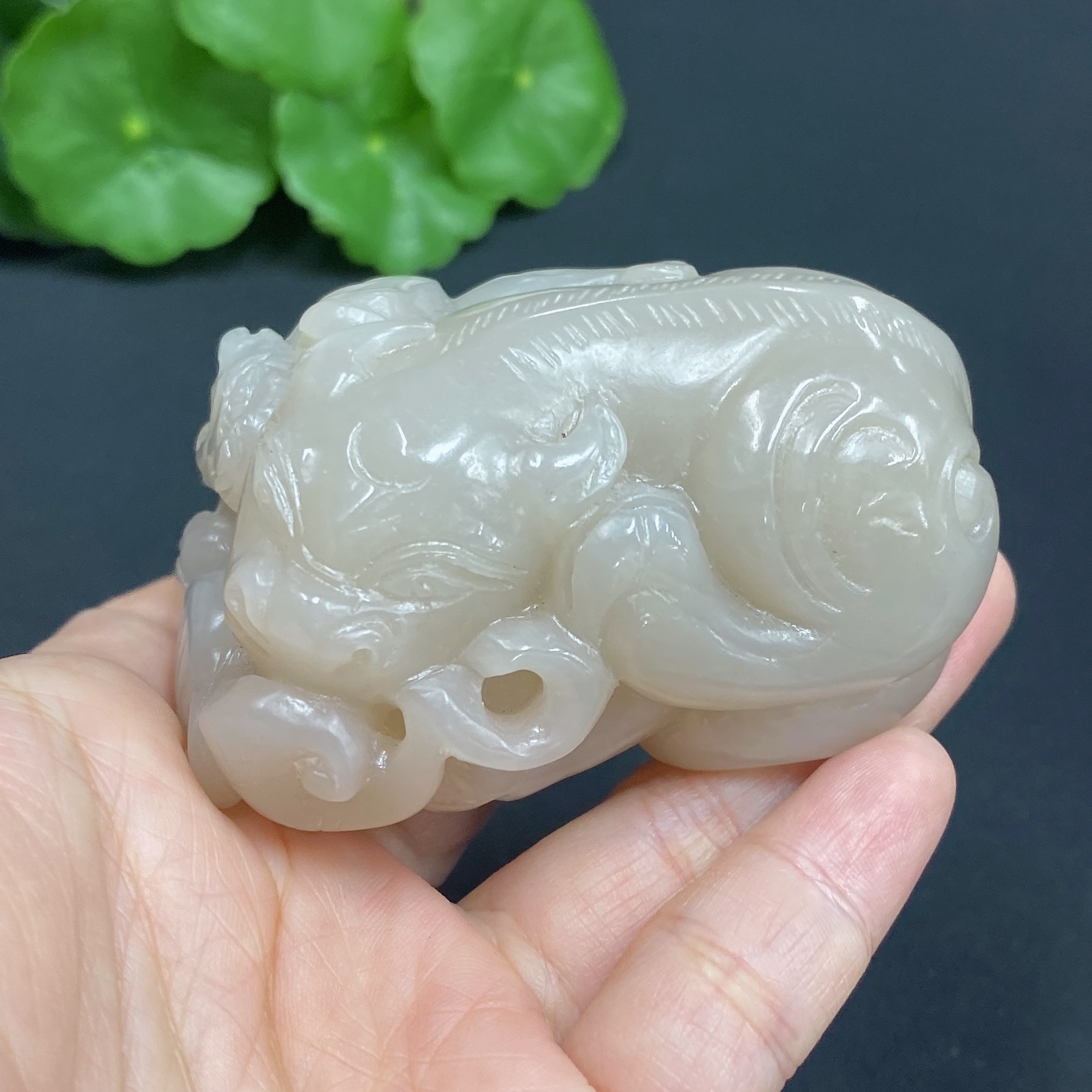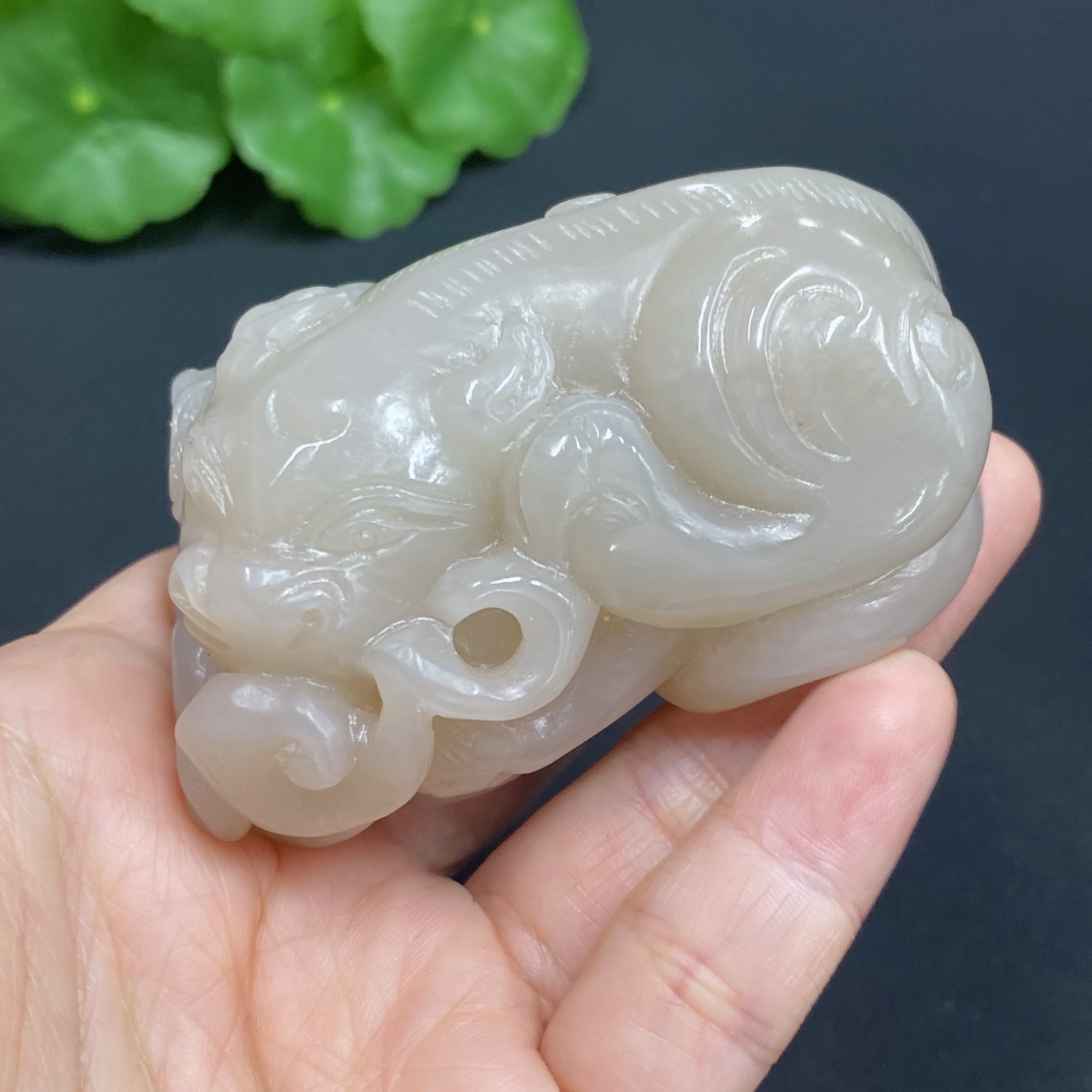 Hetian Jade Handheld Piece, Auspicious Beast, Total Weight Approx. 172.3g