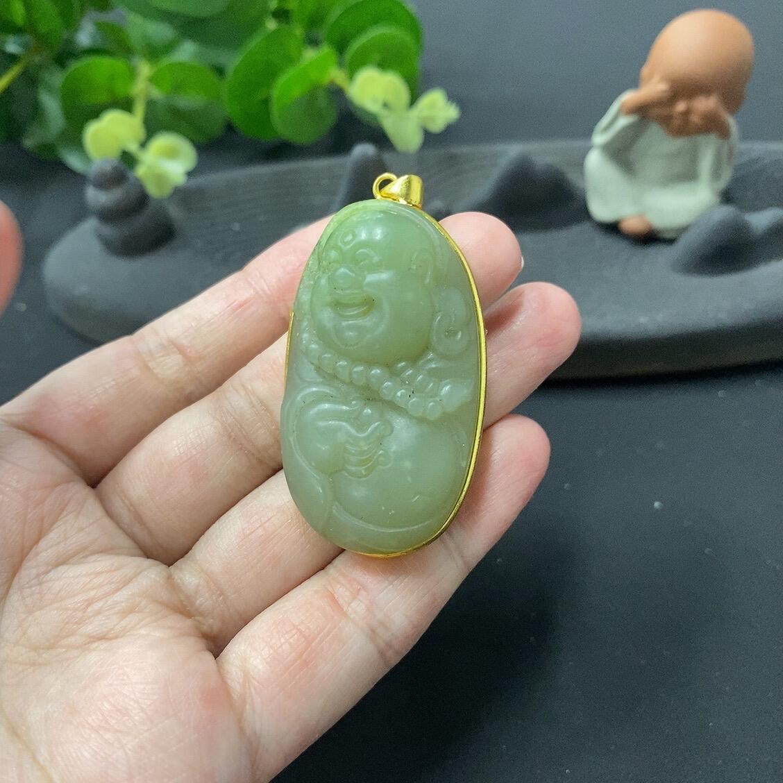 Hetian Jade Pendant with Crack Lines, Total Weight 26.2g (Non-Gold-Inlaid)