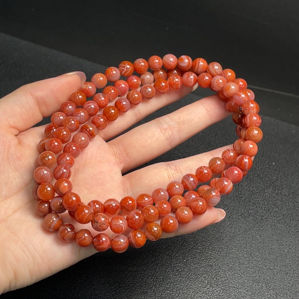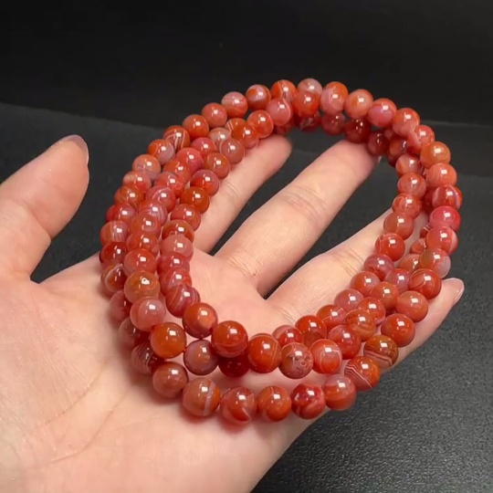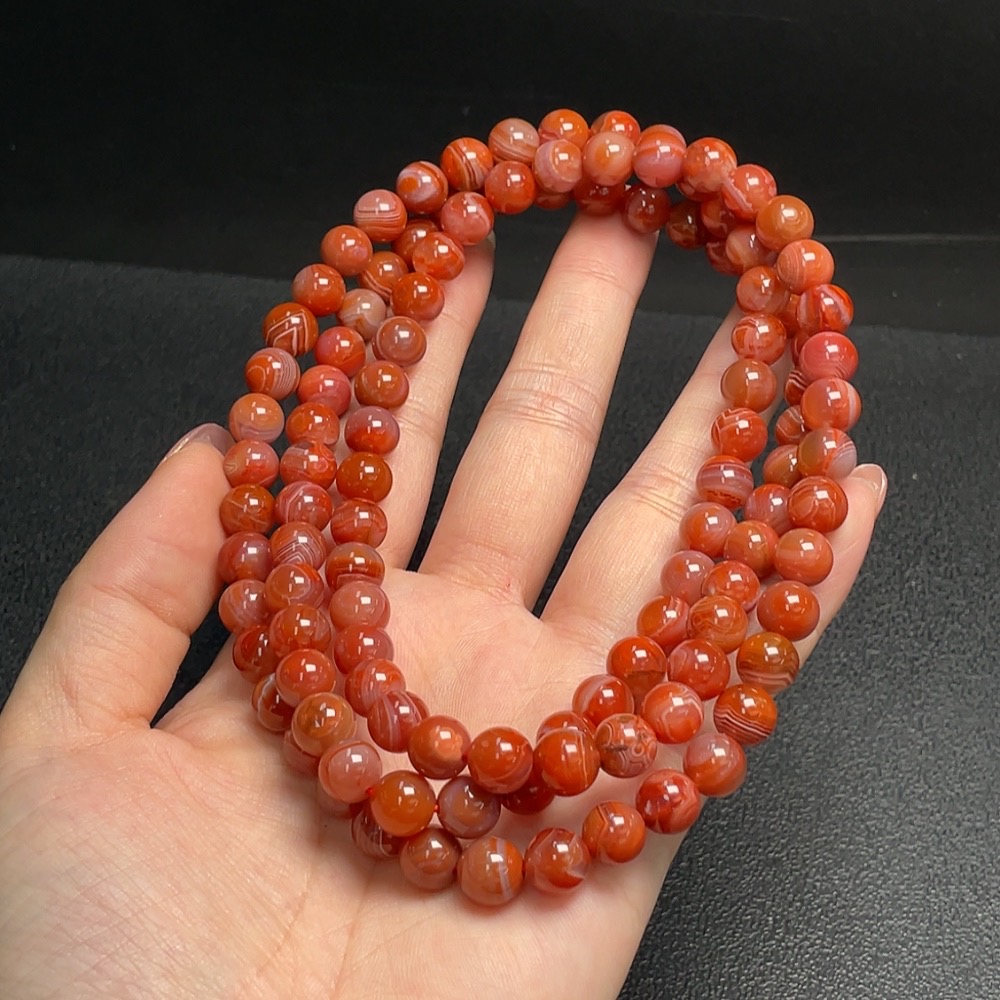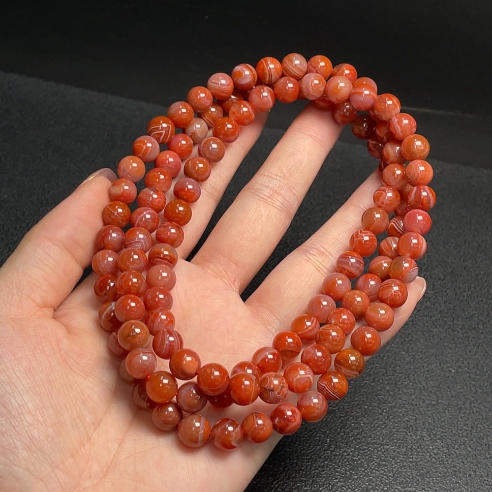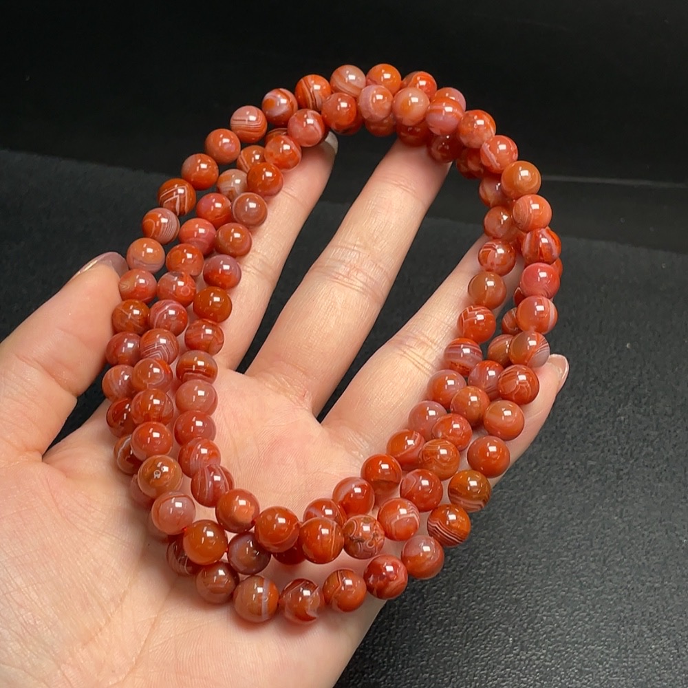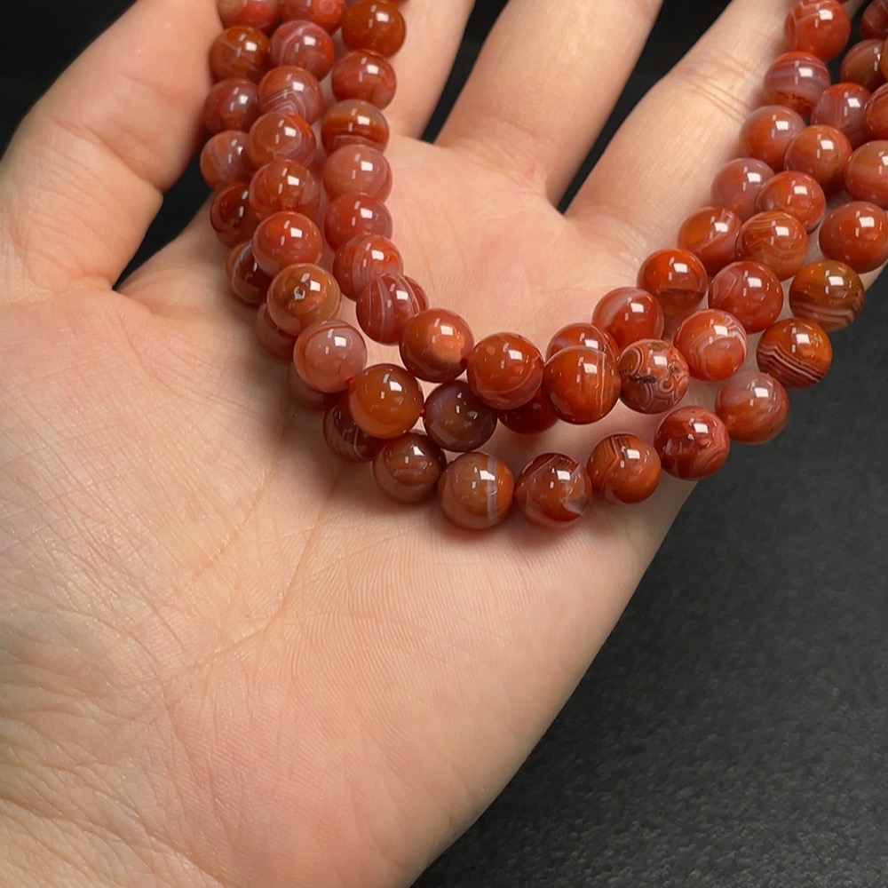 South Red Agate Bead Strand, approx. 8.1mm, total weight approx. 81.08g, visible organic matter