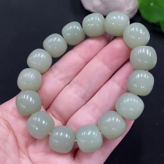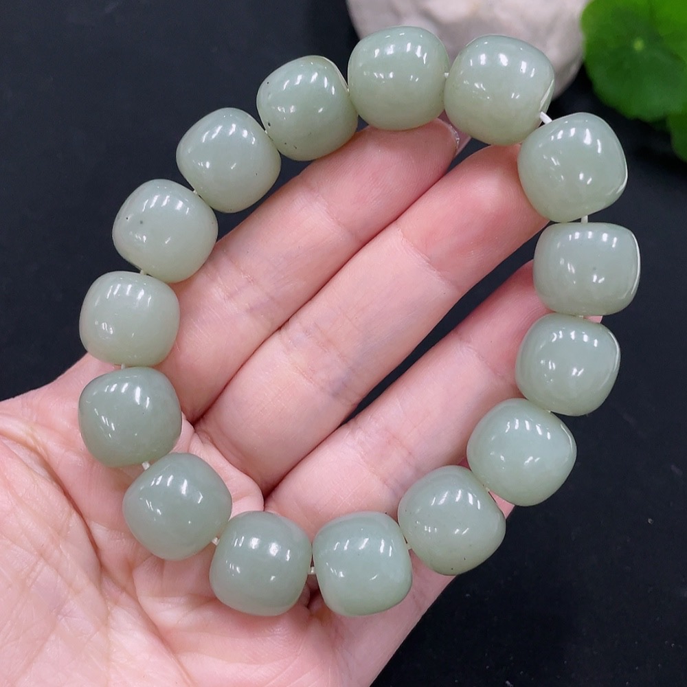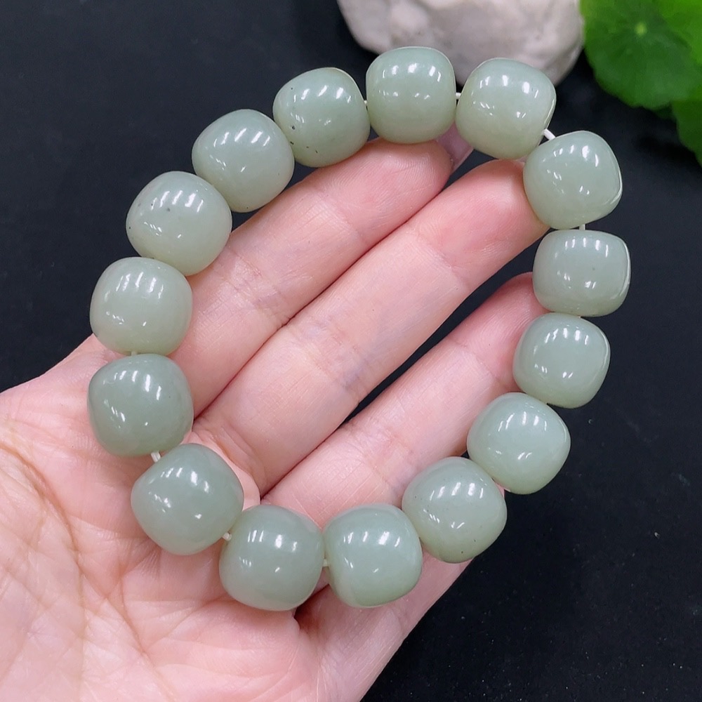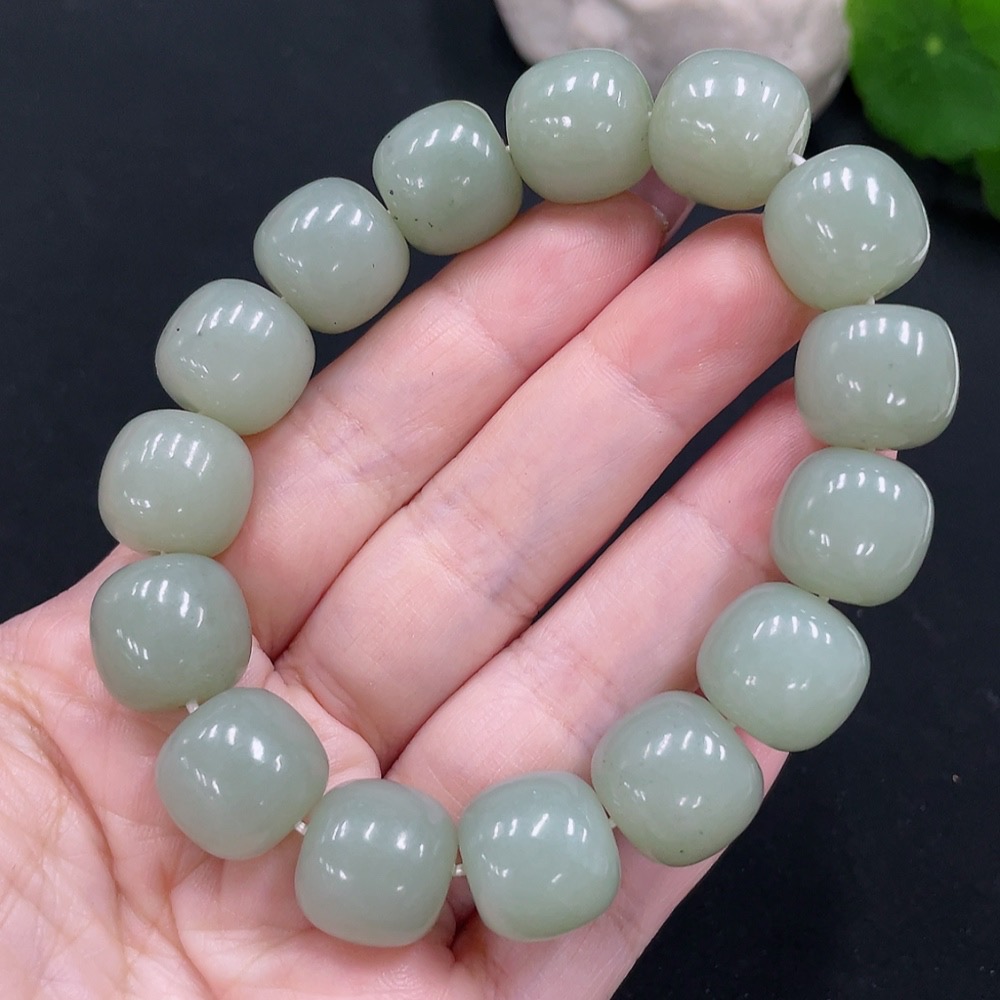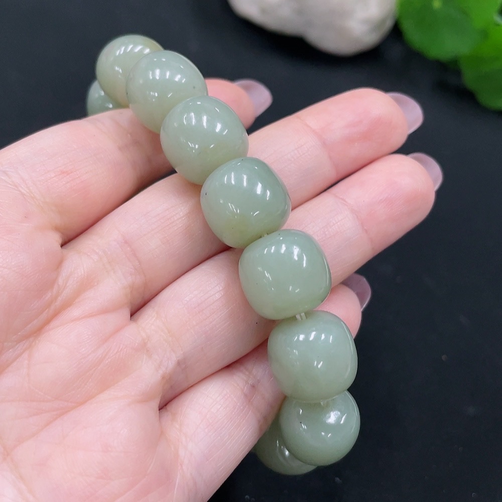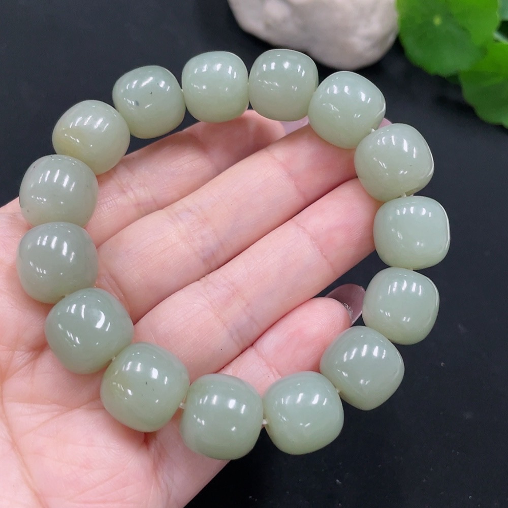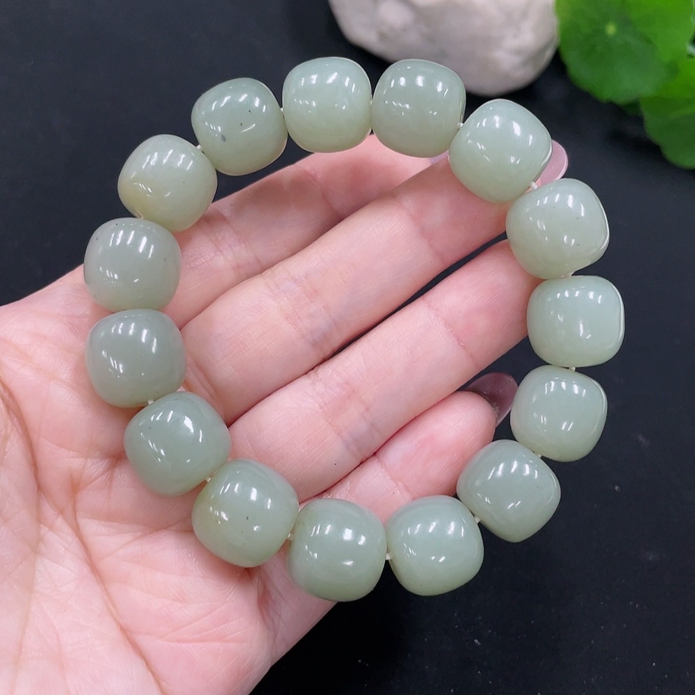 Hetian Jade Bracelet, Total Weight Approx. 68.25g, Bead Size Approx. 14.4mm