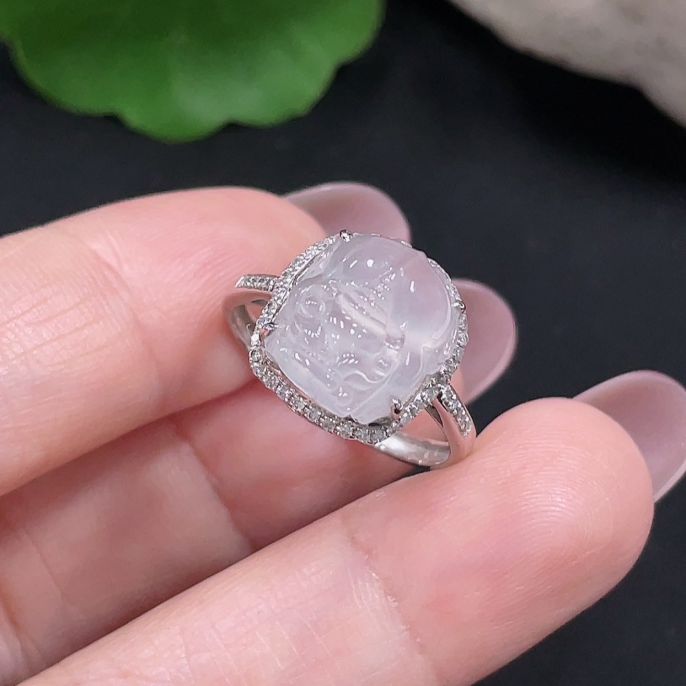 Jadeite Inlaid Ring Size 15 18K Gold Total Weight Approx. 3g (With Diamond Accents)