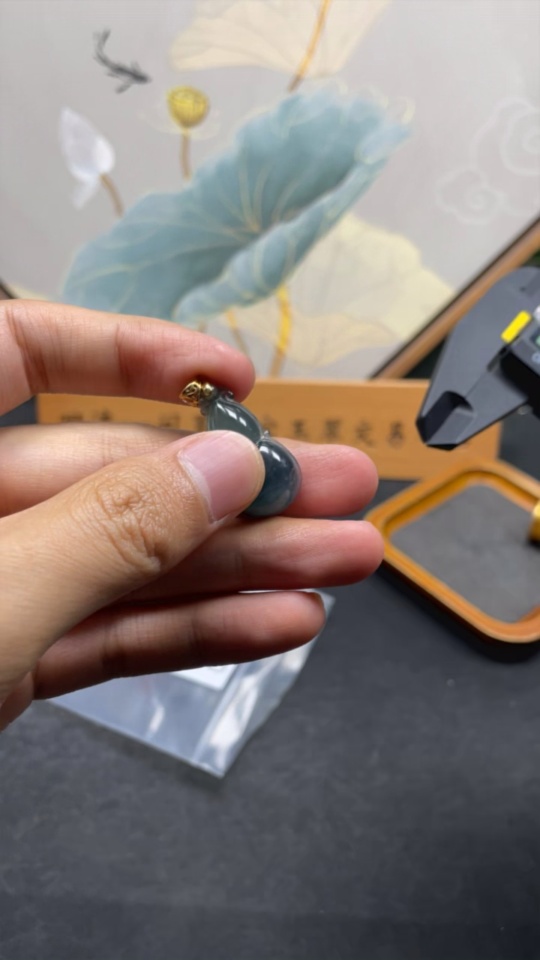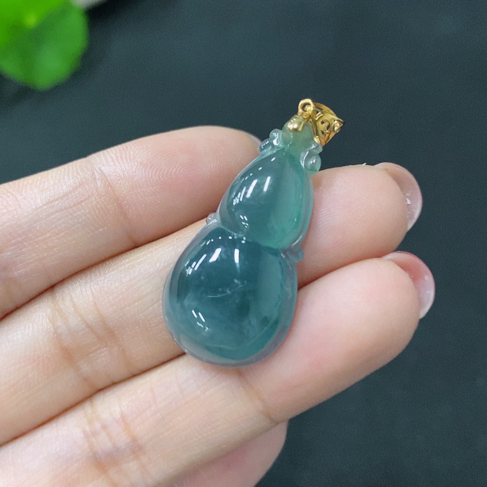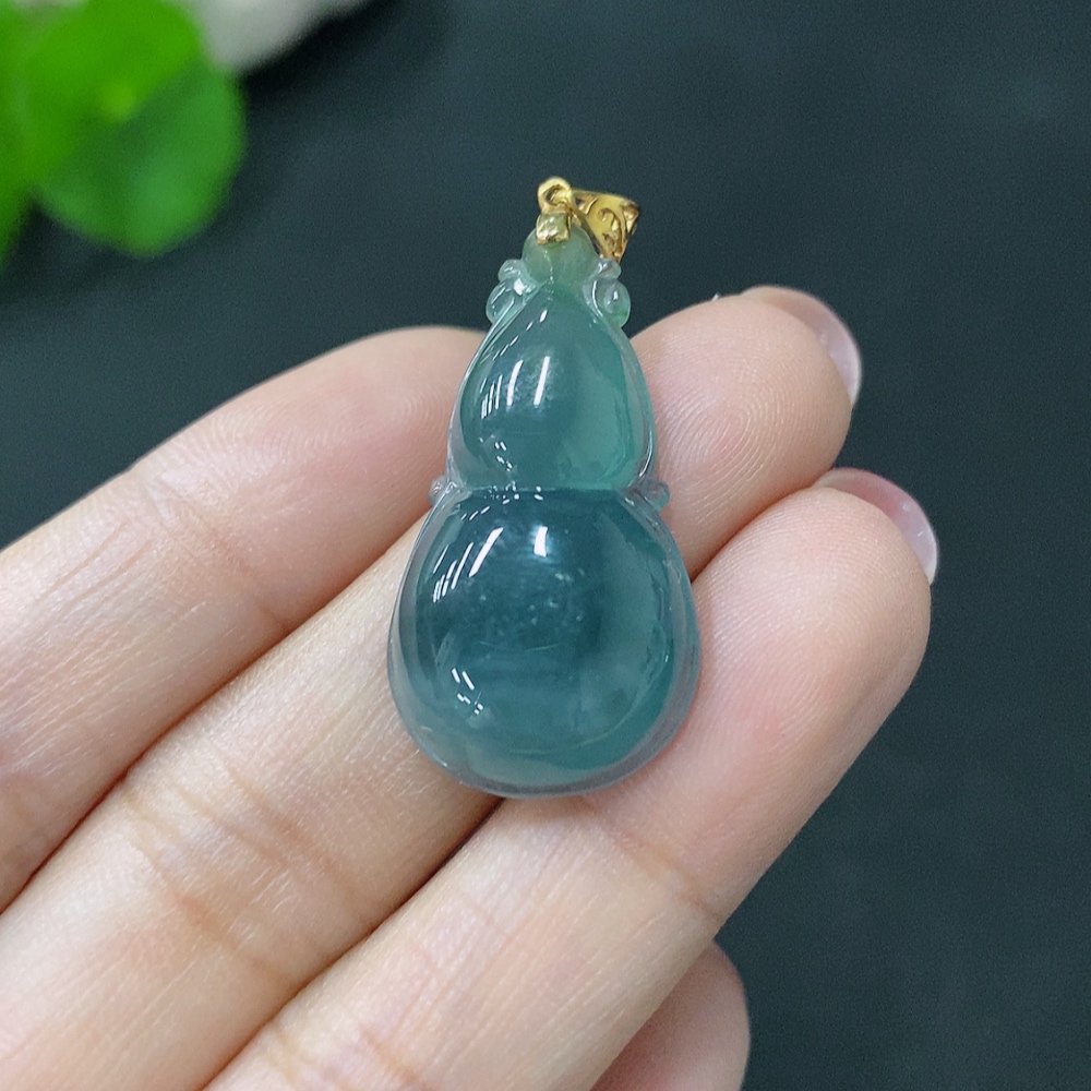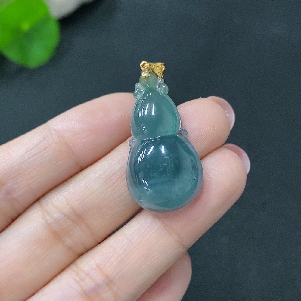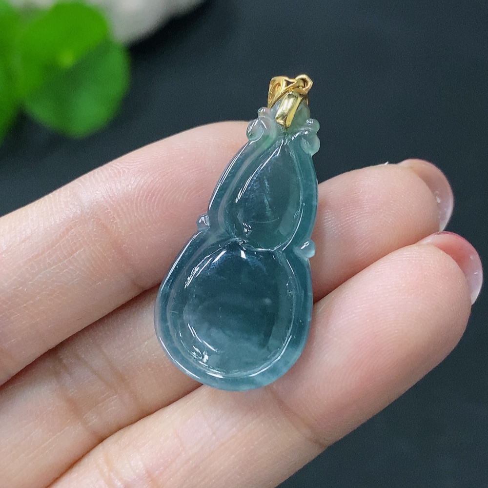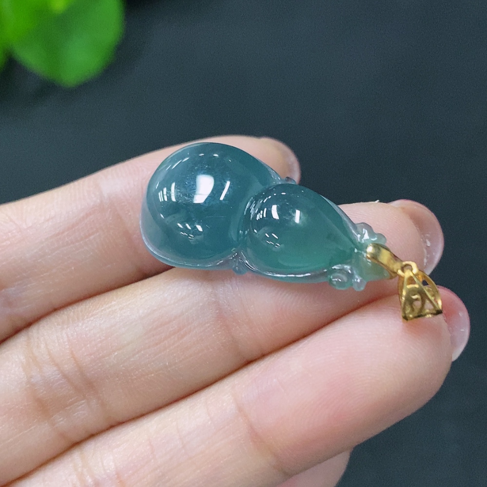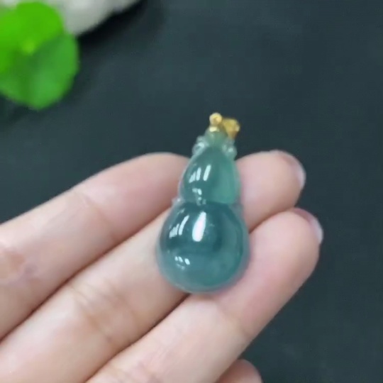 Jadeite Gourd Pendant with 18K Gold Clasp, Total Weight Approx. 4.5g