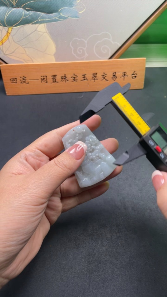 Jadeitelandscape pendant with a total product weight of approximately 31.64 grams