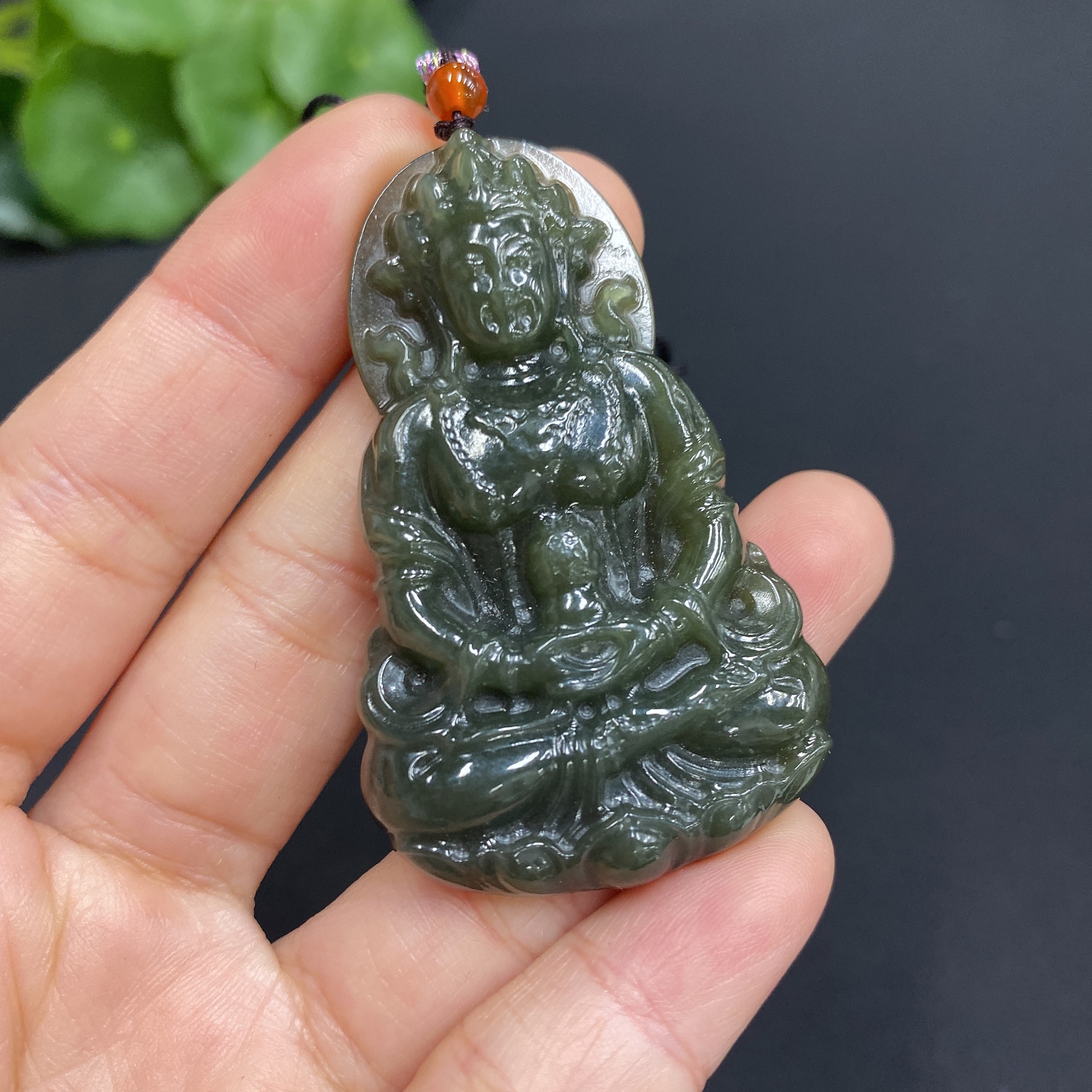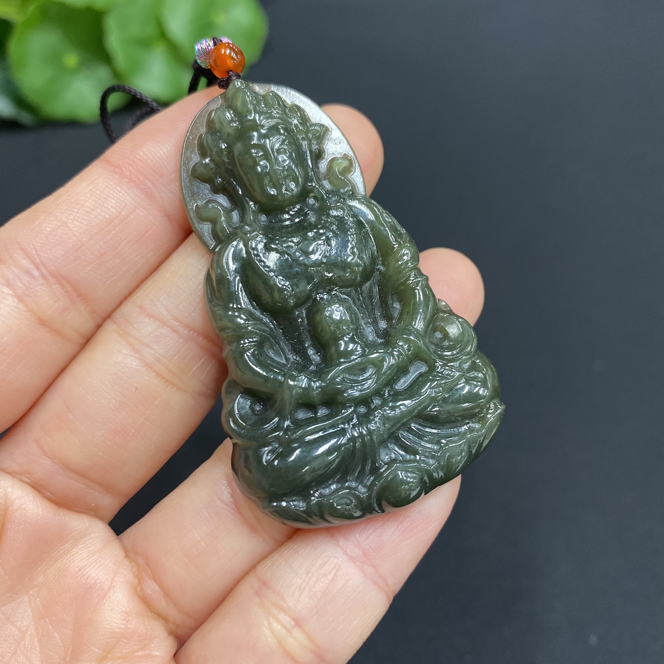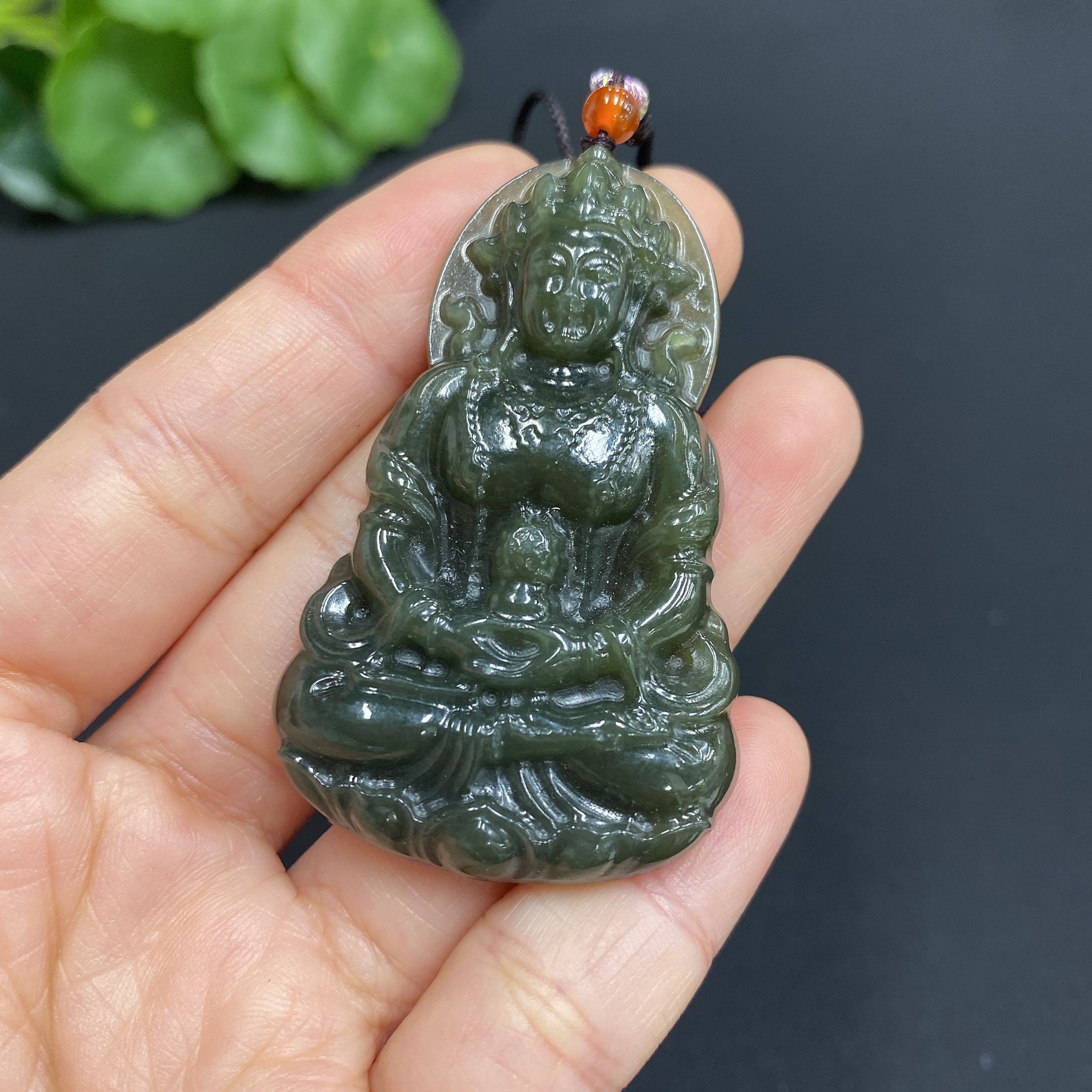 Hetian Jade Pendant, Tara, Total Weight (including rope) Approx. 19.6g