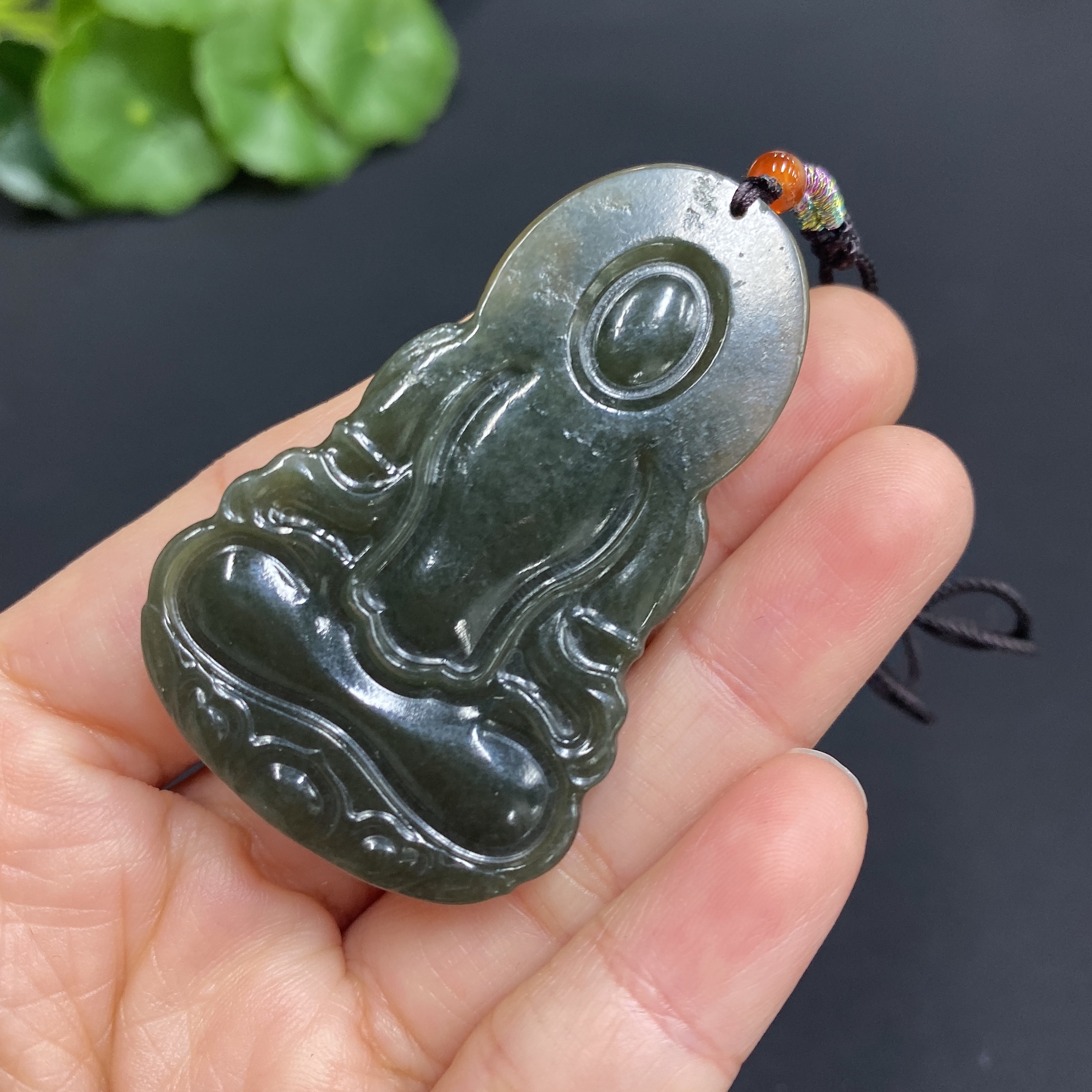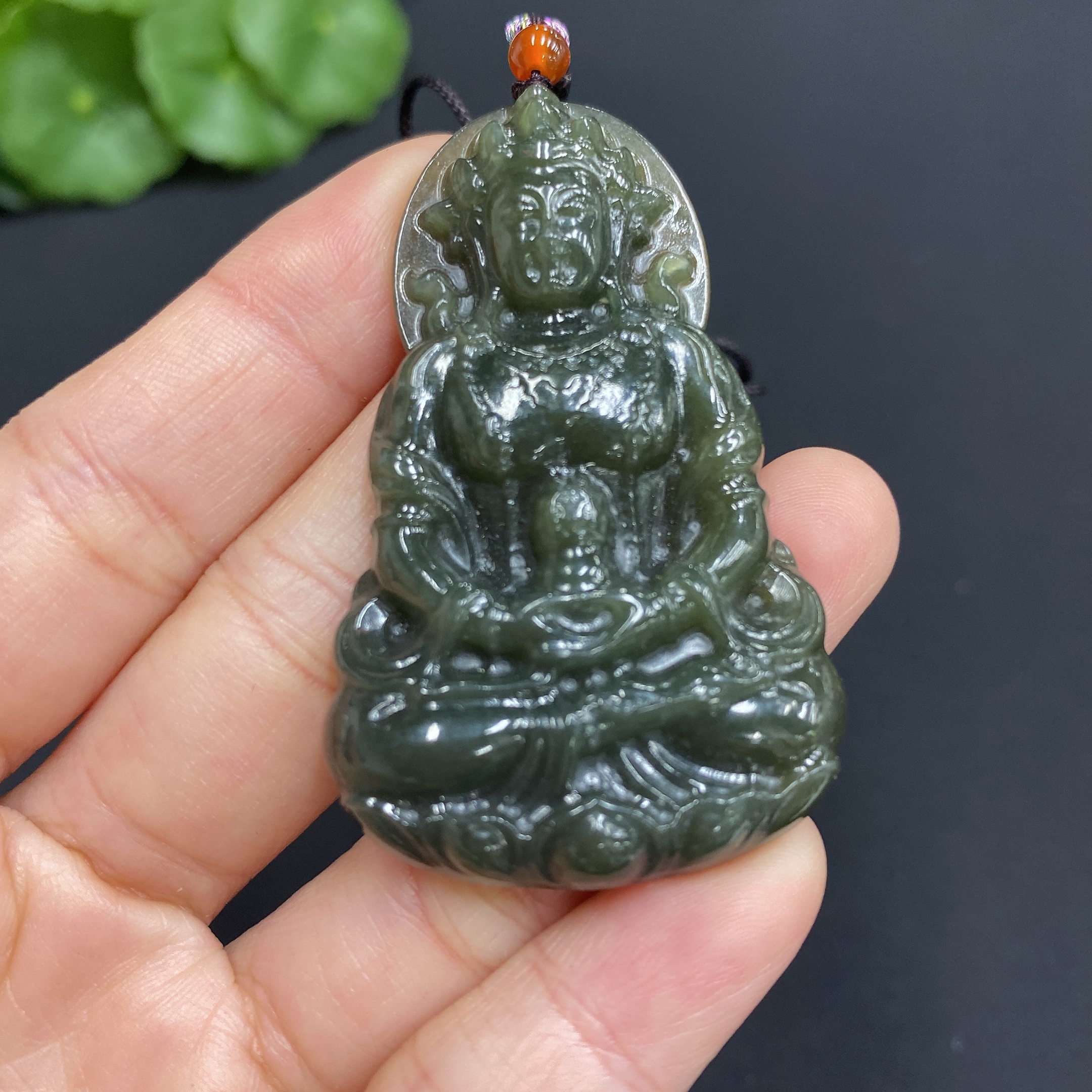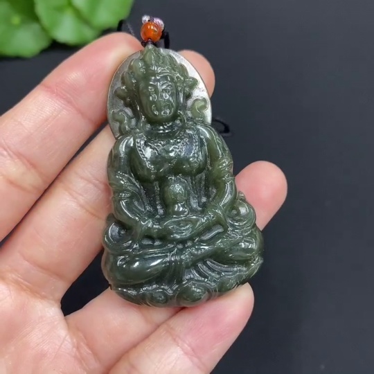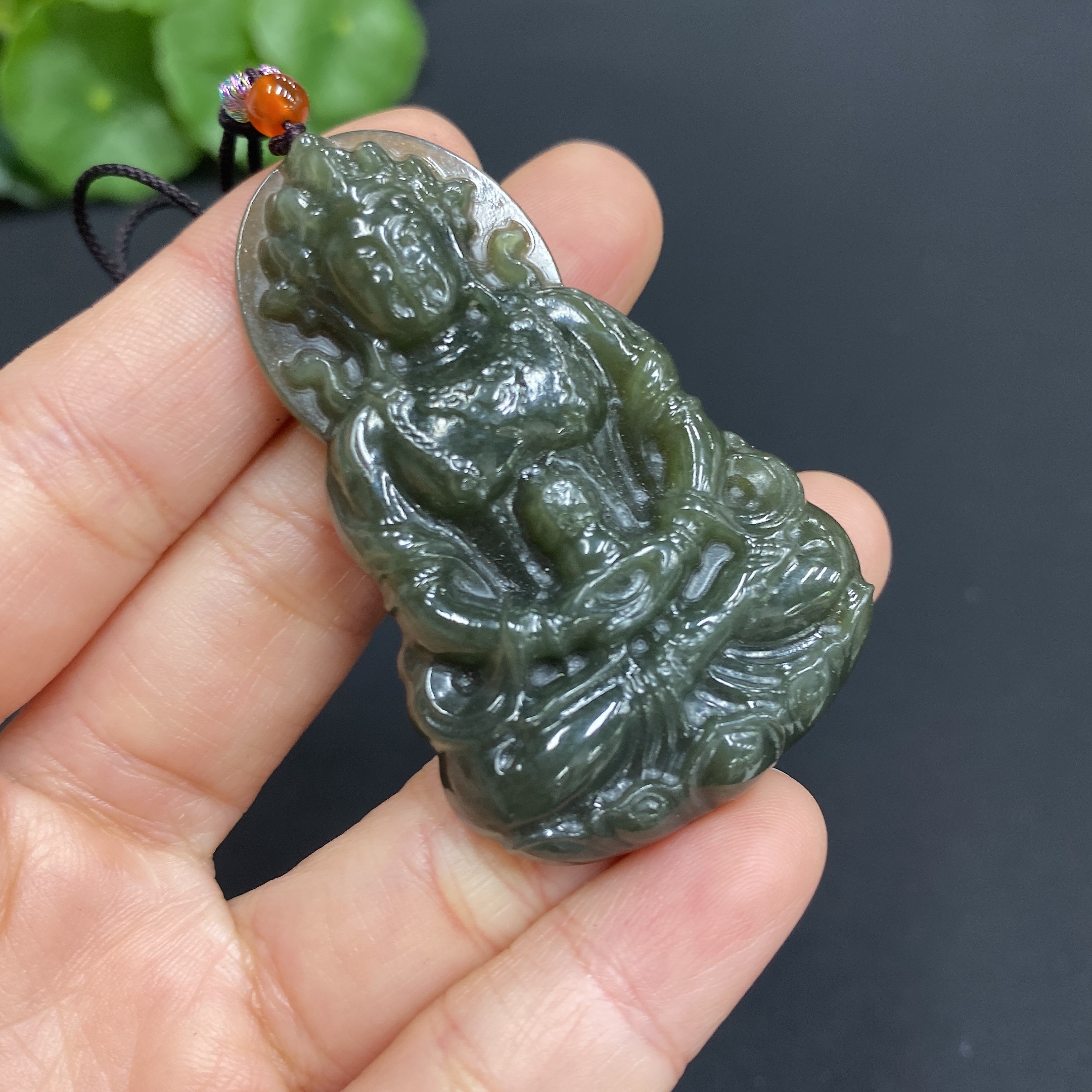 Hetian Jade Pendant, Tara, Total Weight (including rope) Approx. 19.6g