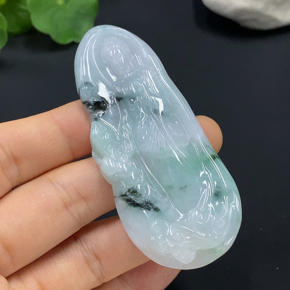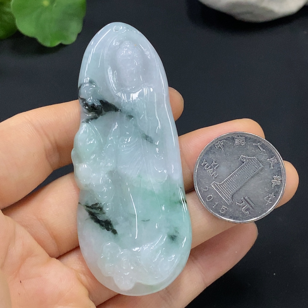 Jadeite Pendant (Total Weight: Approx. 24.26g, Guanyin)