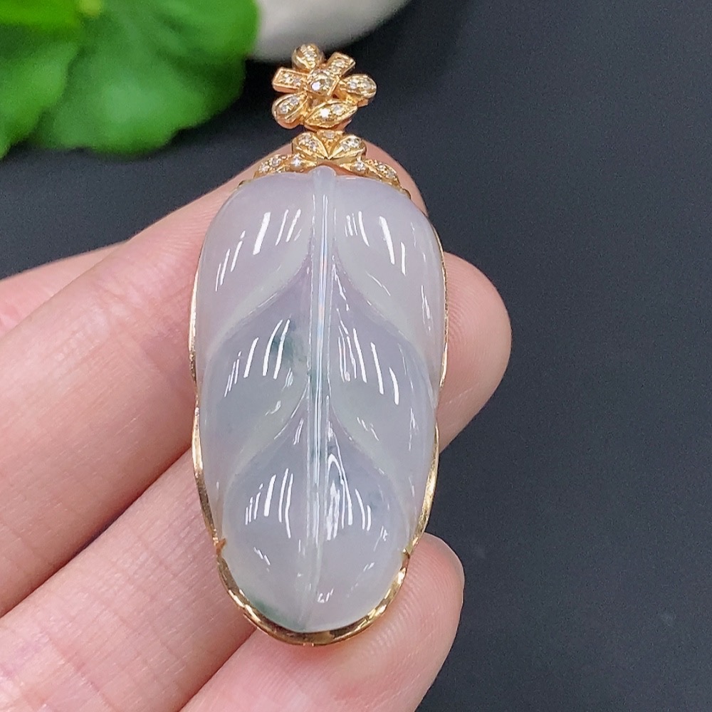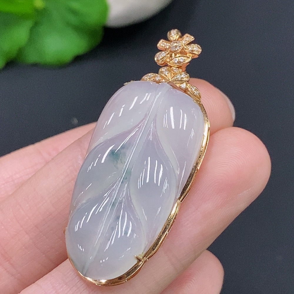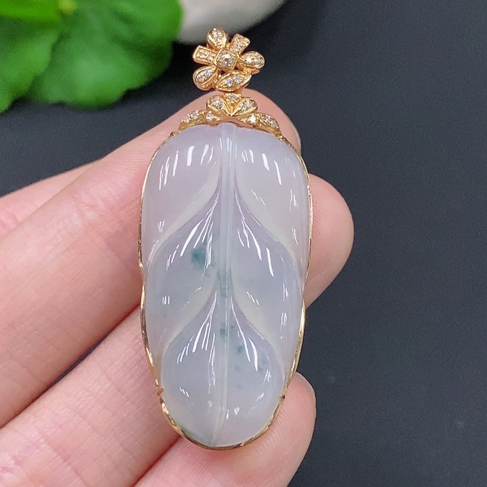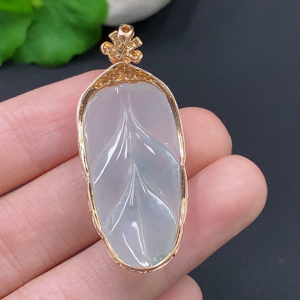 Jadeite Leaf Pendant 18k Gold Total Weight Approx. 6.7g Set with Diamonds