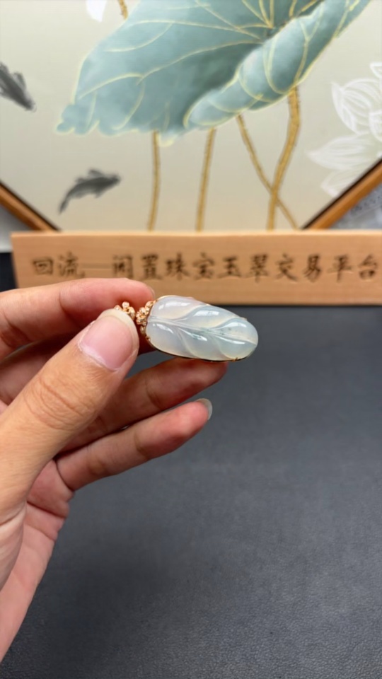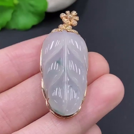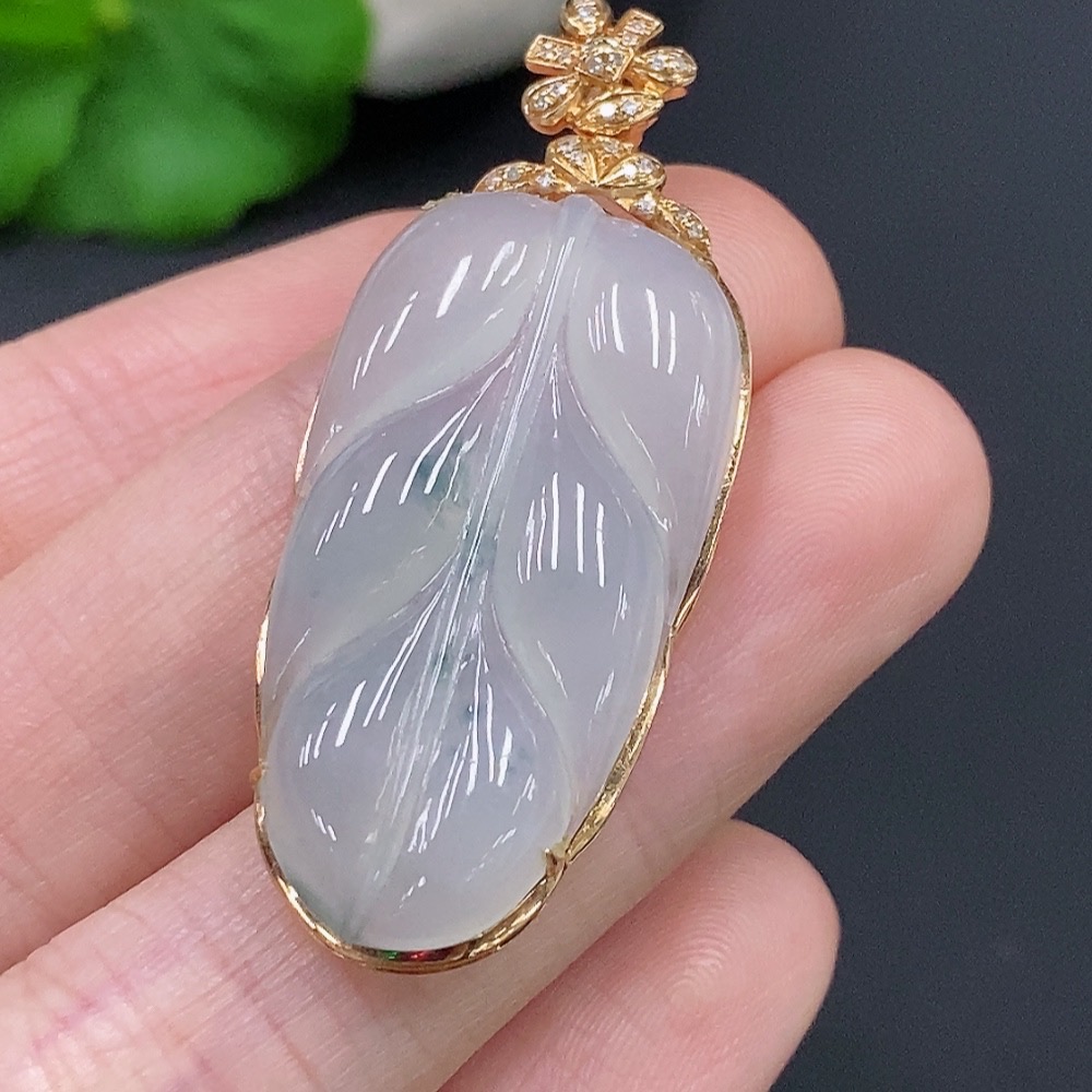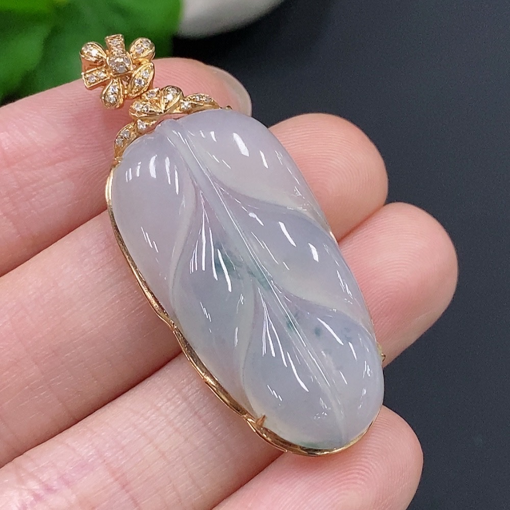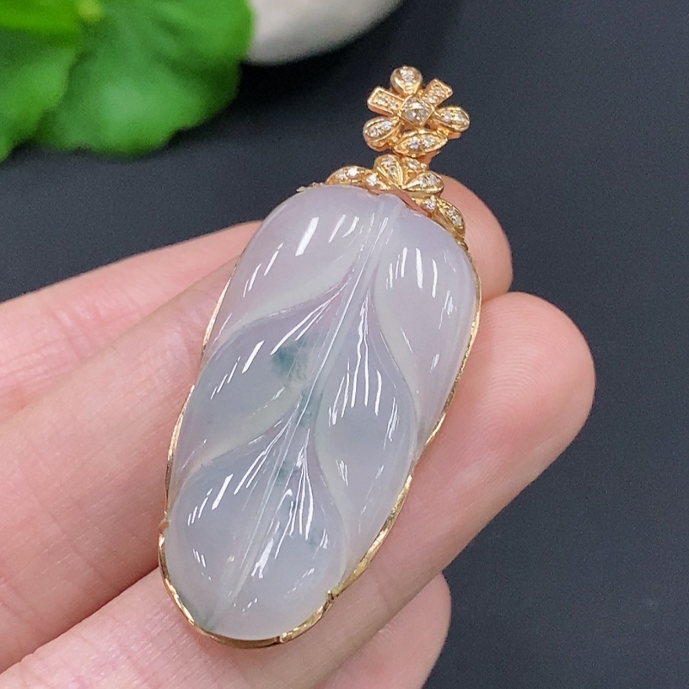 Jadeite Leaf Pendant 18k Gold Total Weight Approx. 6.7g Set with Diamonds
