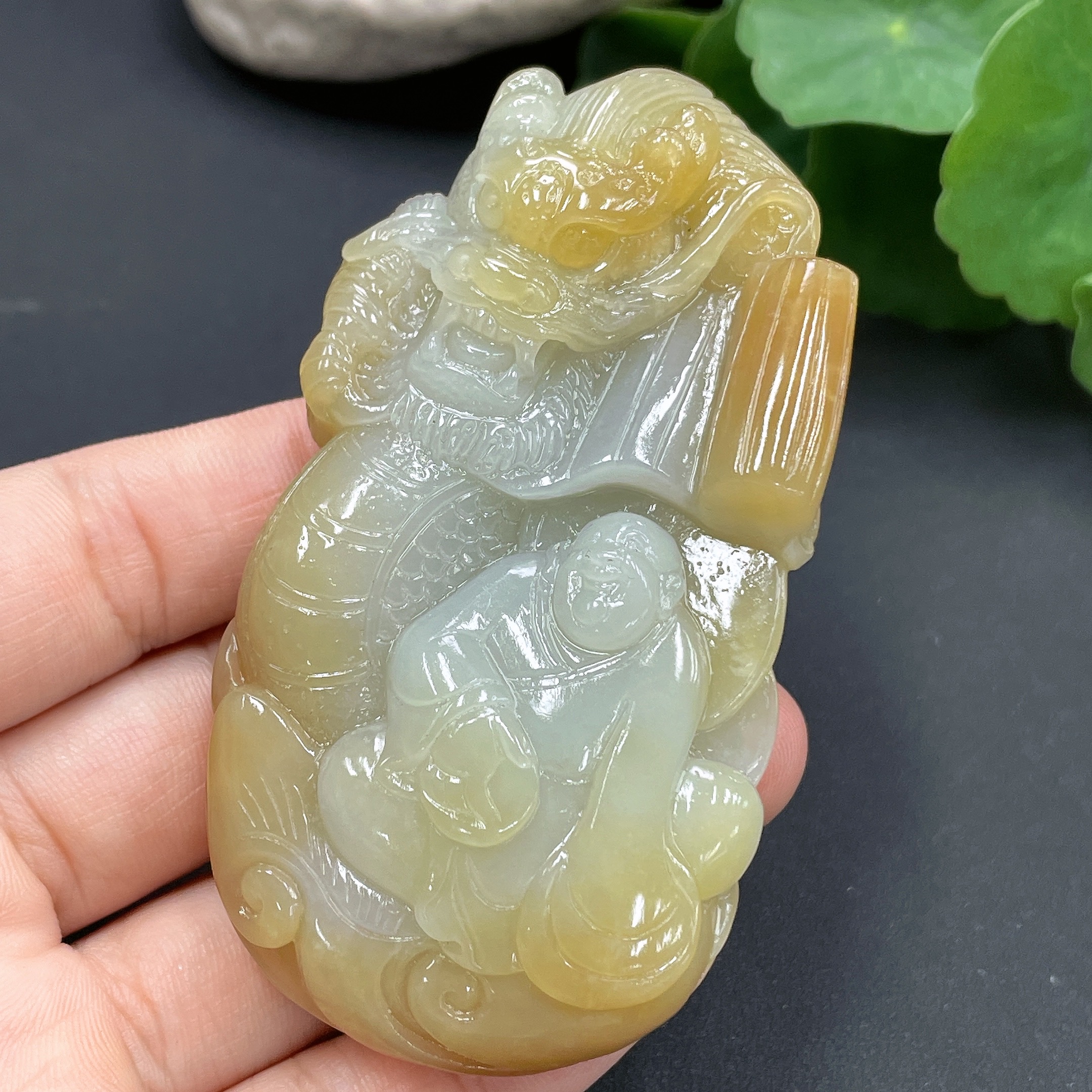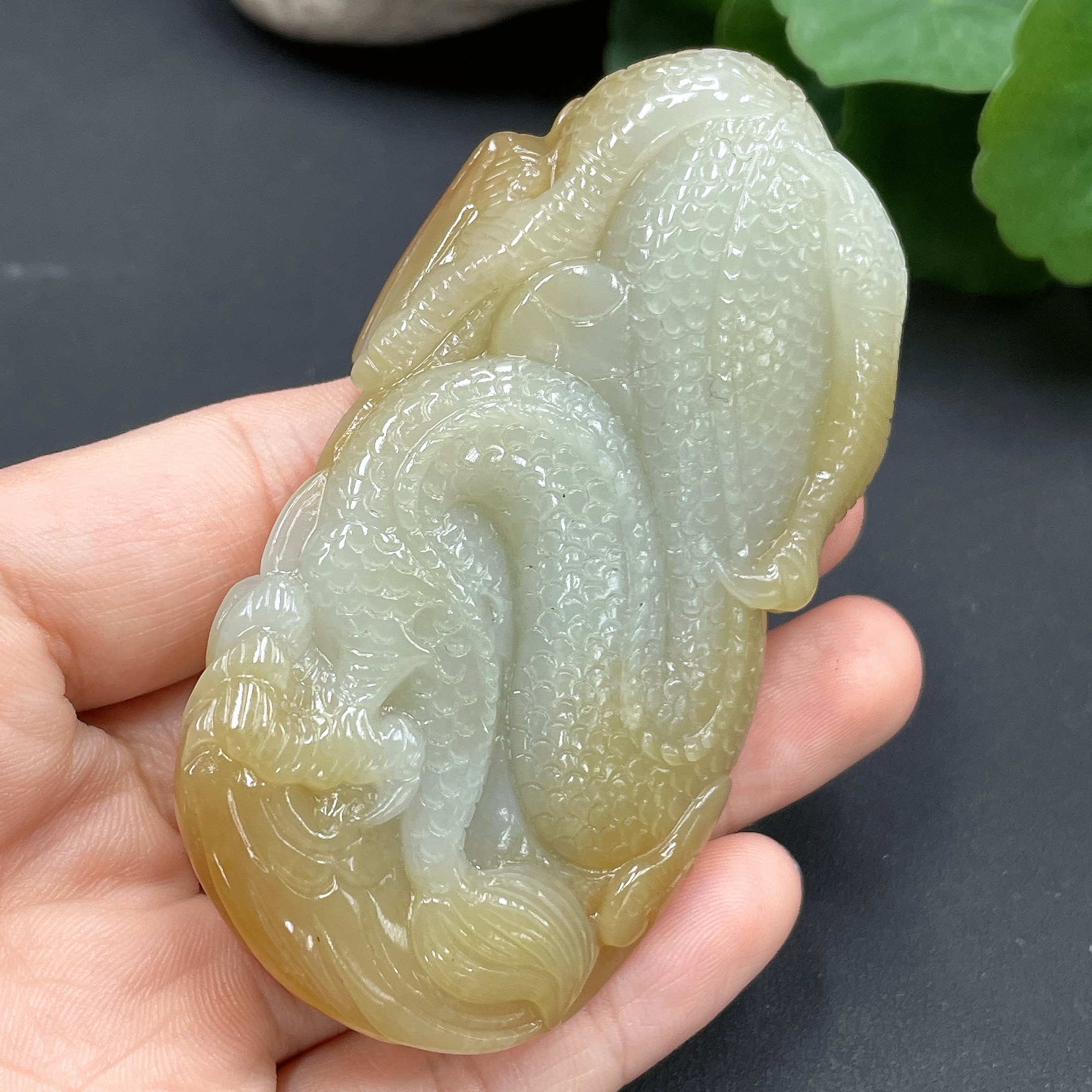 Hetian Jade Handheld Carving Dragon Total Weight About 89g