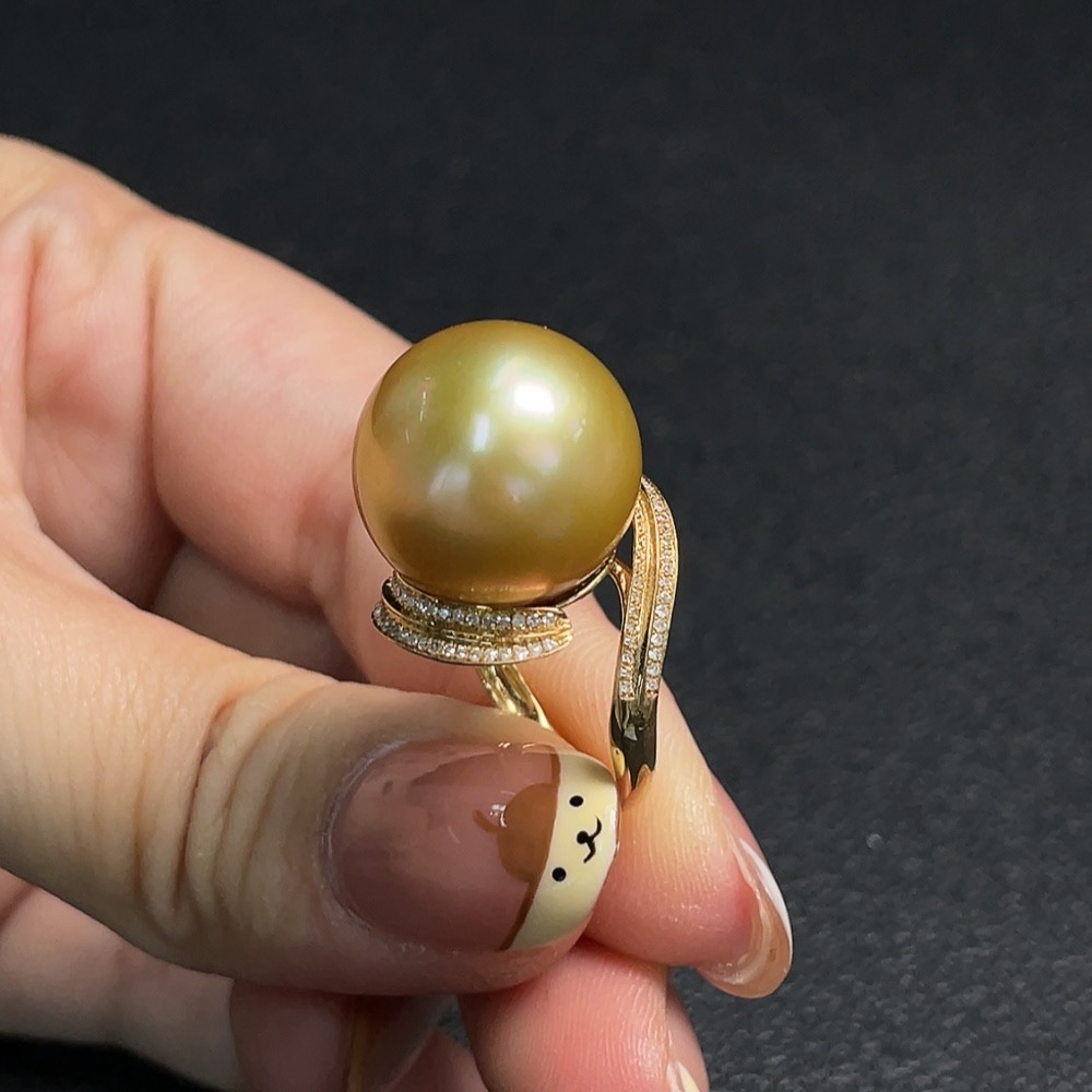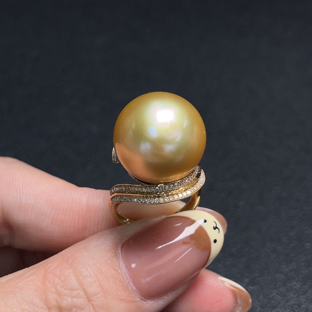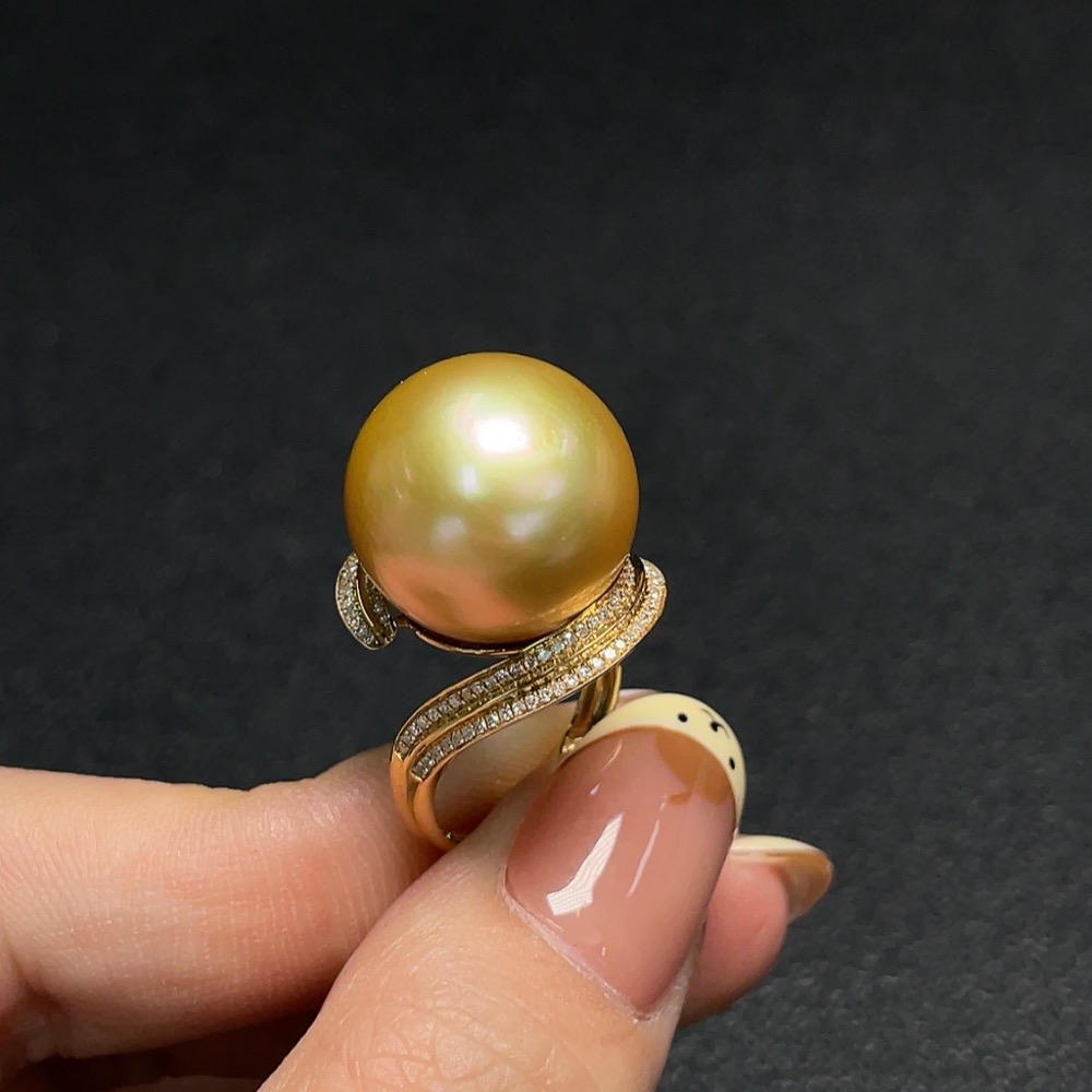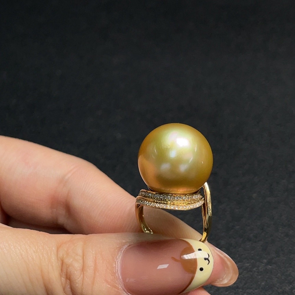 Seawater Pearl Ring 18k Gold Color Origin Undetermined Total Weight Approx. 9g Stone 15.6mm Size 8