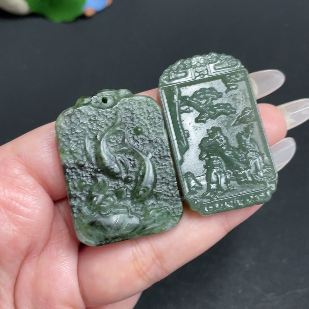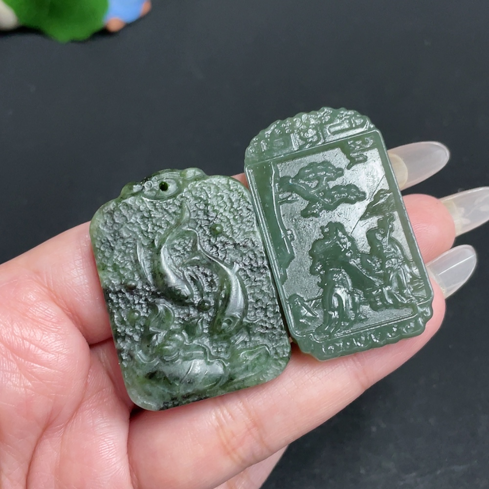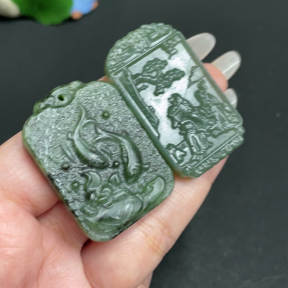 Hetian Jade Pendant - Friends Gathering Under Pine Trees - Abundance Year After Year