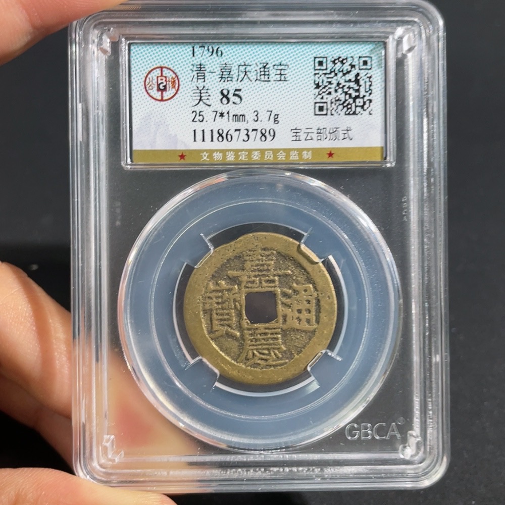 Qing Dynasty Jiaqing Tongbao Bao Yun Partial Inscription GBCA Graded 85