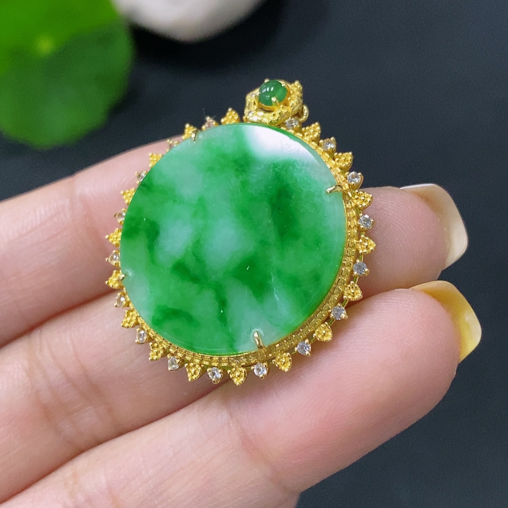 Jadeite Plain Pendant Necklace 18k Total Weight Approx. 3.65g