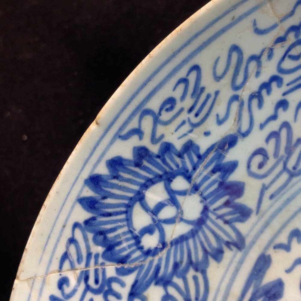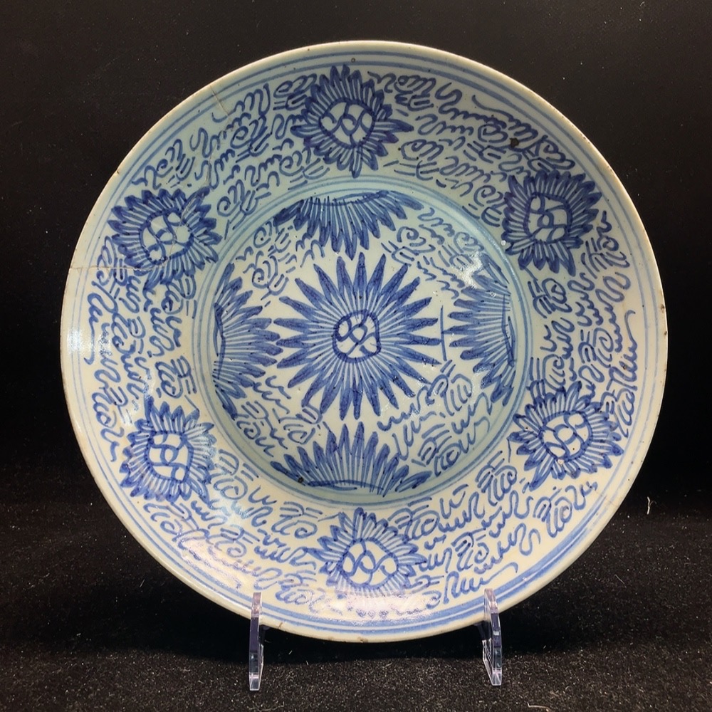 Ceramic, Restored, Qing Dynasty Blue and White Plate (size as per physical item)