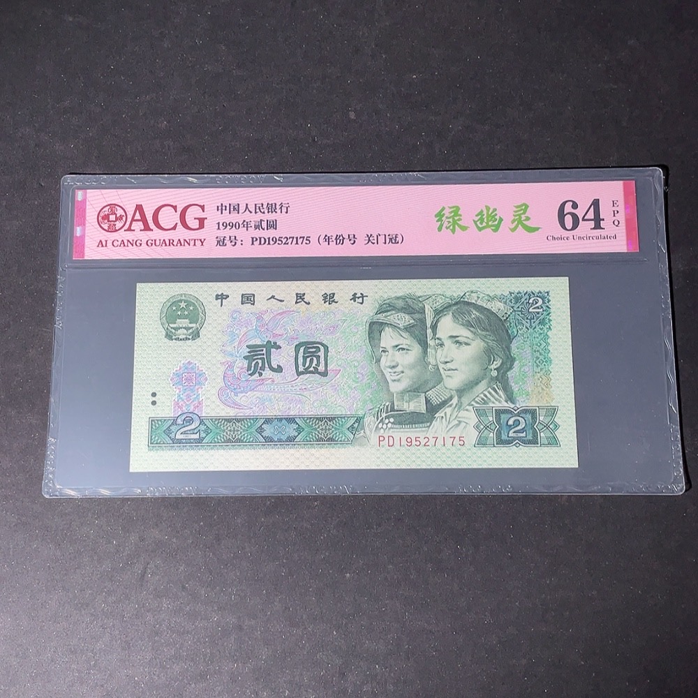 Graded Banknote Fourth Series RMB Green Ghost 2 Yuan with Year Number and Closing Prefix