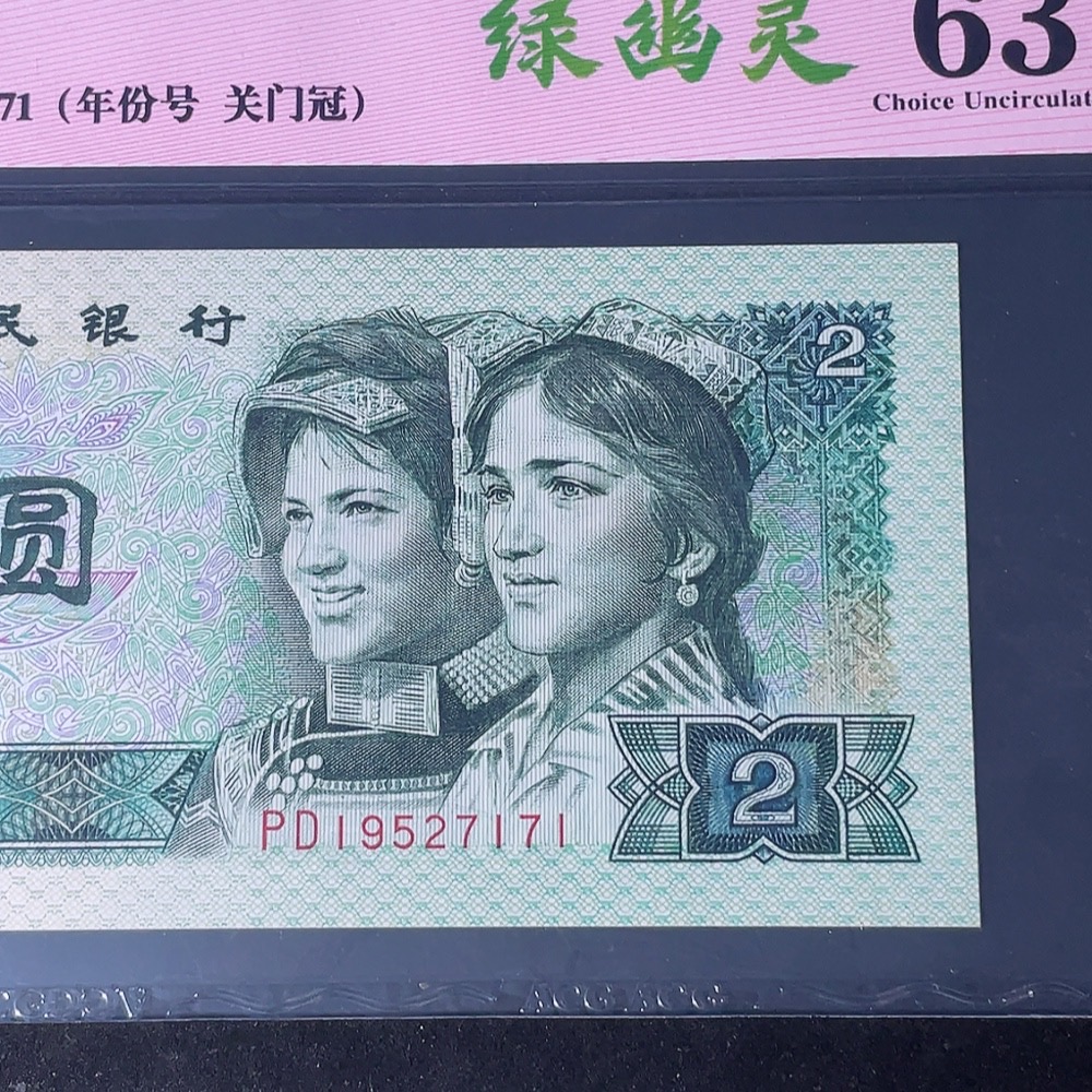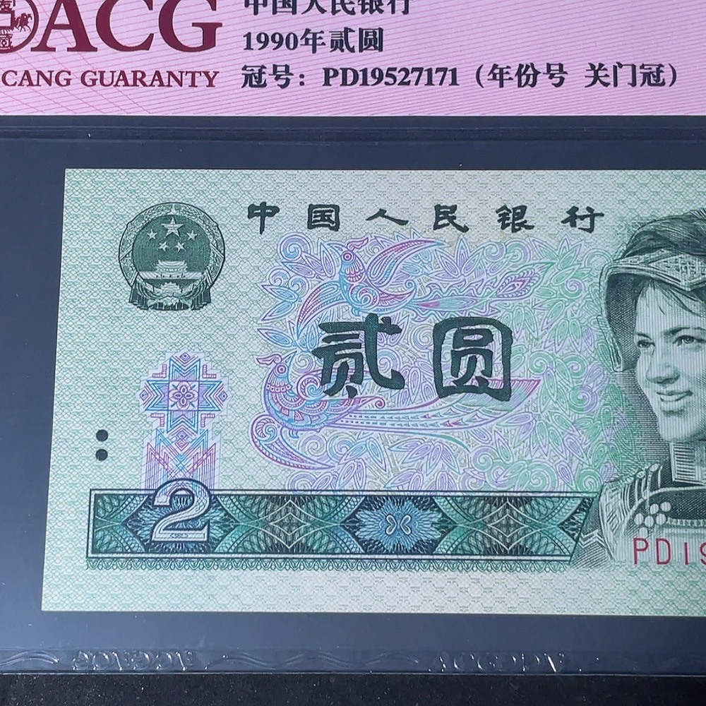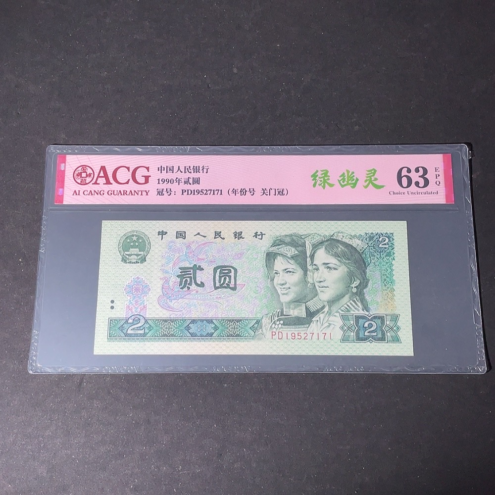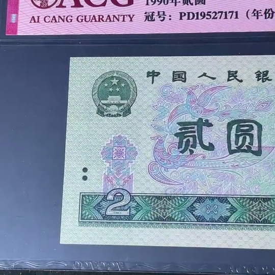 Graded Banknote Fourth Series RMB Green Ghost Two Yuan with Year Number and Closing Prefix