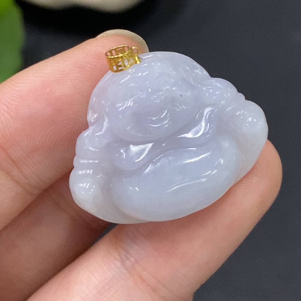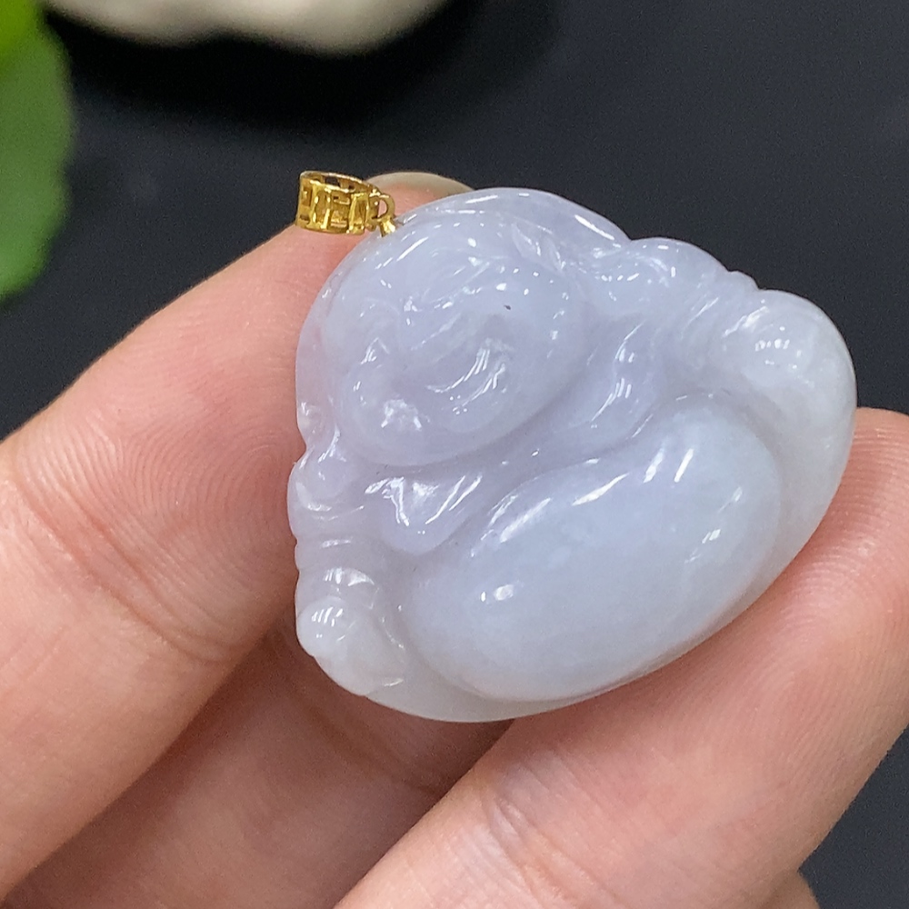 Jadeite Buddha Pendant with 18k Clasp, Total Weight Approx. 5.25g