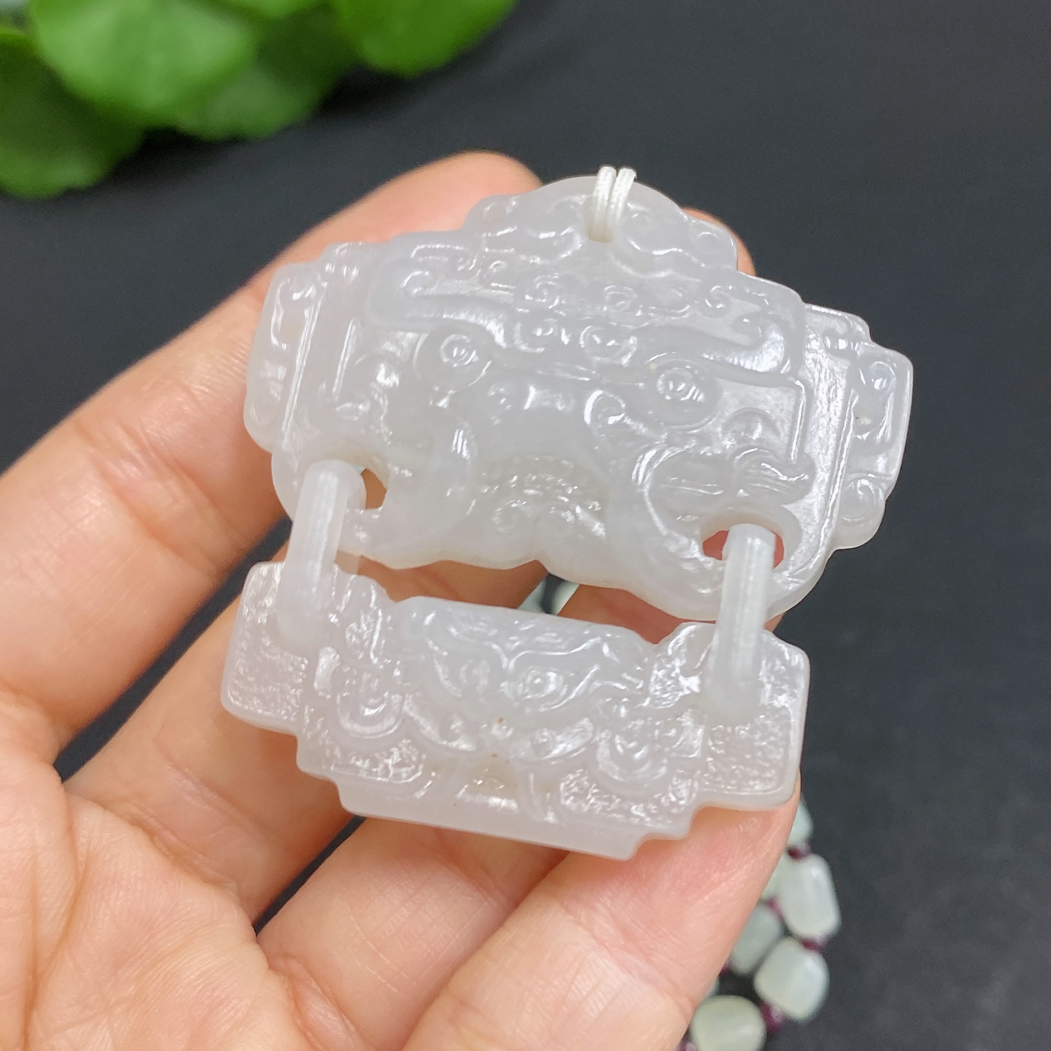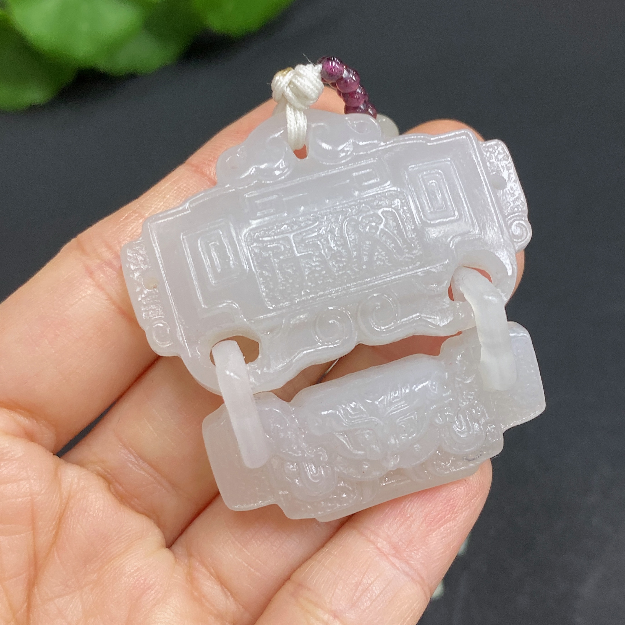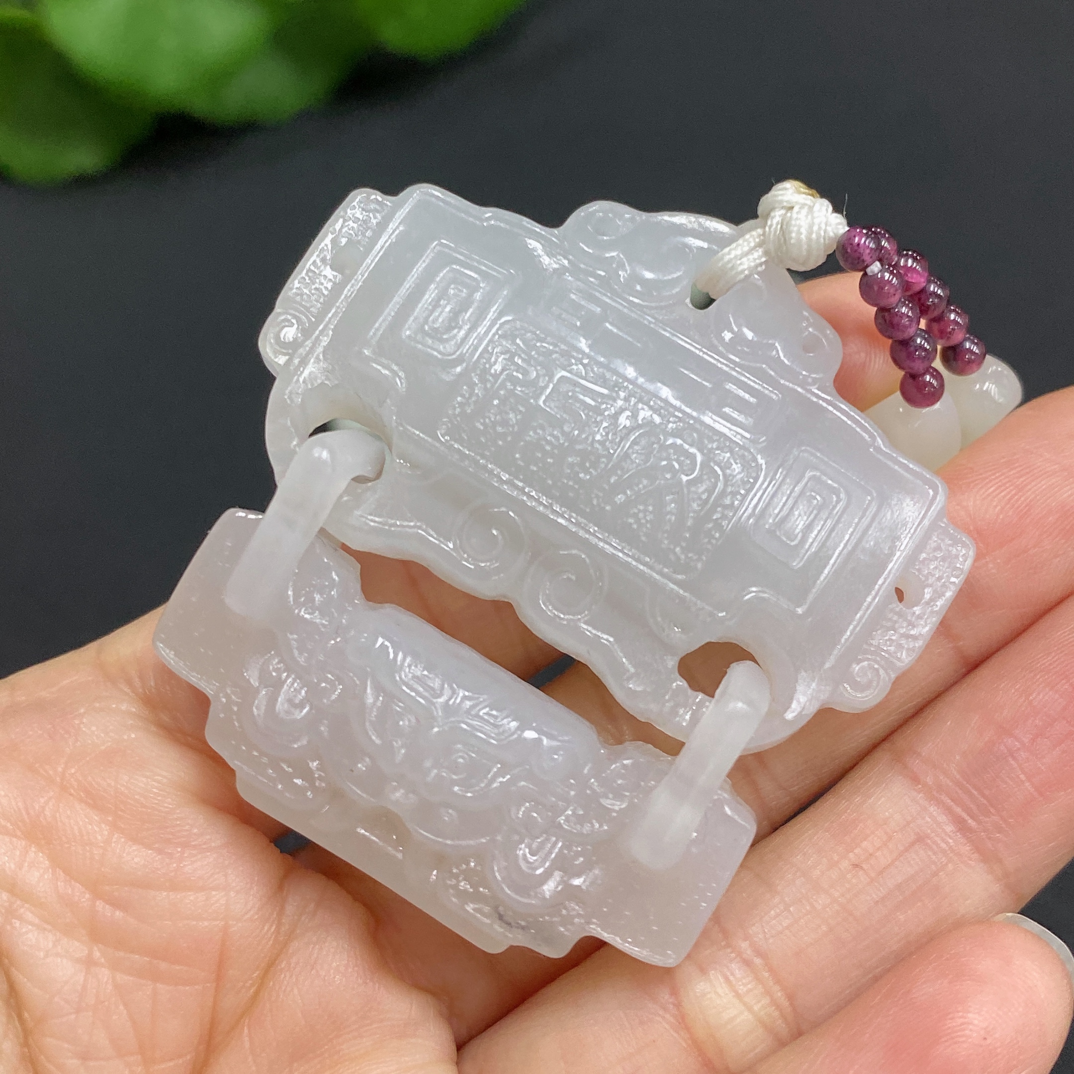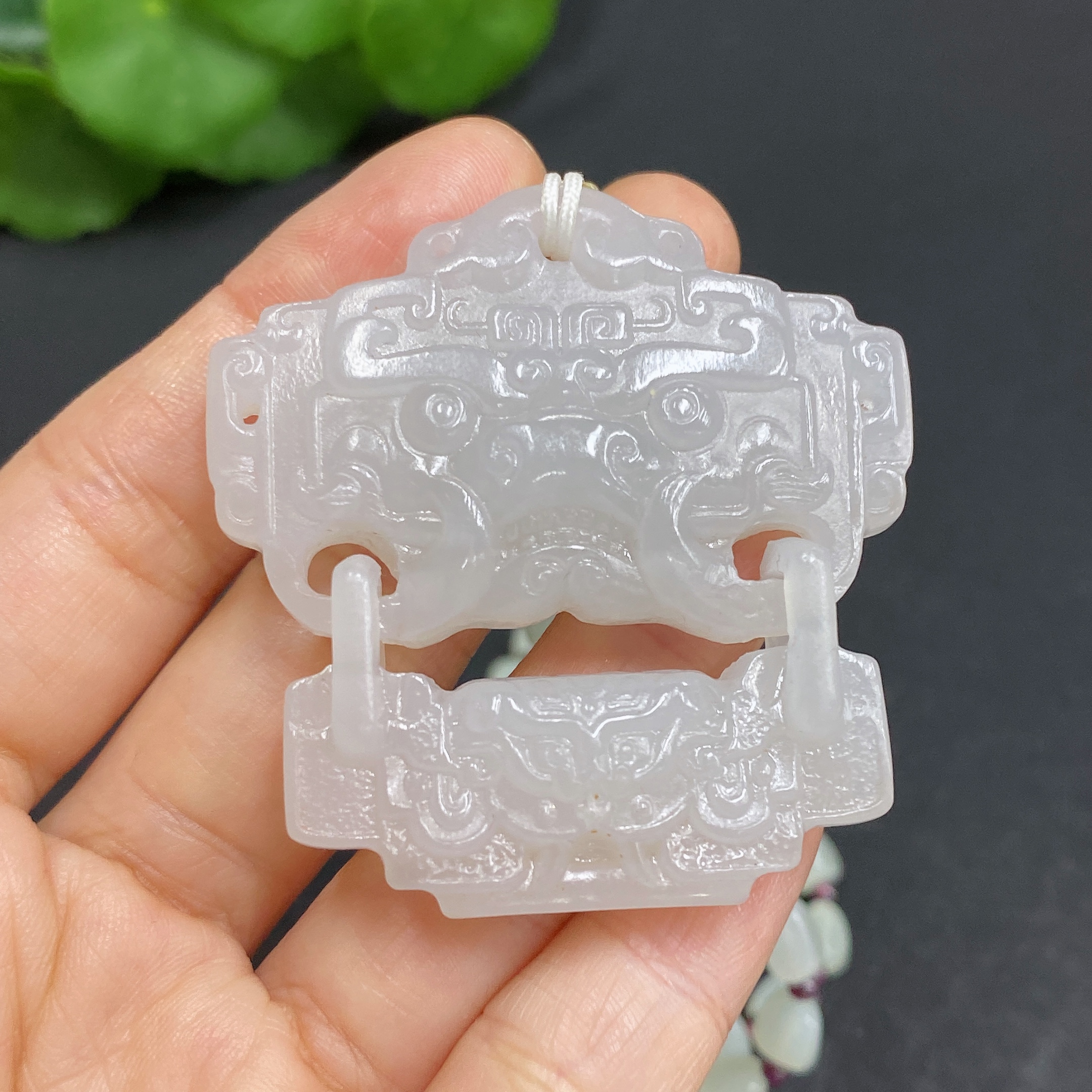 Hetian Jade Pendant, Antique-style Piece, Total Weight Approx. (including chain, non-Hetian jade accessories) 60.1g