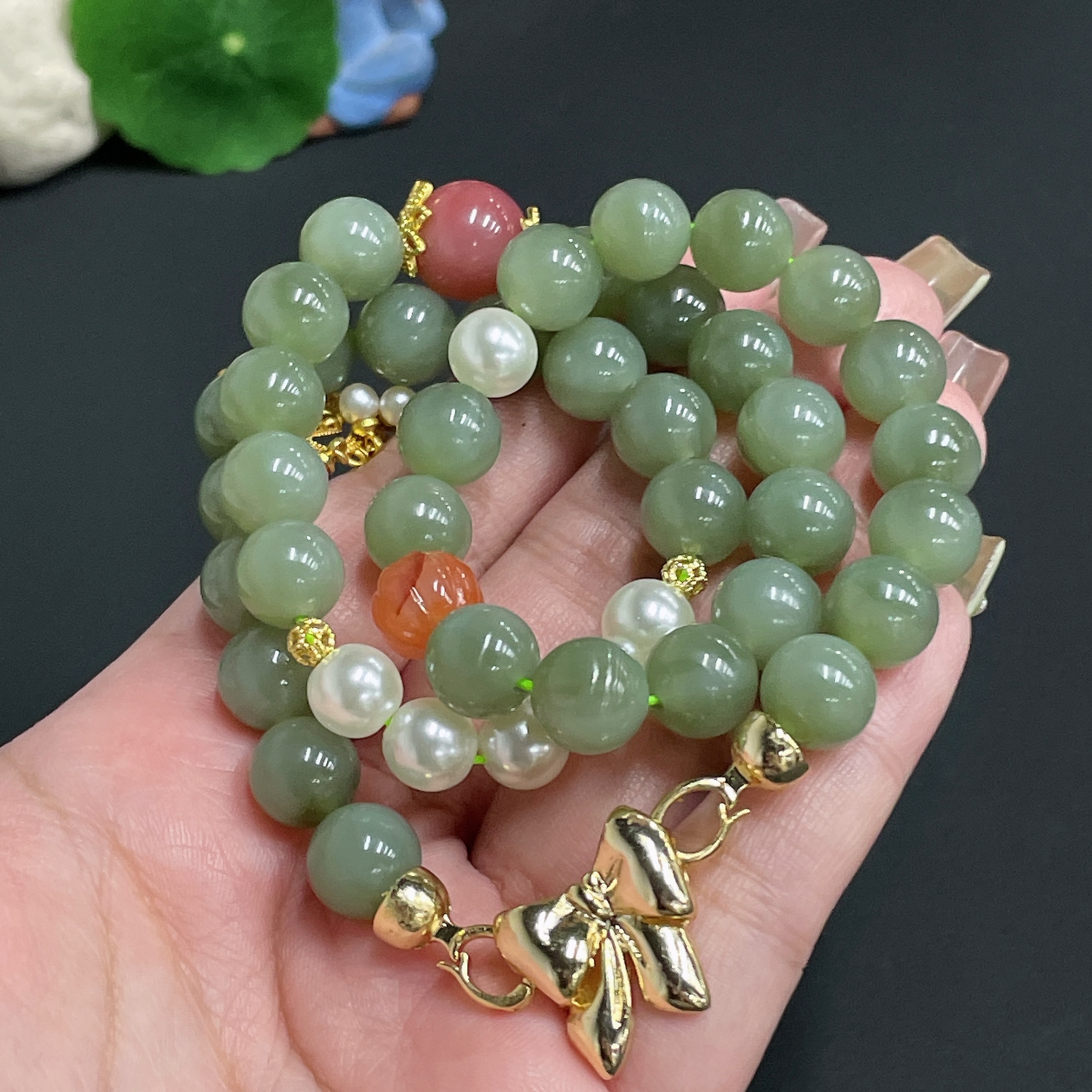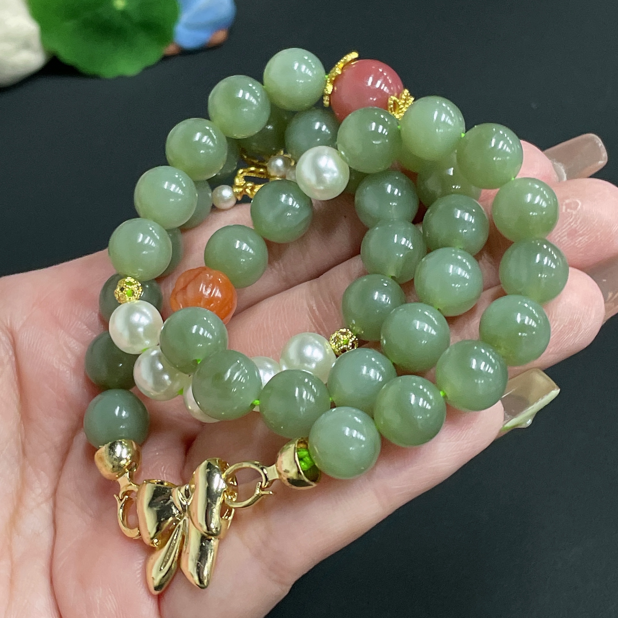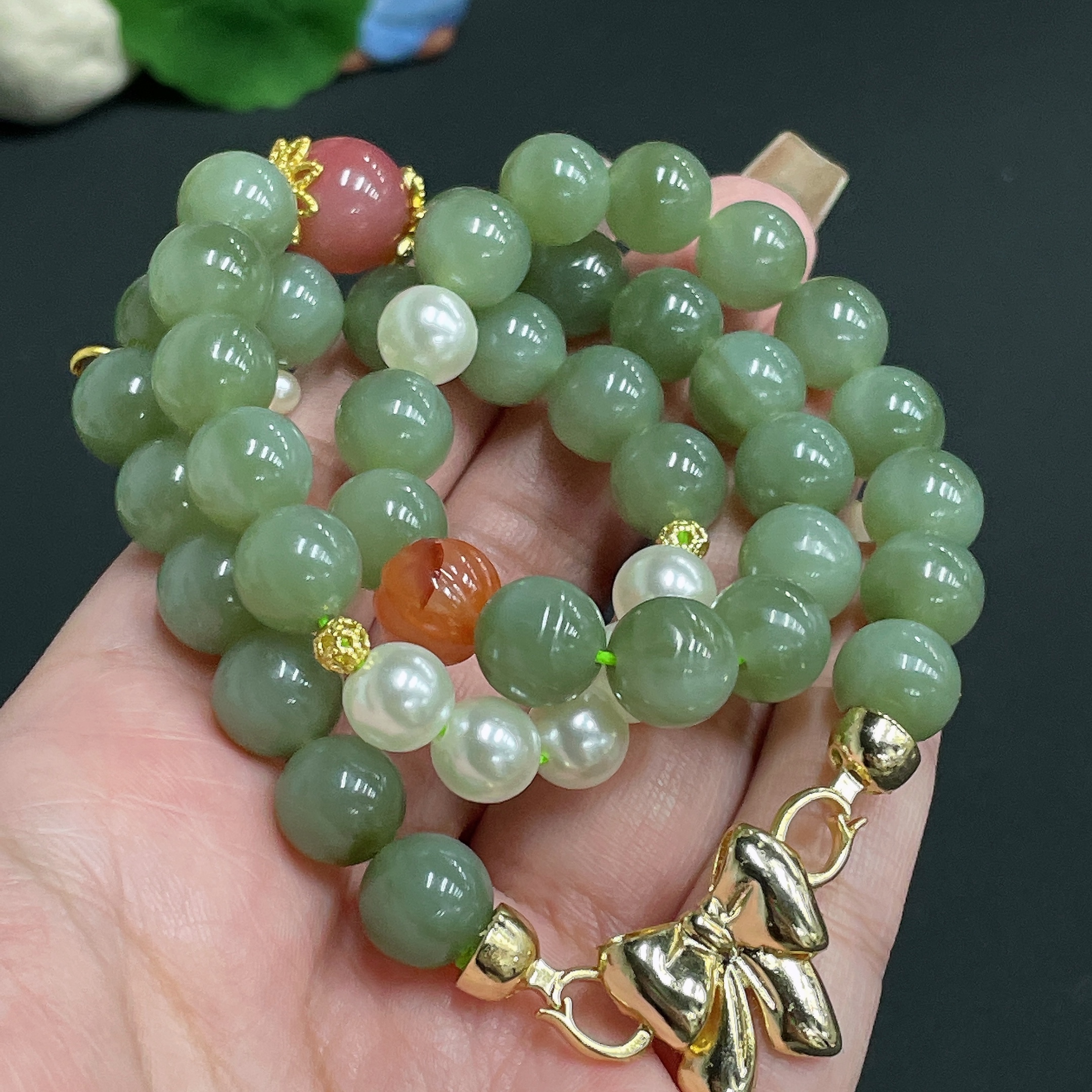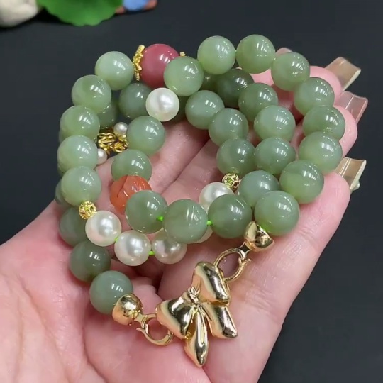 Hetian Jade Bead Necklace Diameter Approx. 9.8 Total Weight Approx. 67.6g Non-Matching Beads (Non-Gold Inlaid)