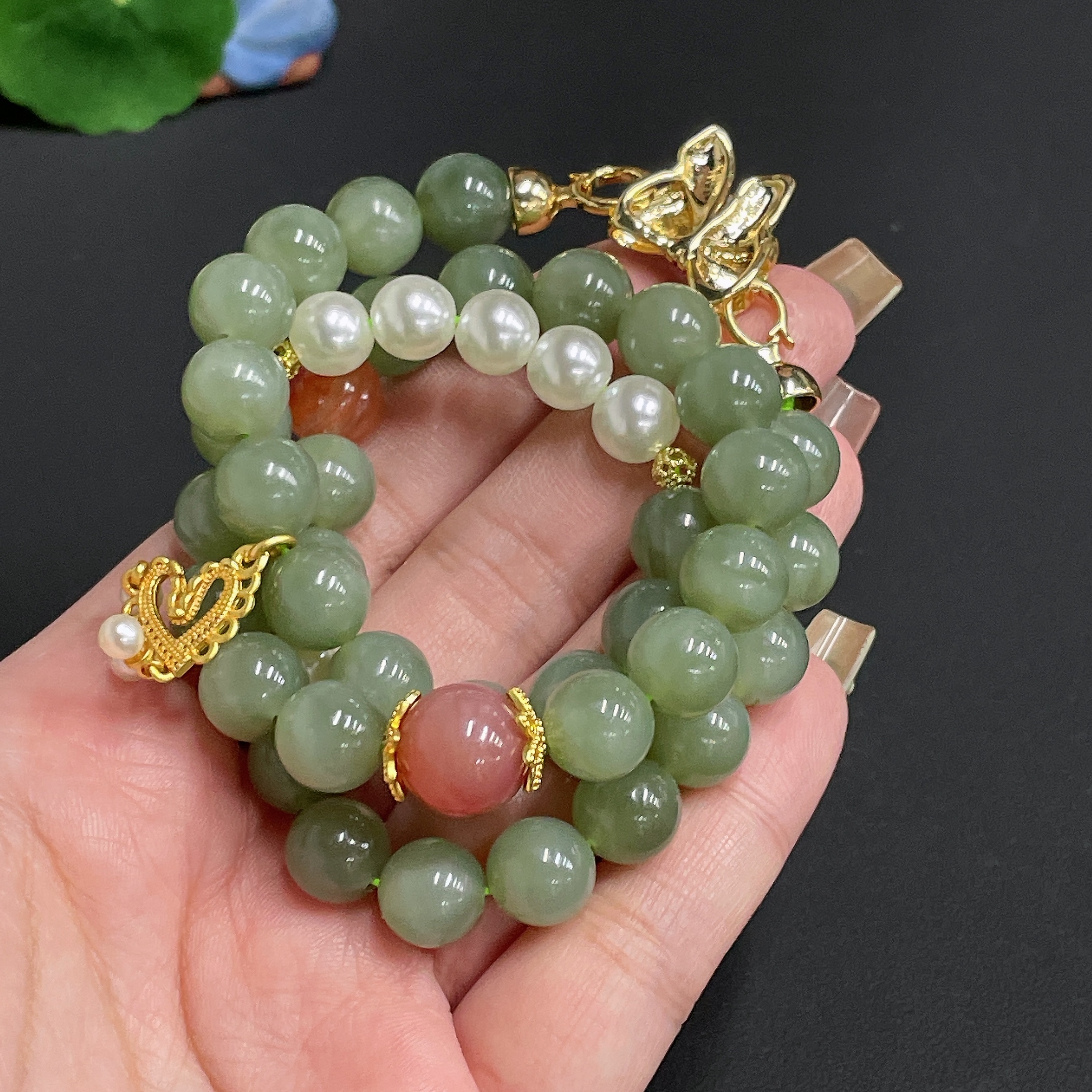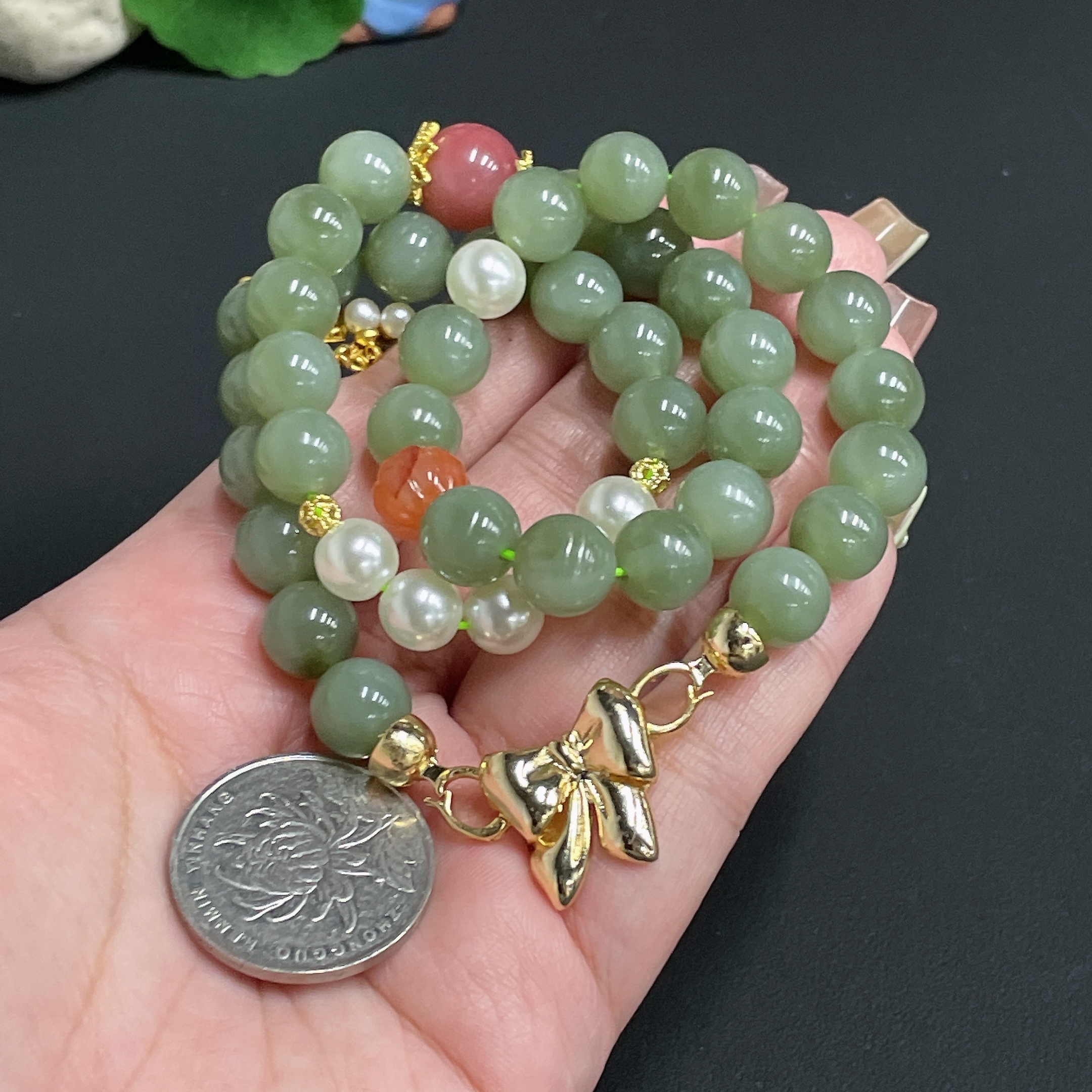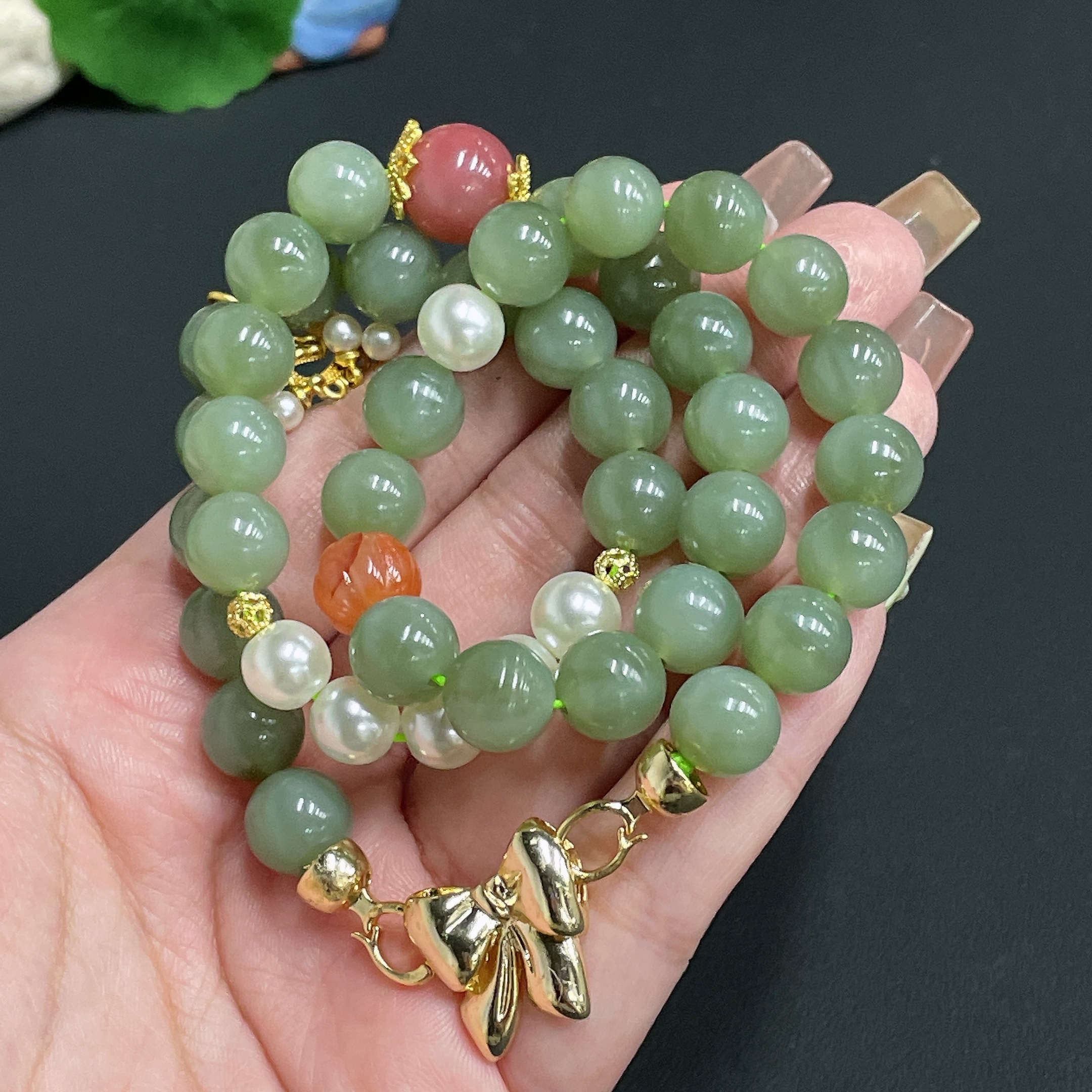 Hetian Jade Bead Necklace Diameter Approx. 9.8 Total Weight Approx. 67.6g Non-Matching Beads (Non-Gold Inlaid)
