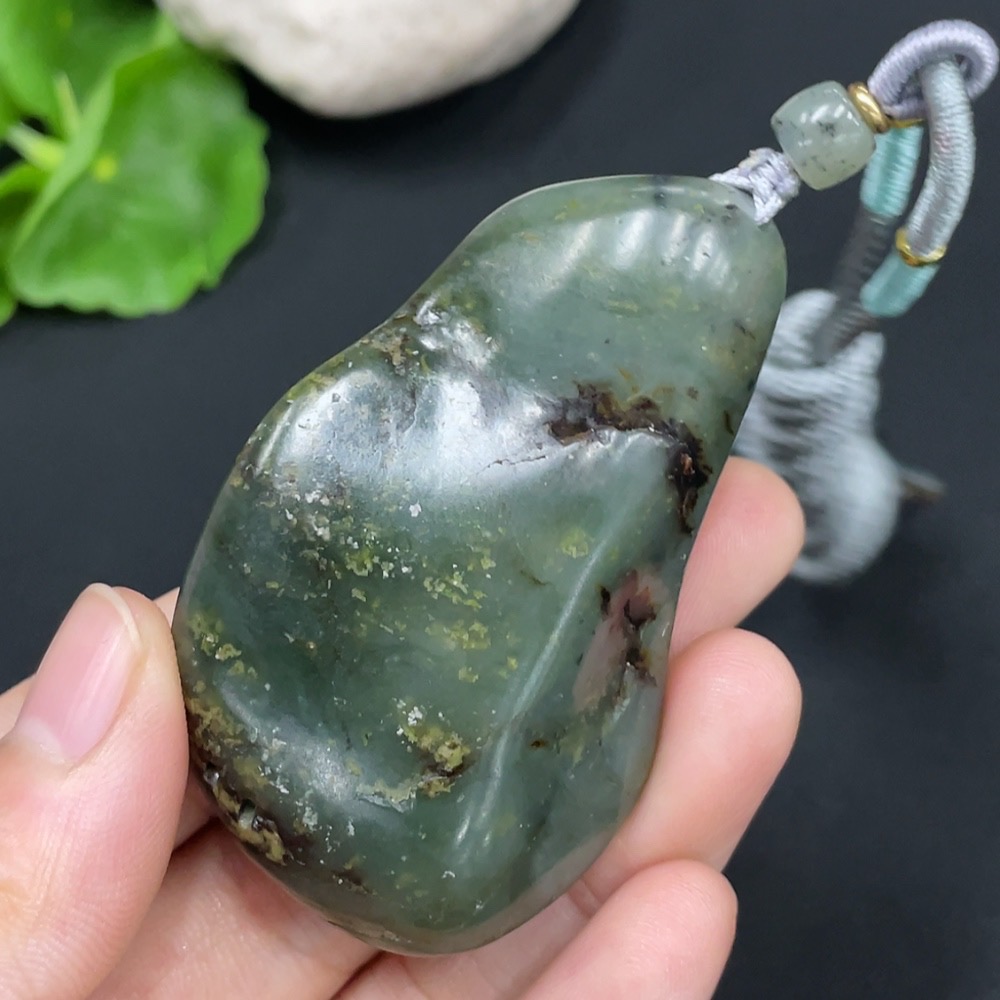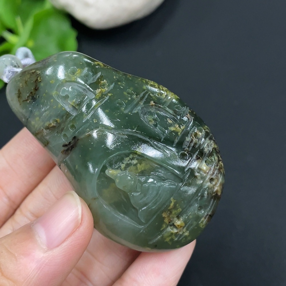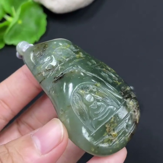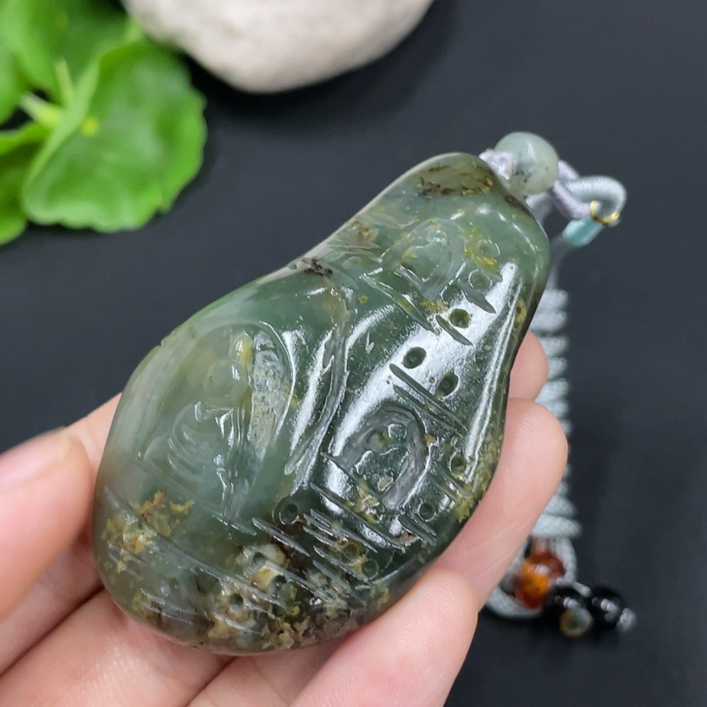 Hetian Jade Pendant - Ten Thousand Buddha Grotto - Undetermined Skin Color Origin - Total Weight (Including Cord) Approx. 55g
