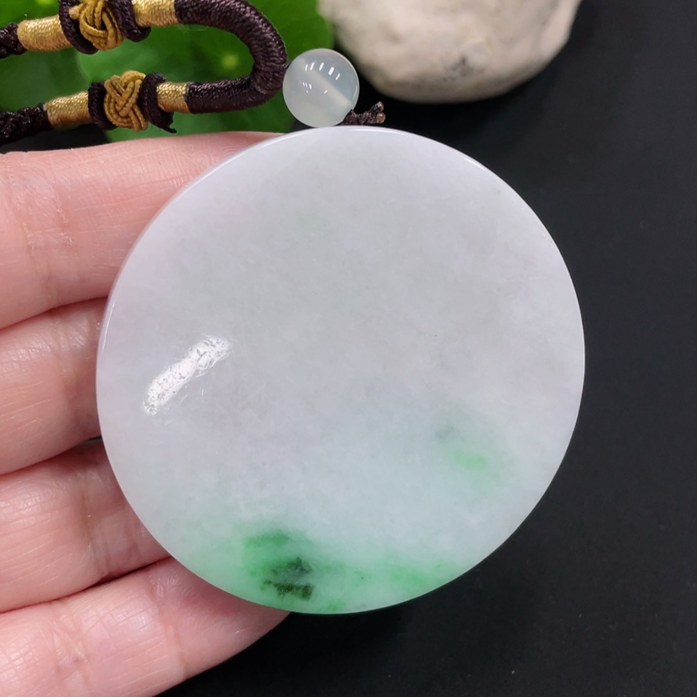 Jadeite Plain Pendant Total weight about 54.4g (including cord weight) (beads non-A)