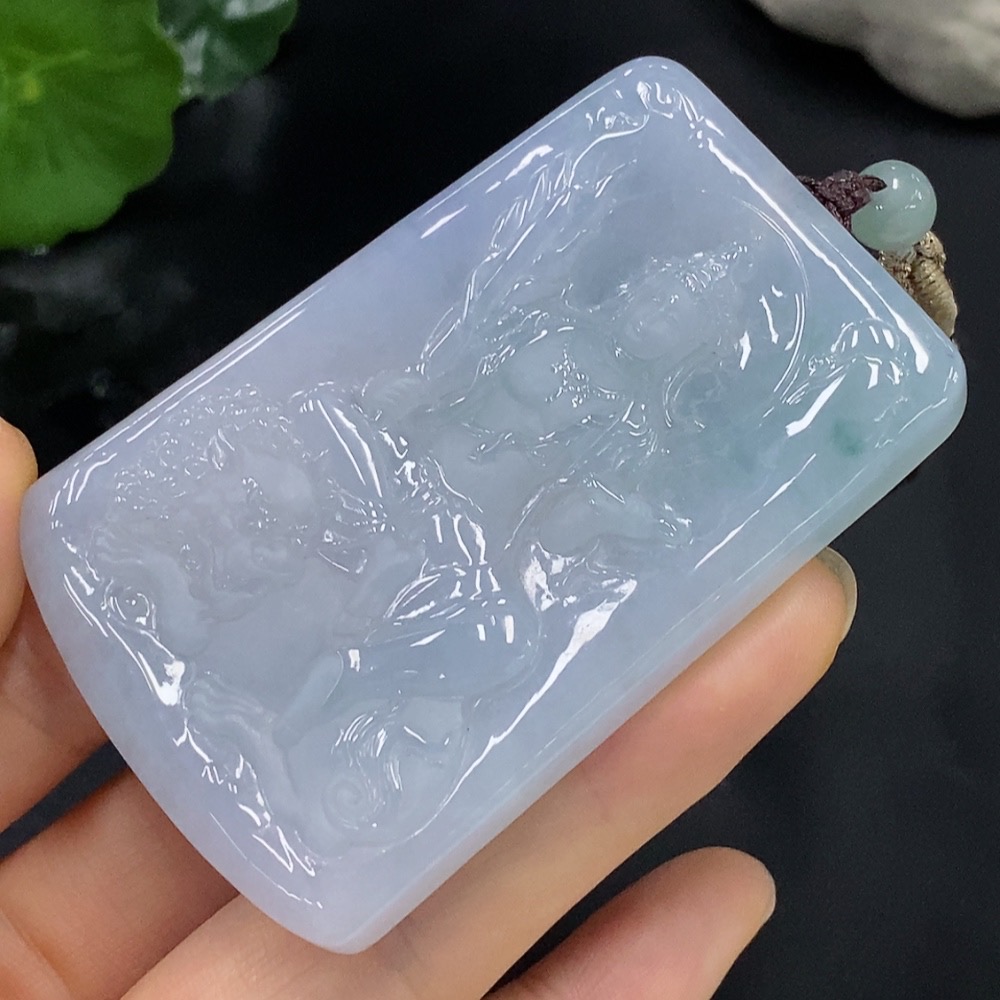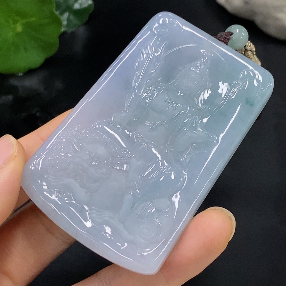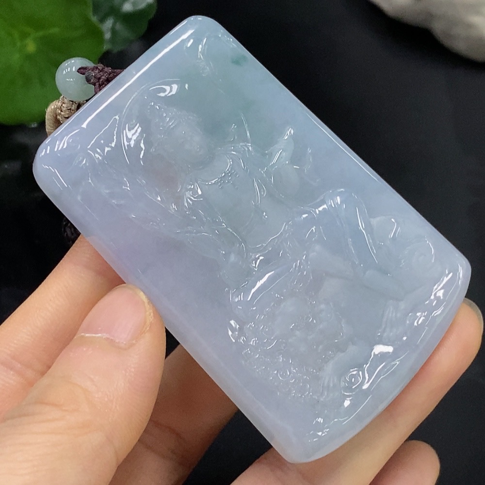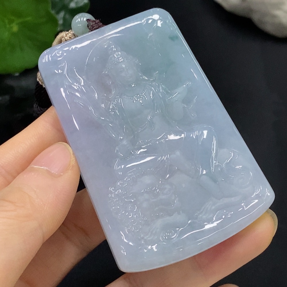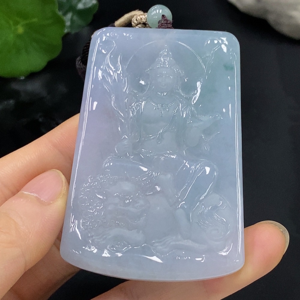 Jadeite Manjushri Bodhisattva Pendant Total Weight Approximately 74.08g (Including Rope Weight)