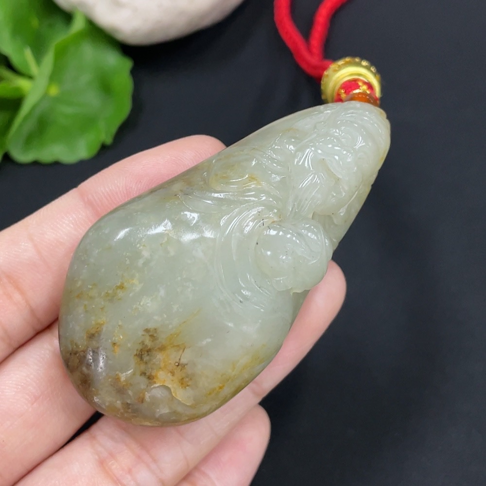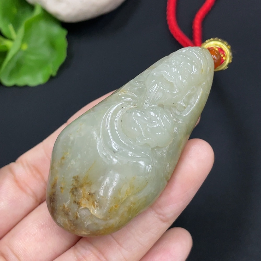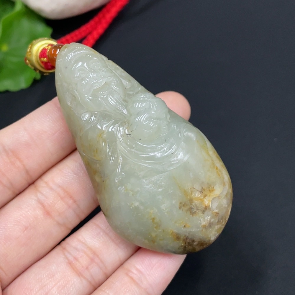 Hetian Jade Seed Material Pendant - God of Wealth - Undetermined Skin Color Origin - Total Weight (Including Rope): 60.8g