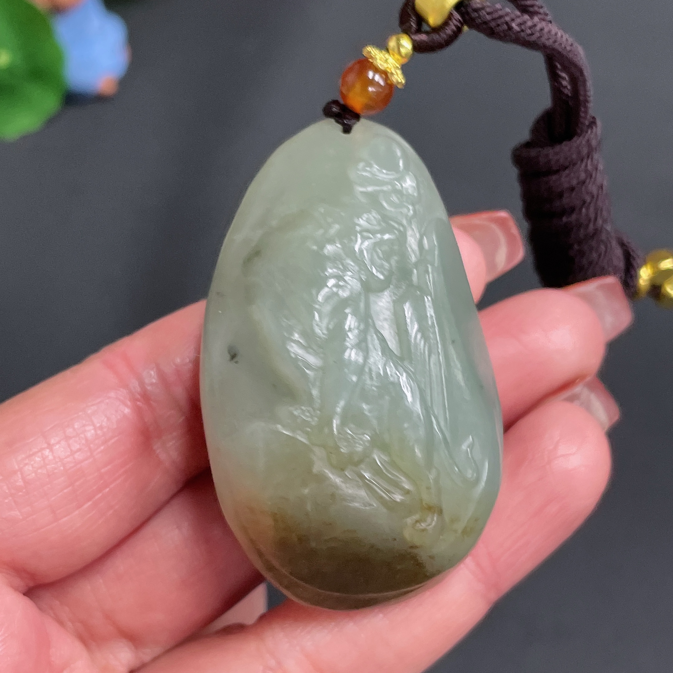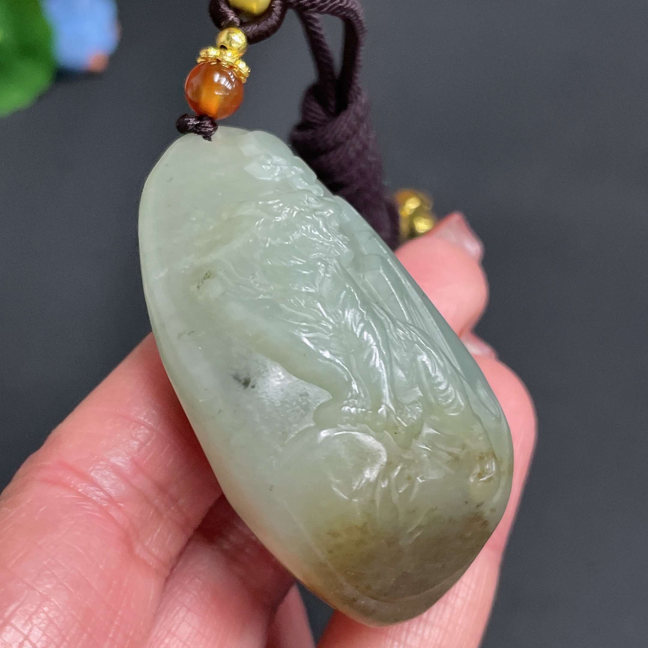 Hetian Jade Pendant - Mountain-climbing Tiger - Total Weight Approx. [Including Rope] 62.7g