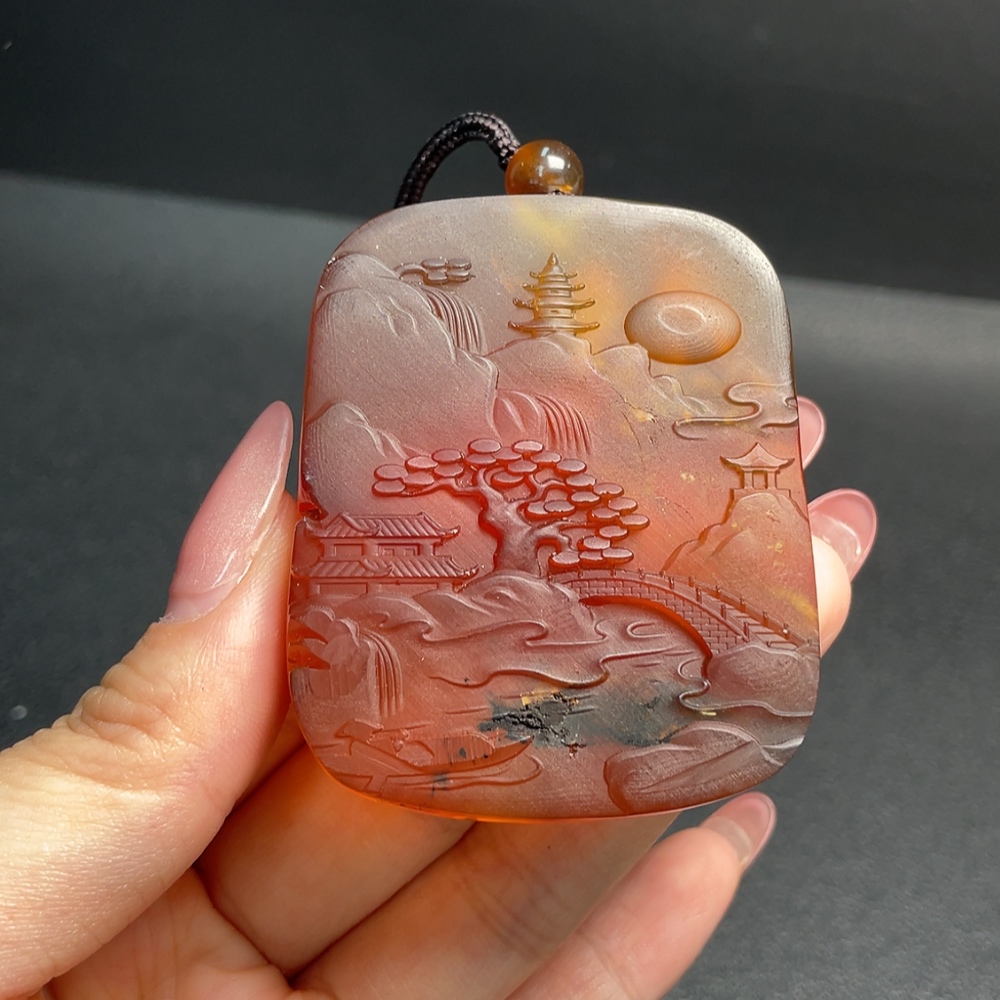 Amber and Beeswax Pendant, Total Weight Approx. 36.36g Including Rope