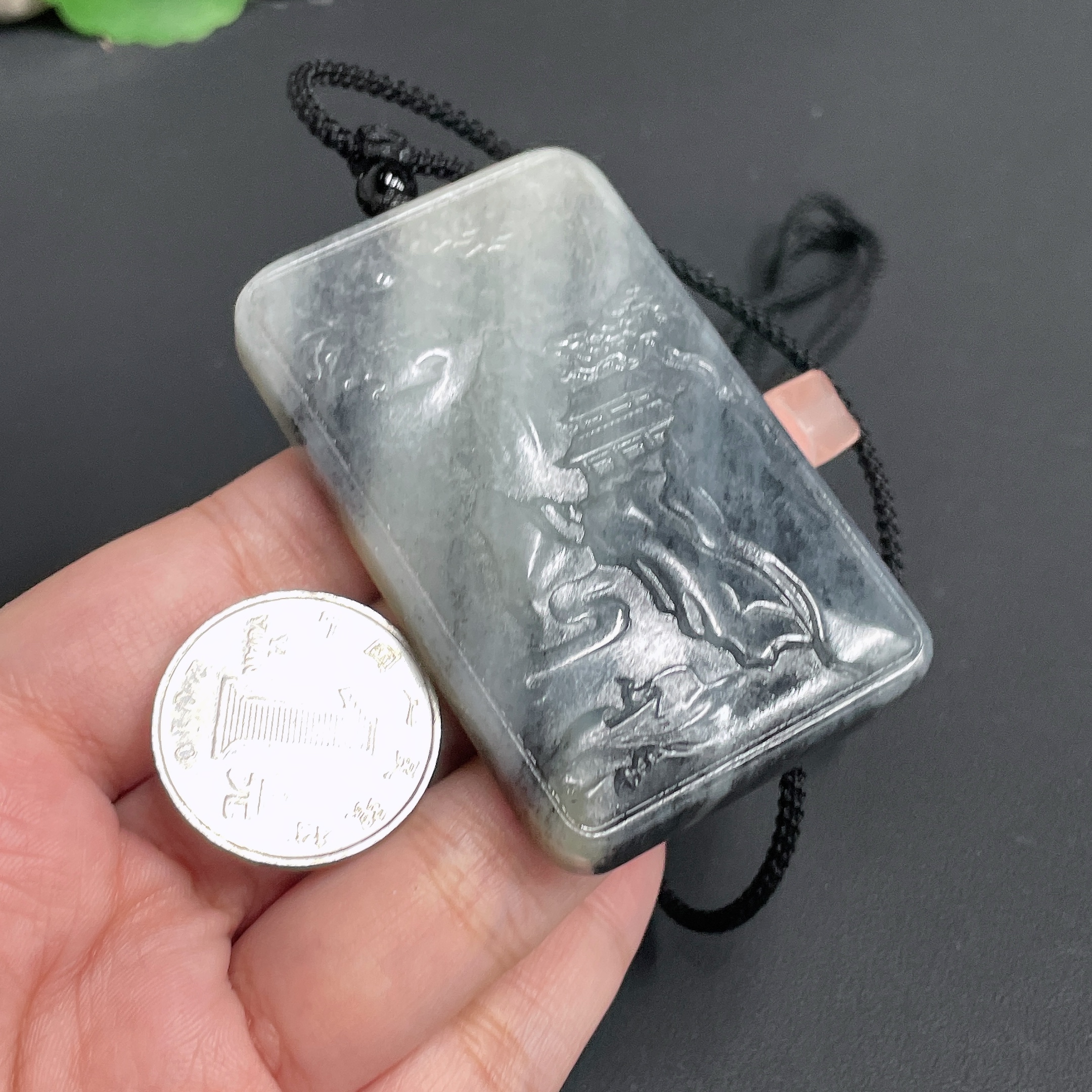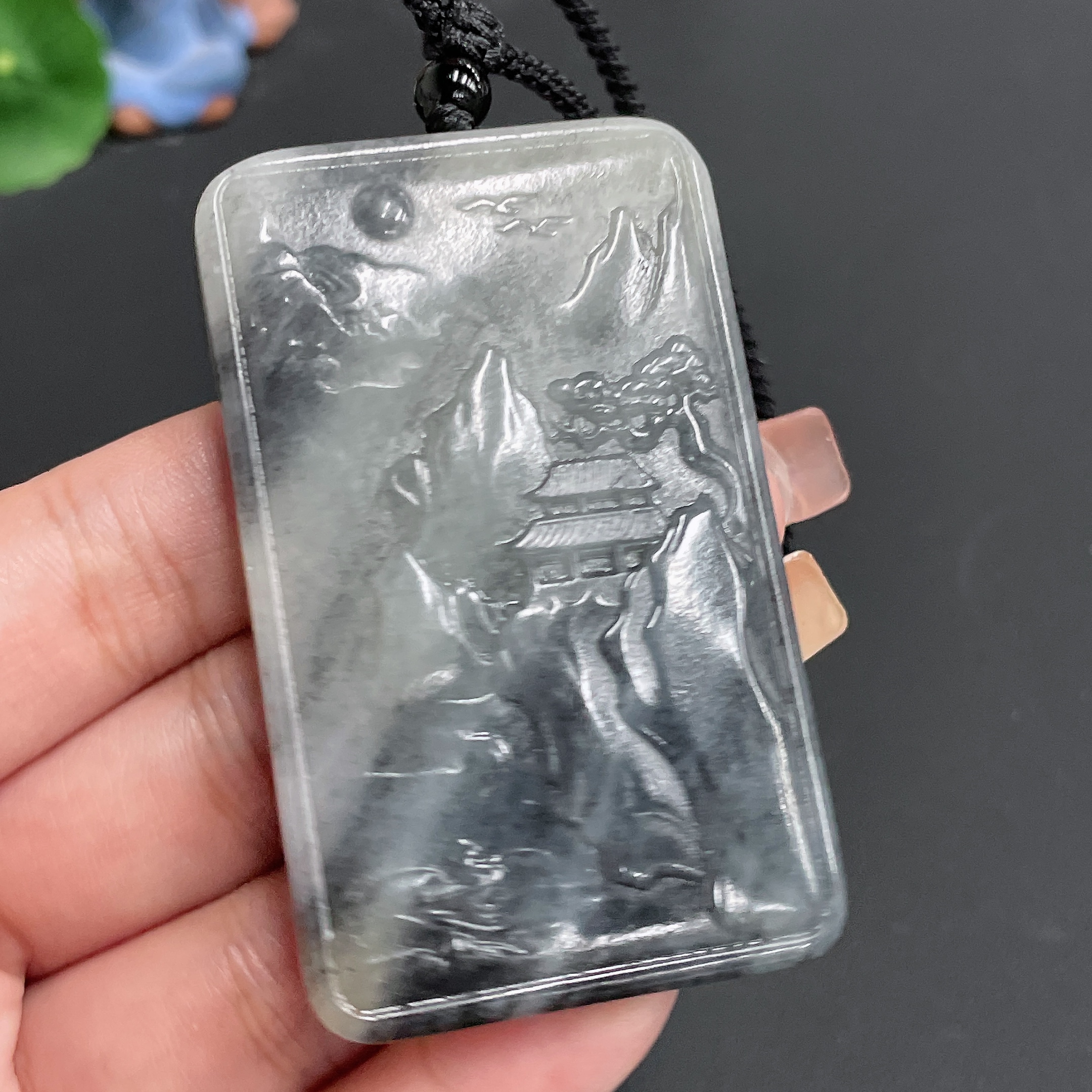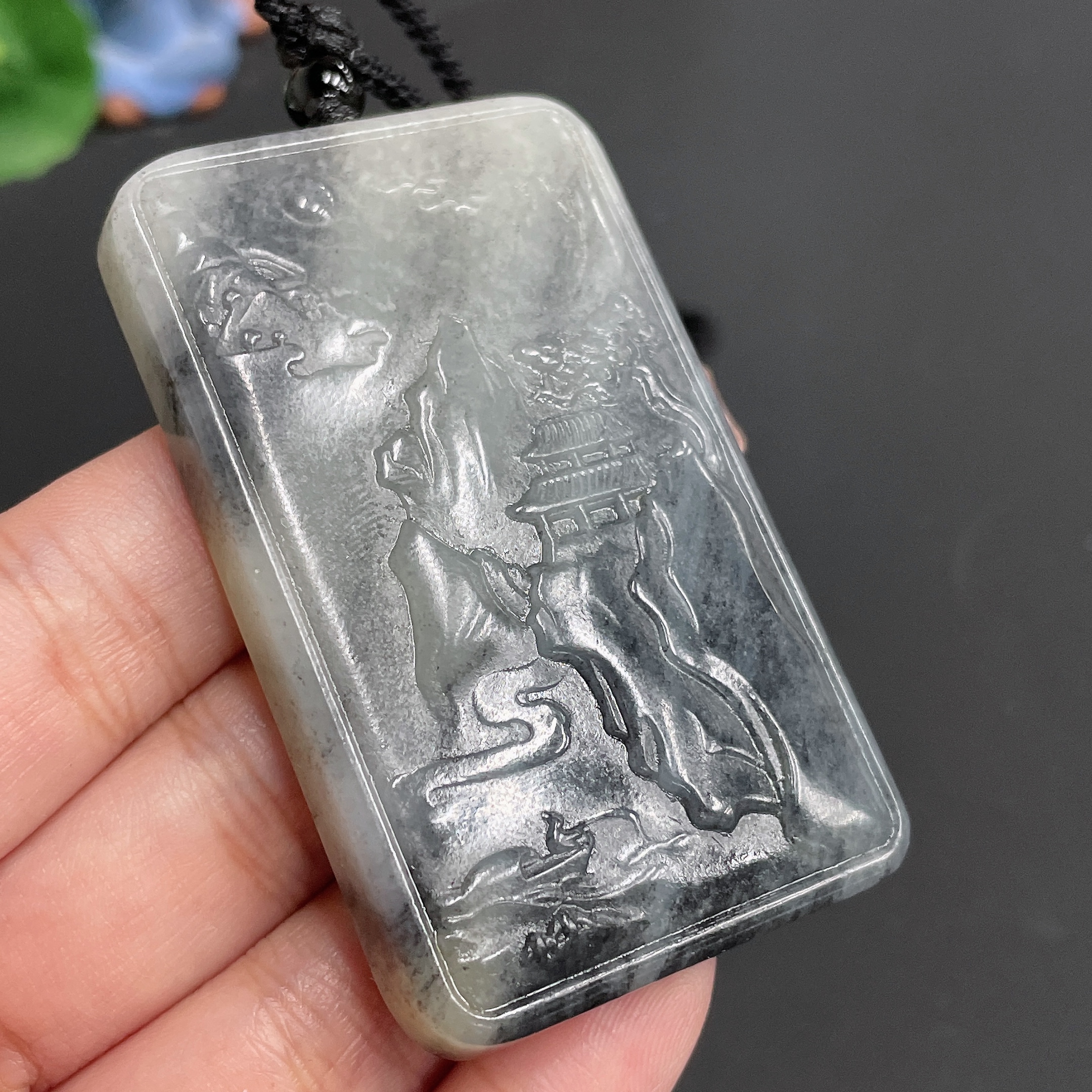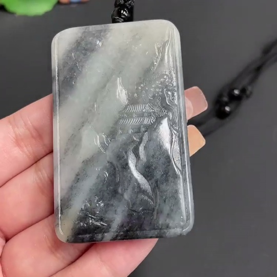 Hetian Jade Pendant Landscape Plaque with Cord Total Weight 66.56g