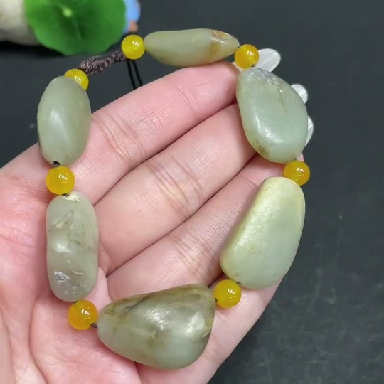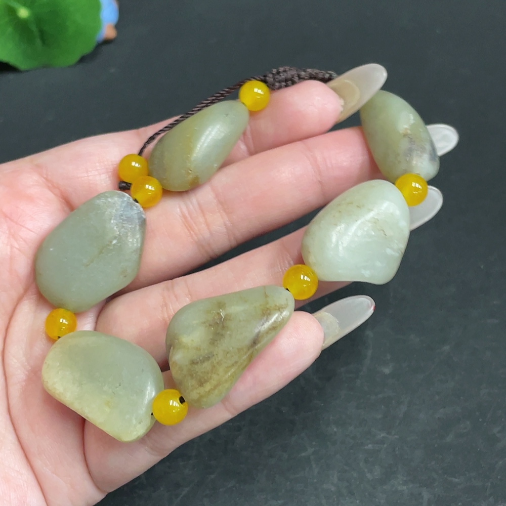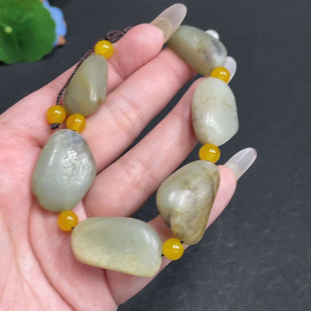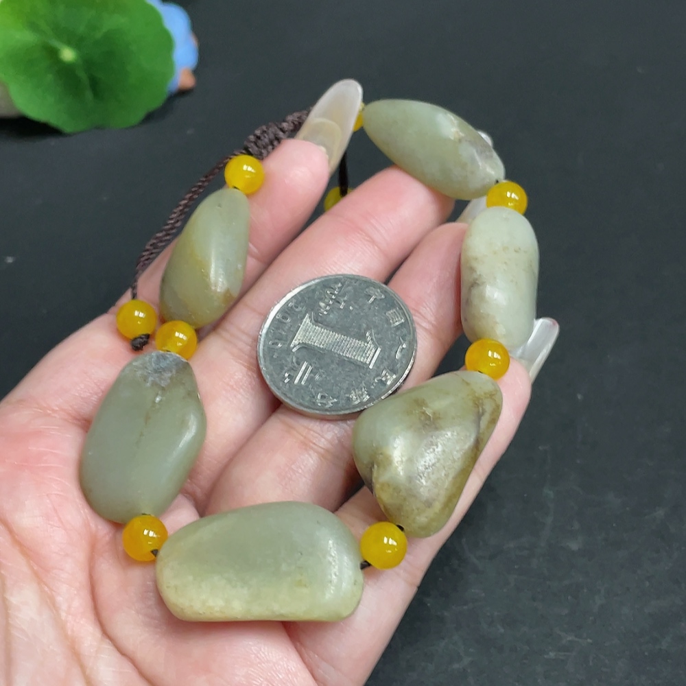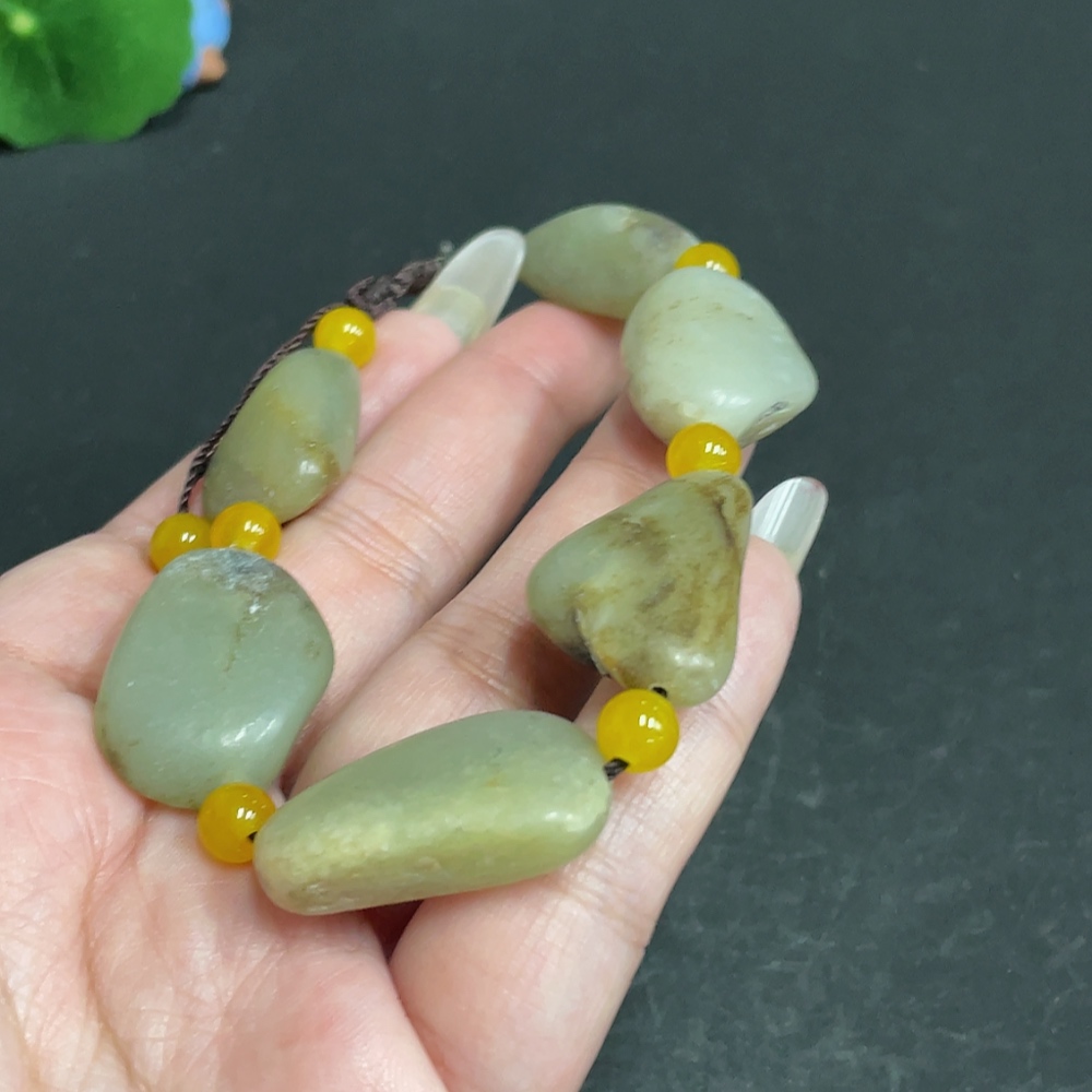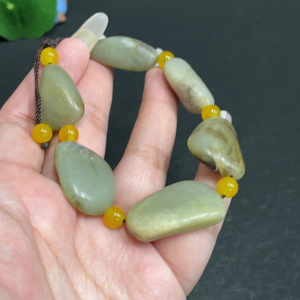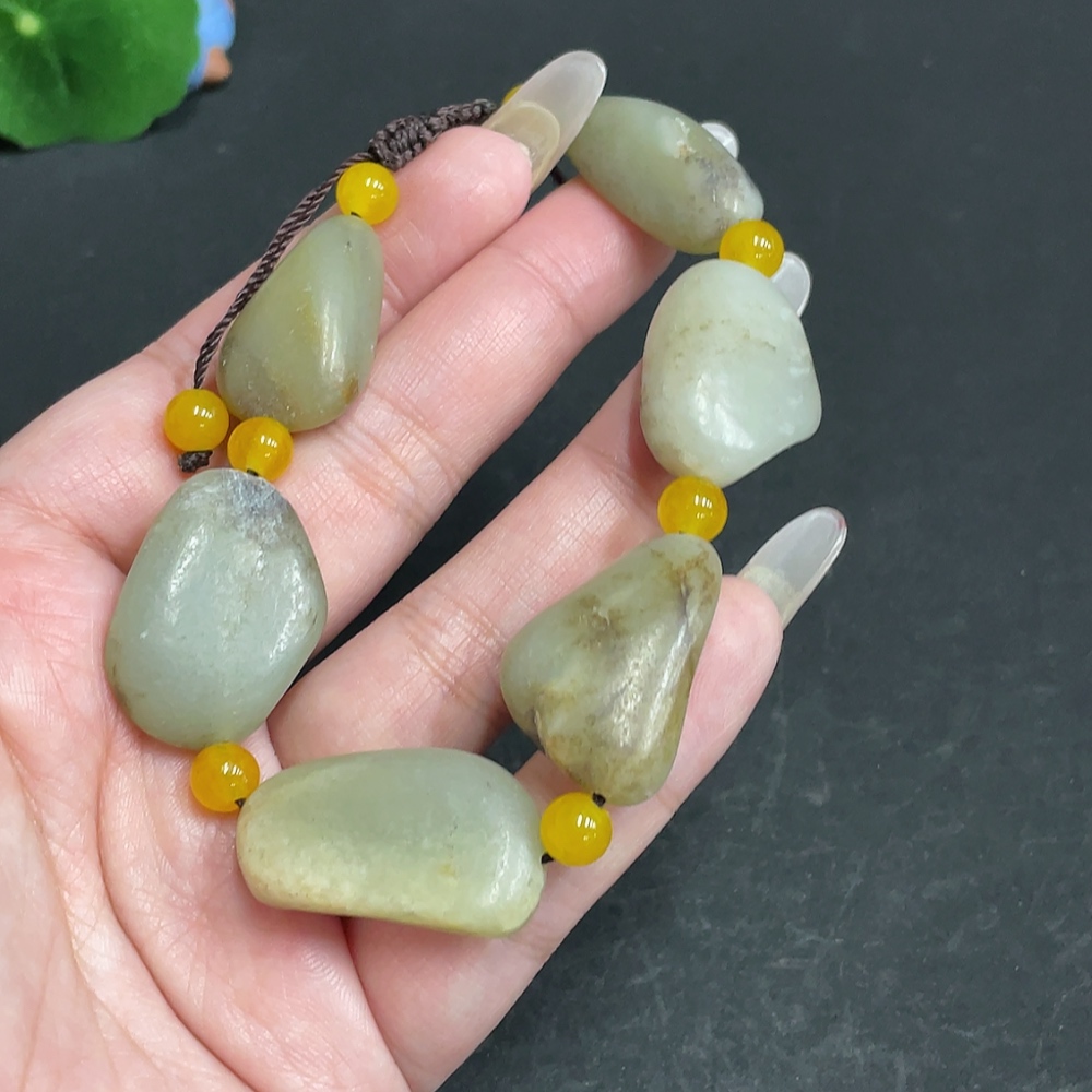 Hetian Jade Bracelet, Undetermined Skin Color Origin, Non-Hetian Jade Beads, Total Weight Approximately 47.5g